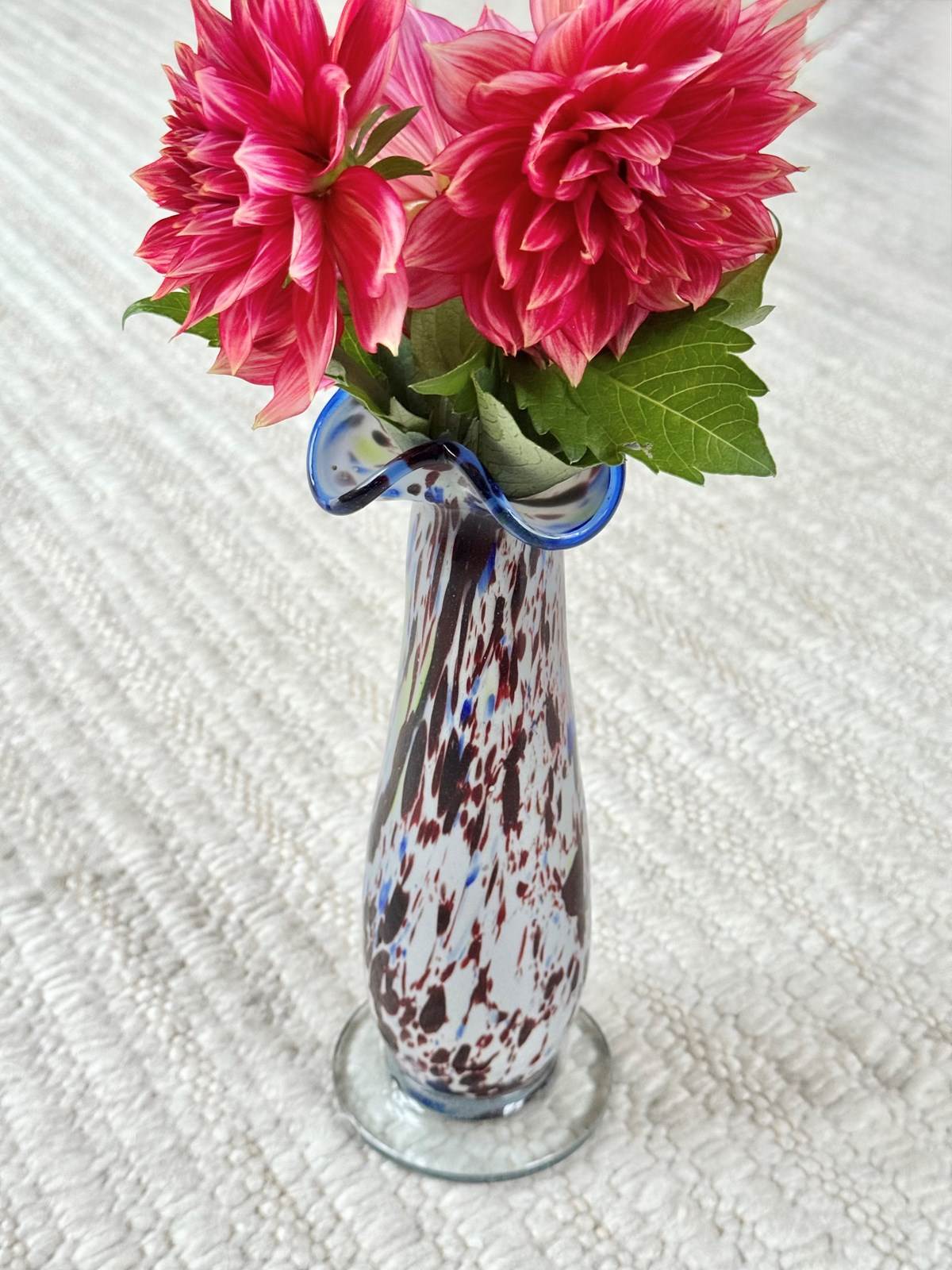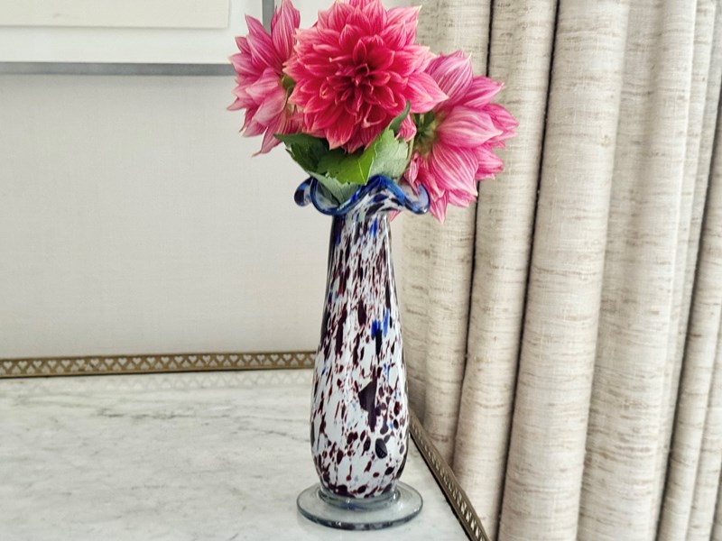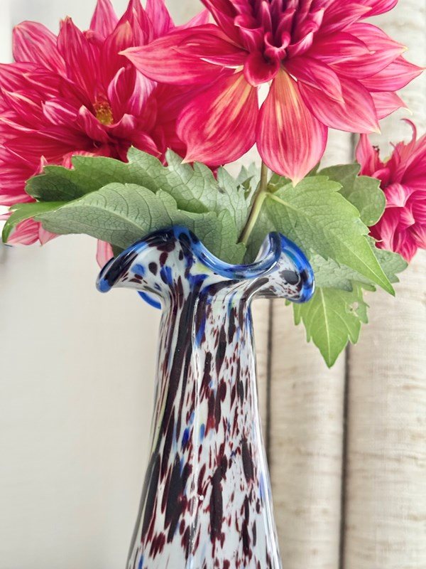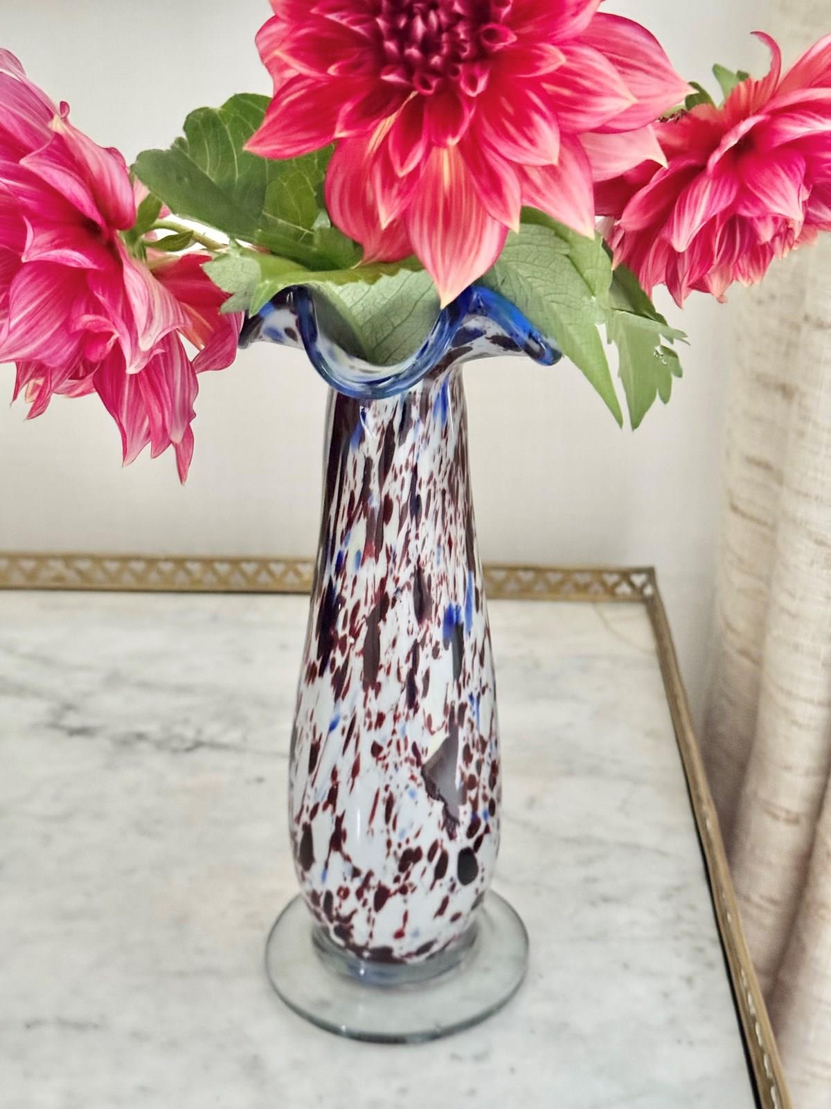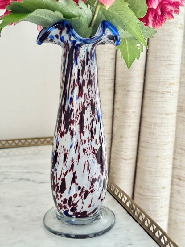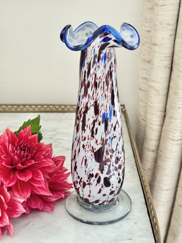 Vintage Italian Marbled Ruffle Rim Art Glass Vase