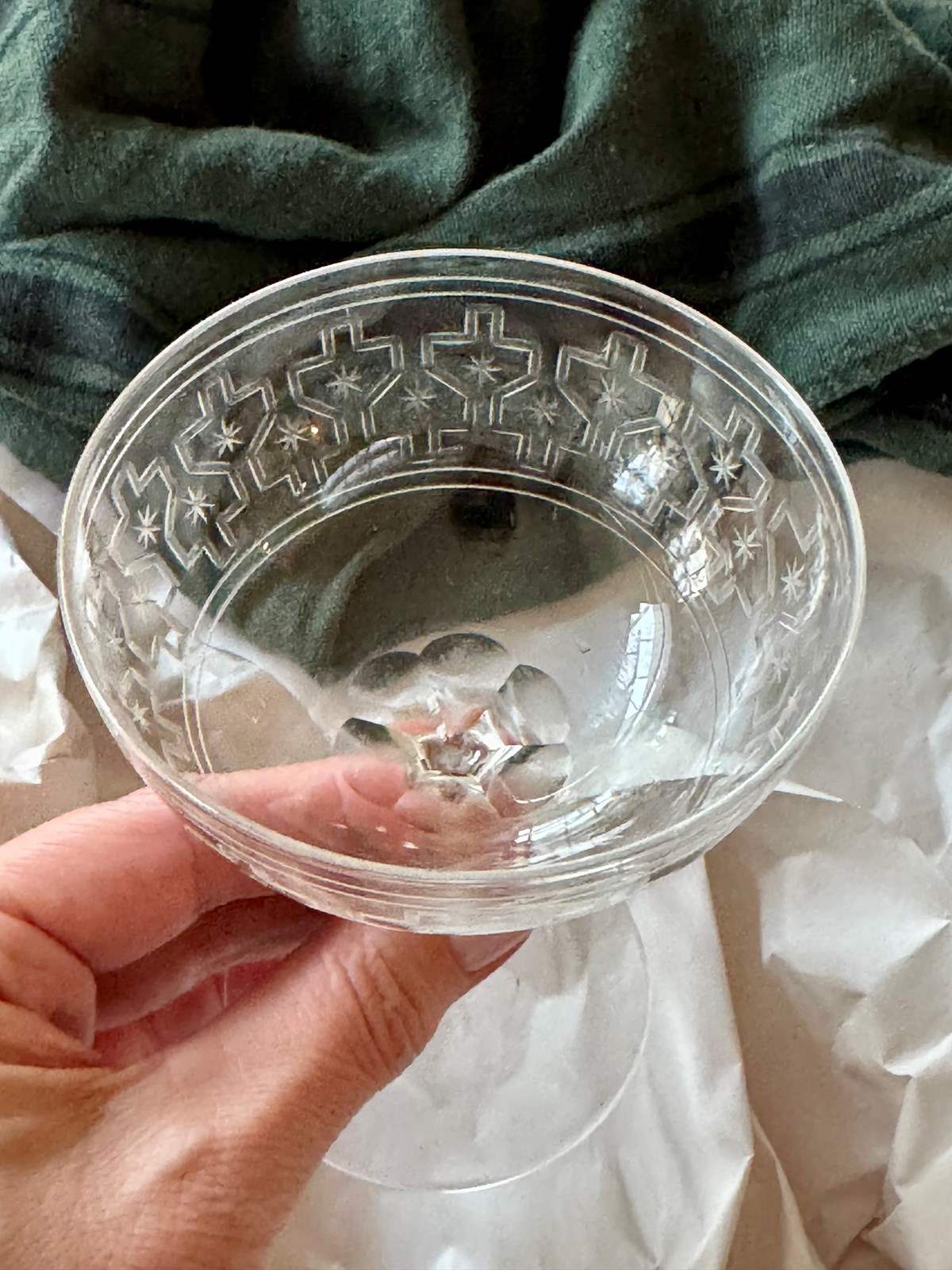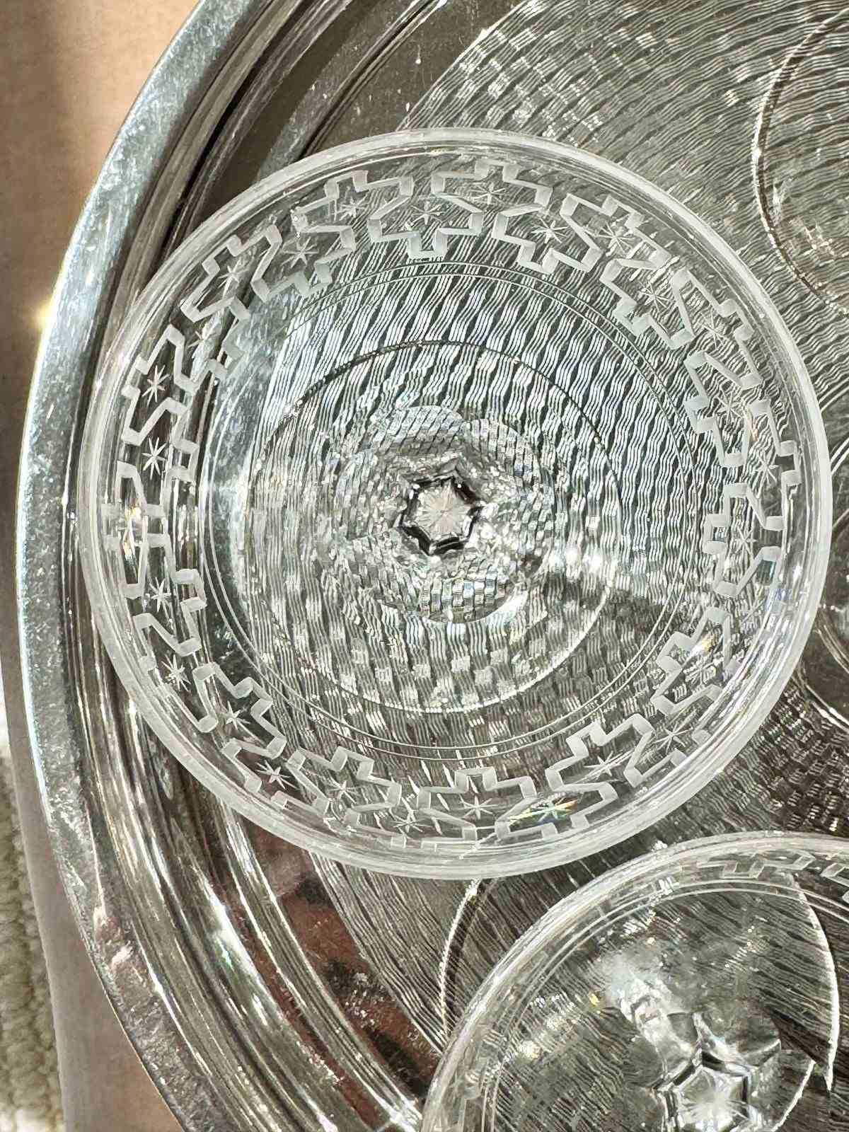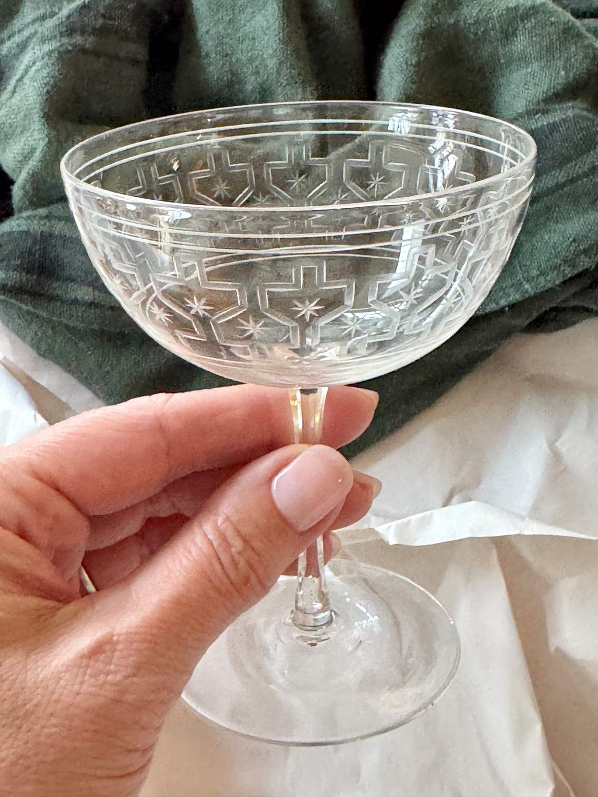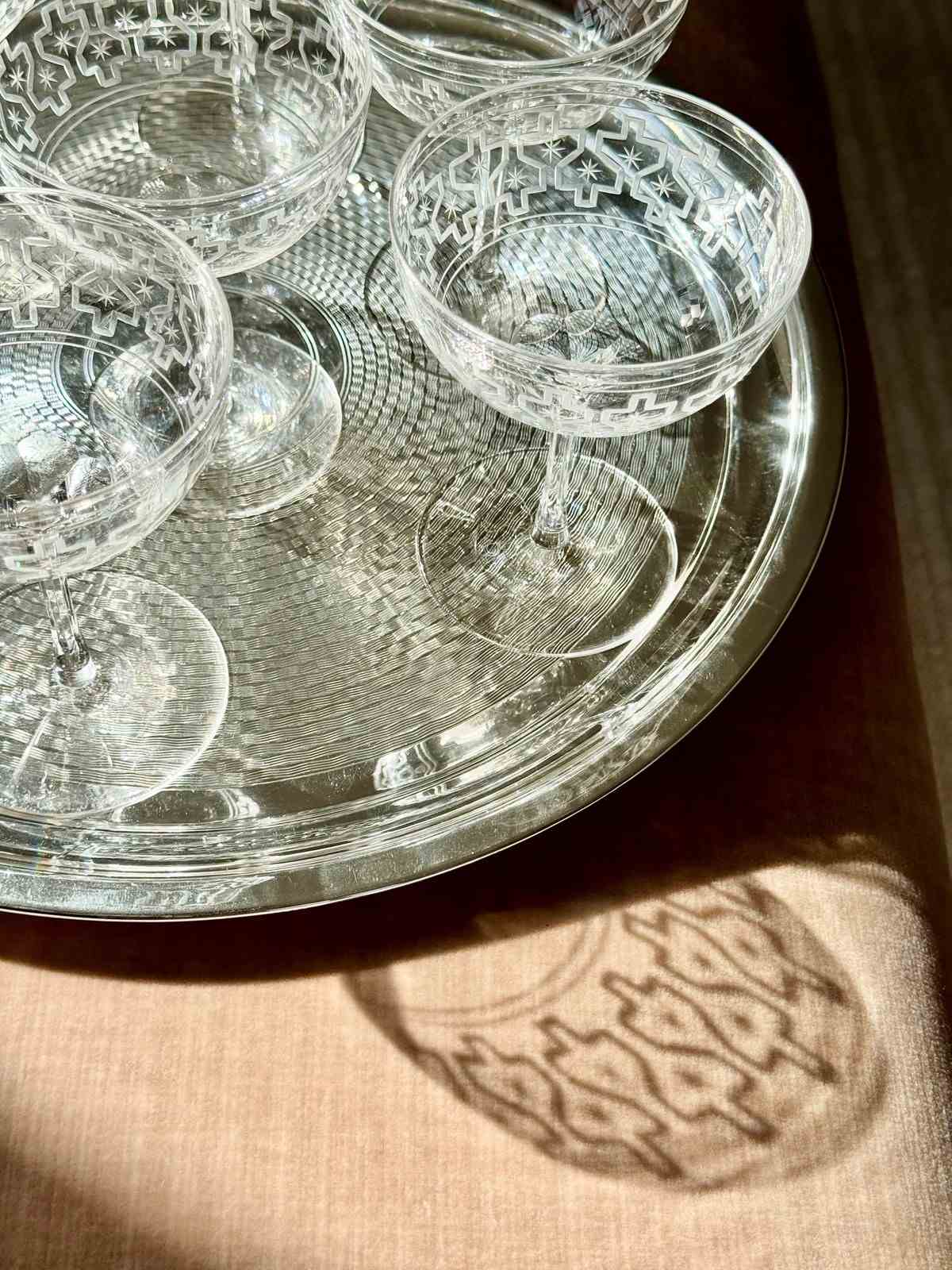 Rare Art Deco Star Etched Crystal Champagne Coupes C1920