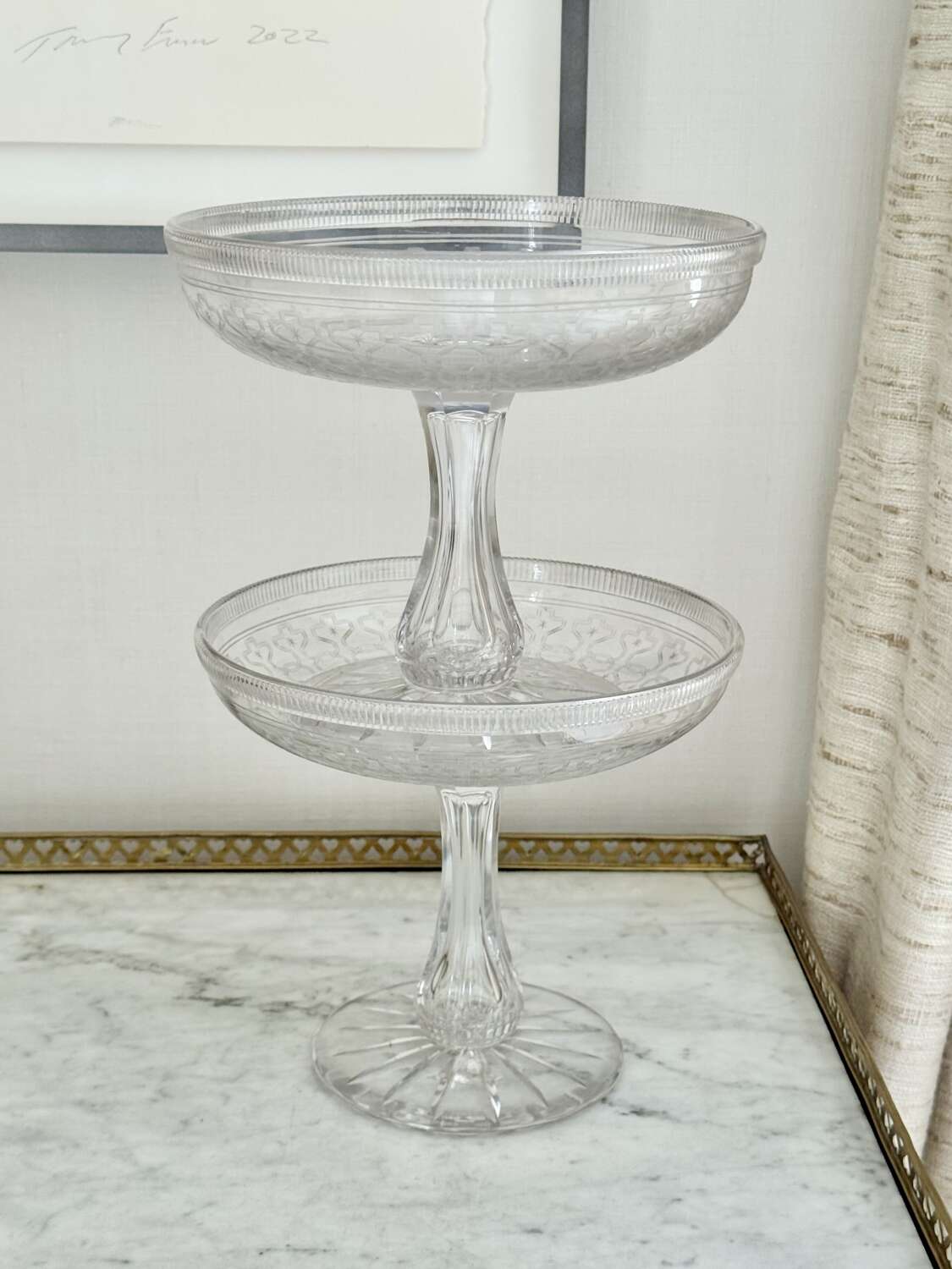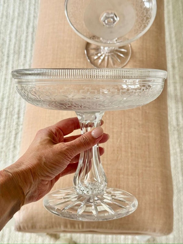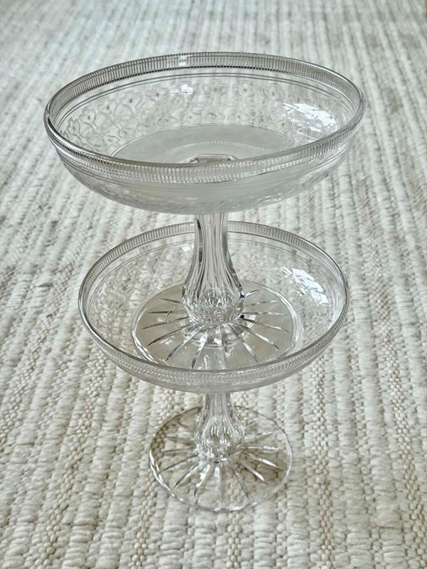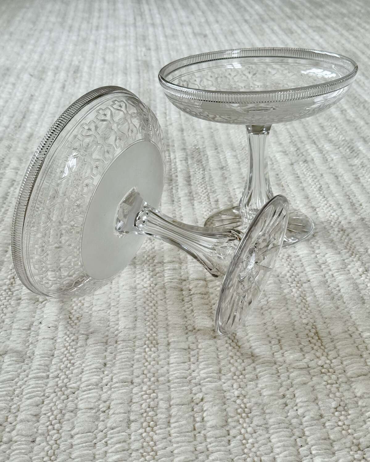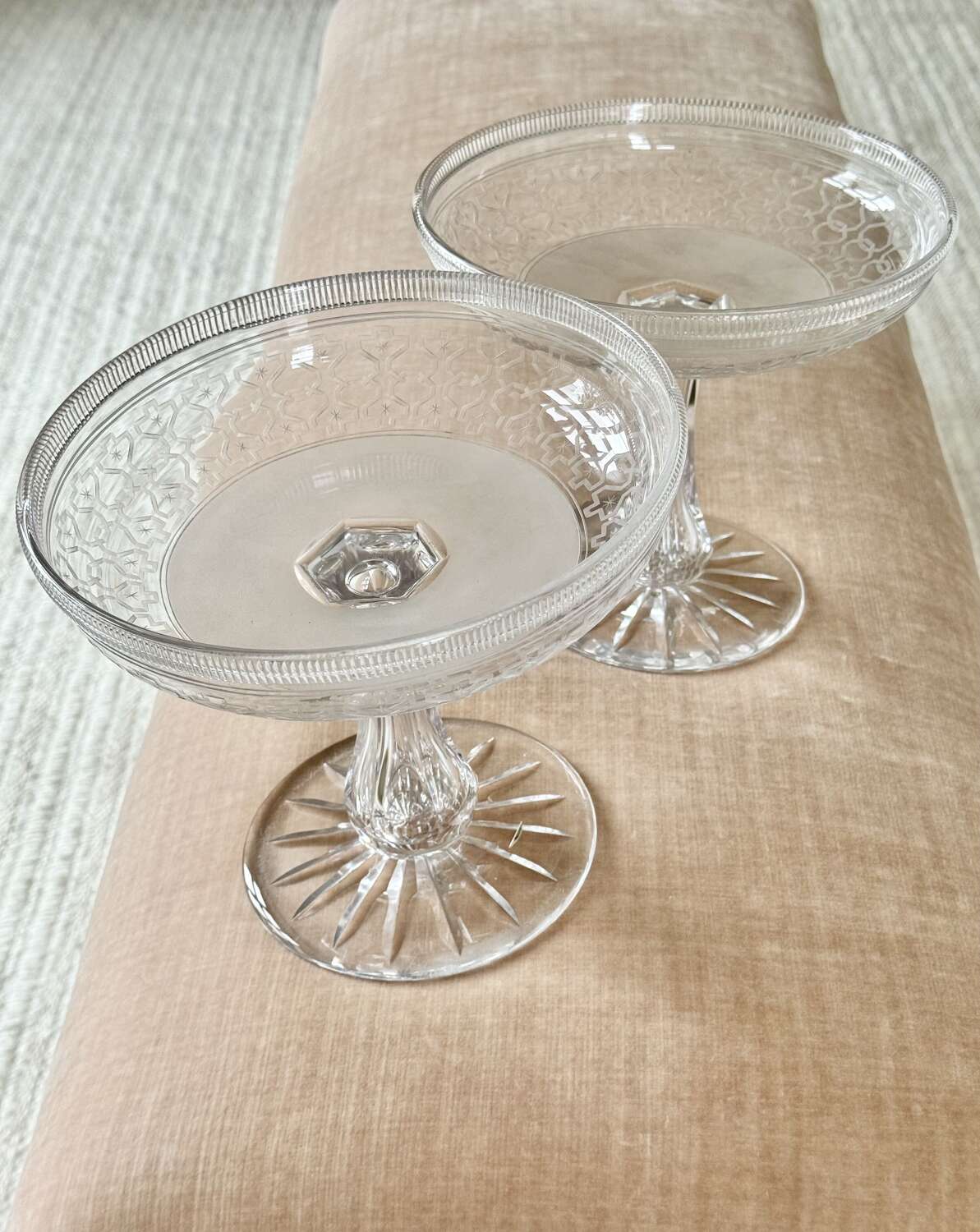 Pair Victorian Etched Crystal Glass Tazza Comport Dishes