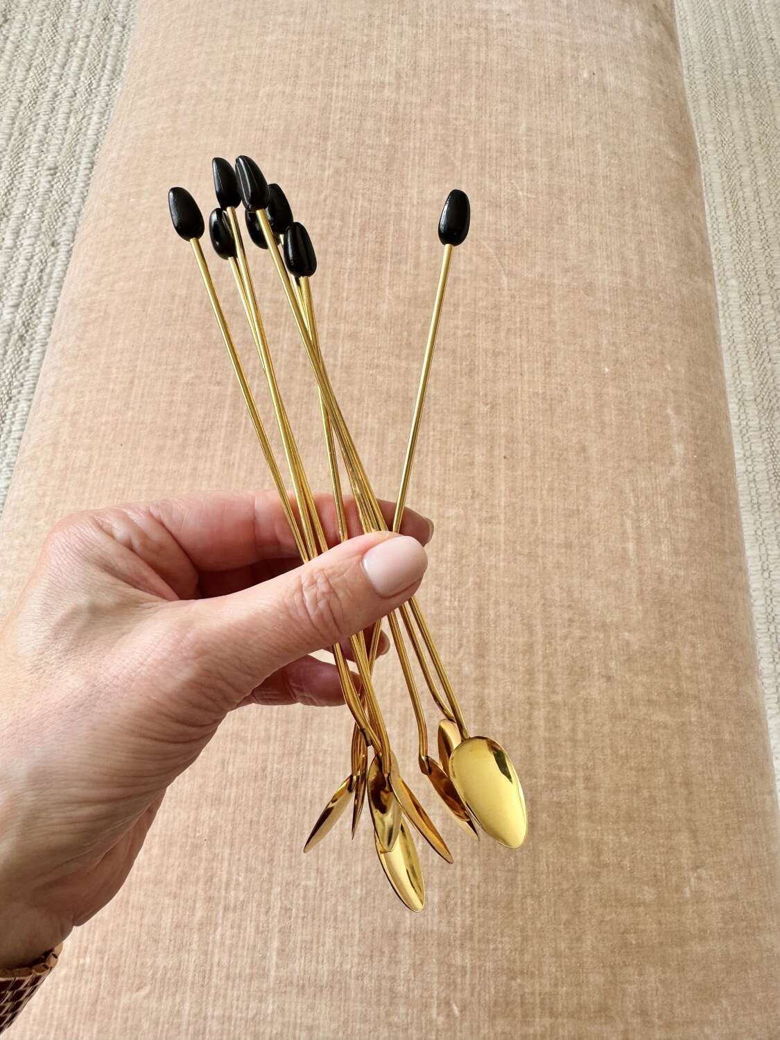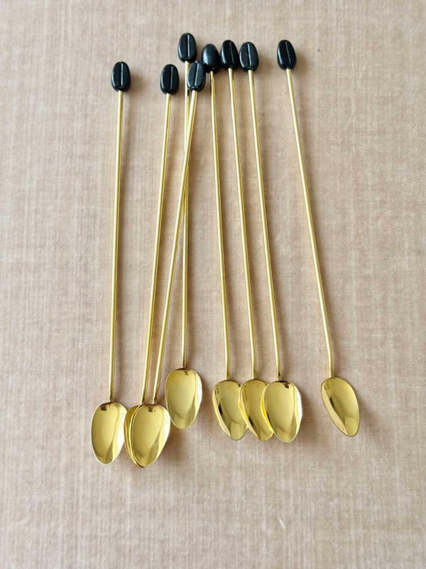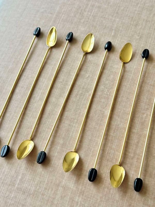 Set 18ct gold plated & coffee bean finial 1970s bar spoons