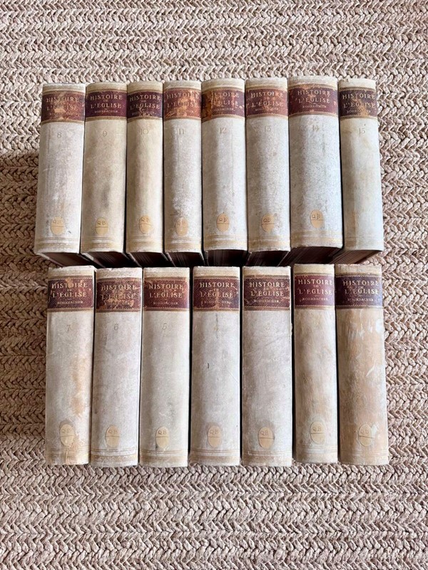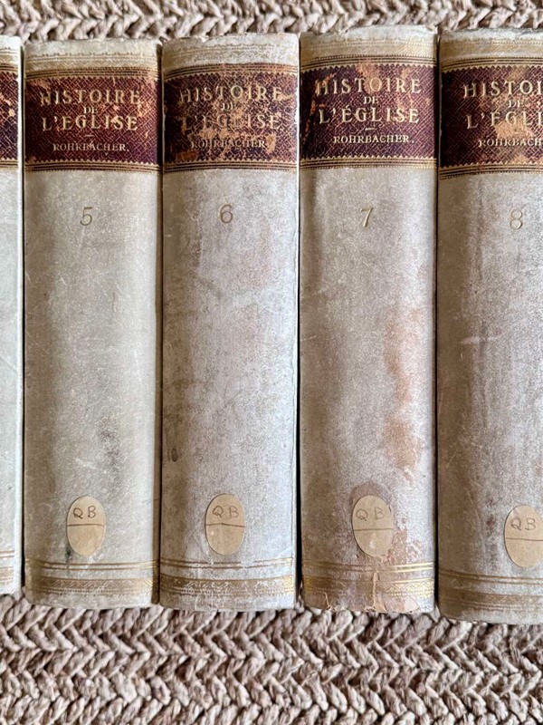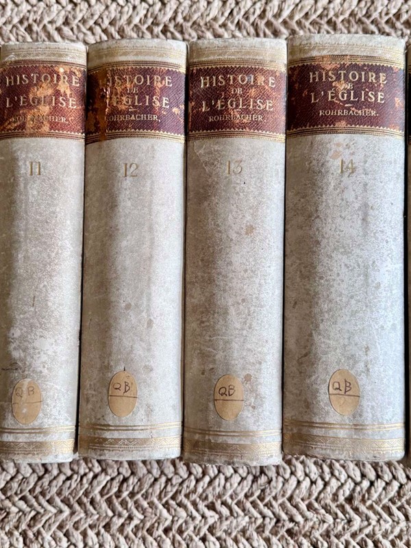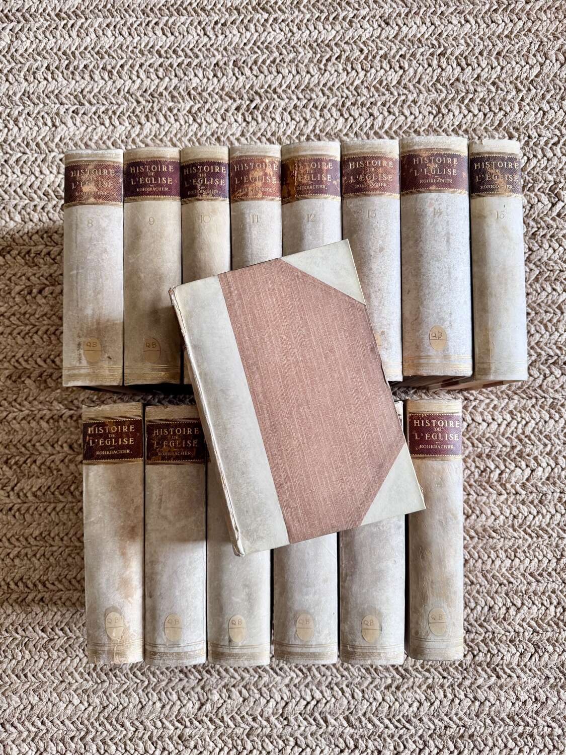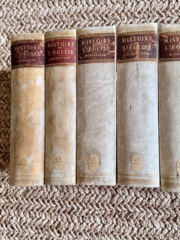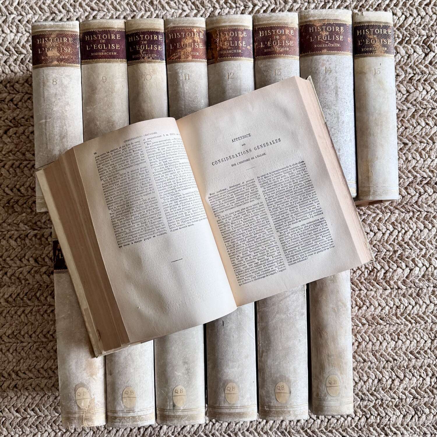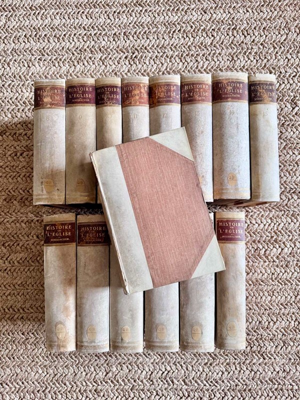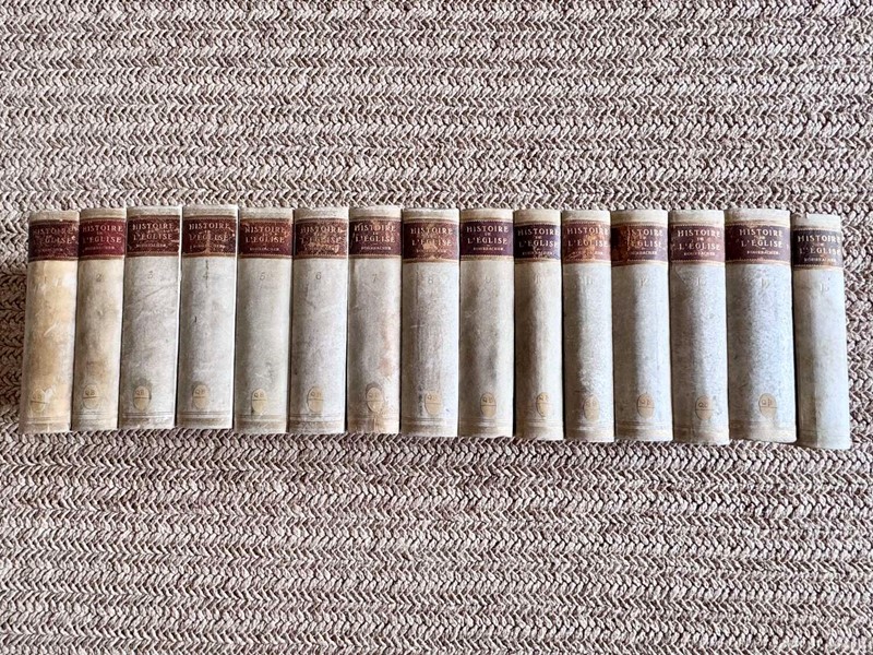 Set Large Antique Vellum Half Bound Books 1889 ‘Histoire De L’Eglise’