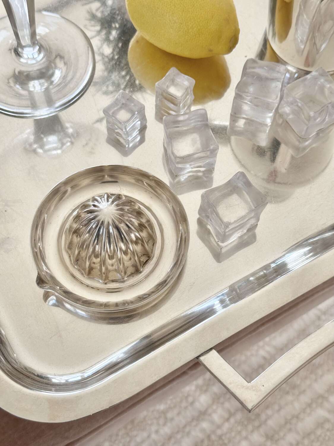 A decadent silver plated cocktail home bar citrus lemon squeezer, Circa 1950s, attributed to Wiskemann, Belgium