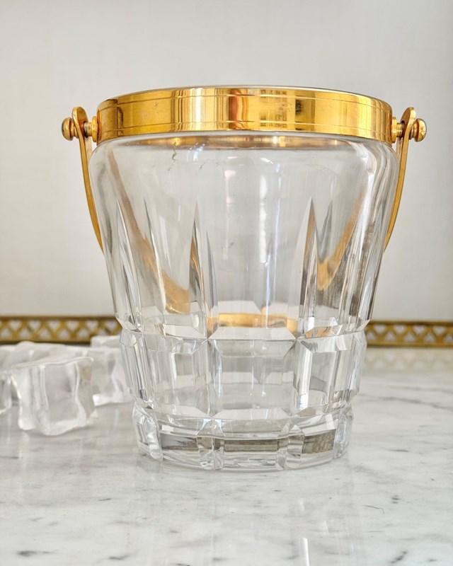 Val Saint Lambert Crystal & Gold Plated Ice Bucket C1960