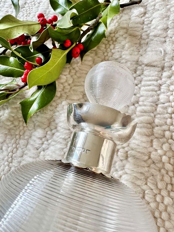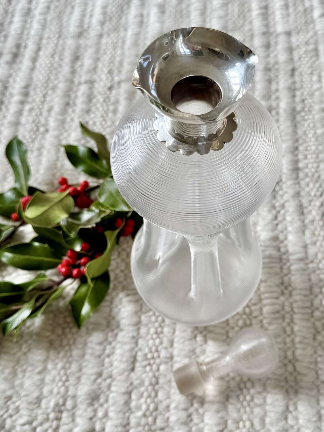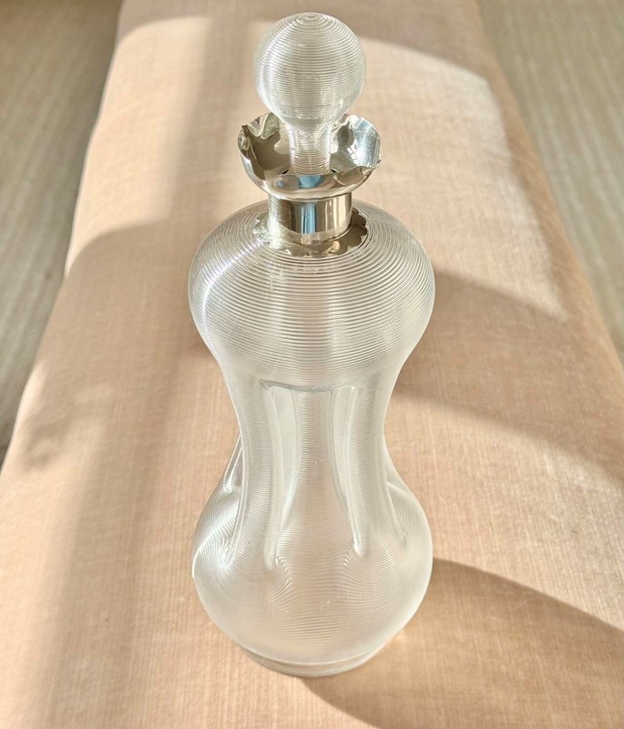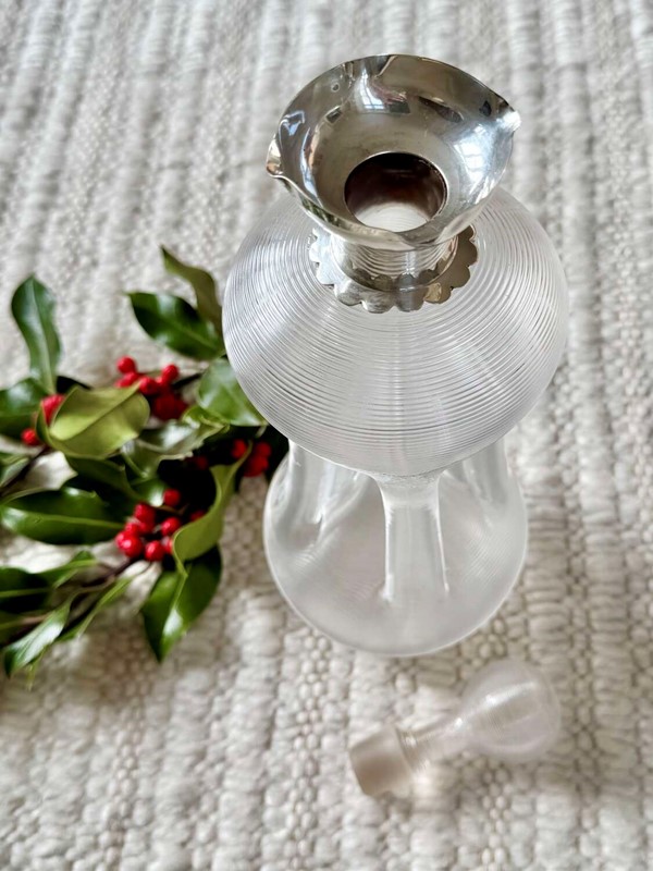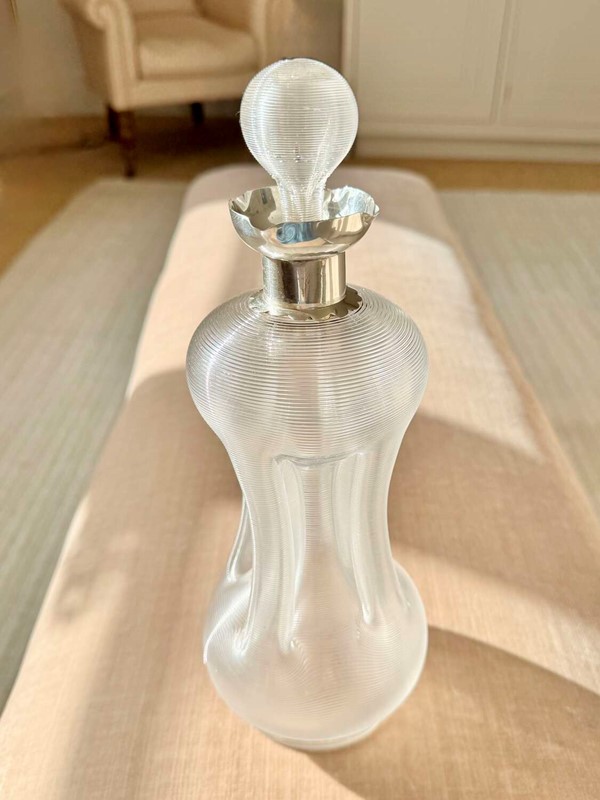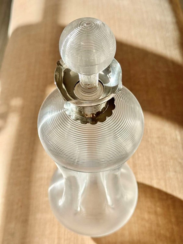Victorian Ribbed Glass Glug Decanter With Silver Collar 1893