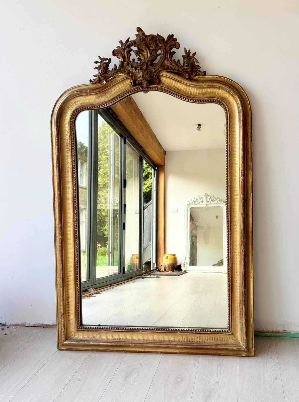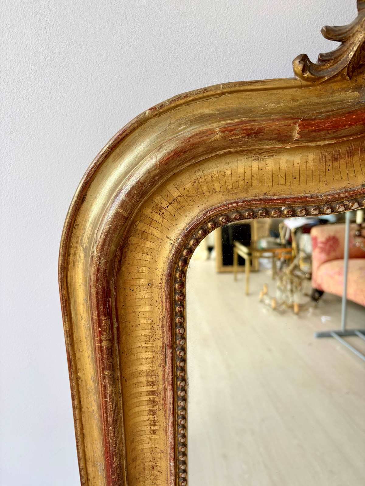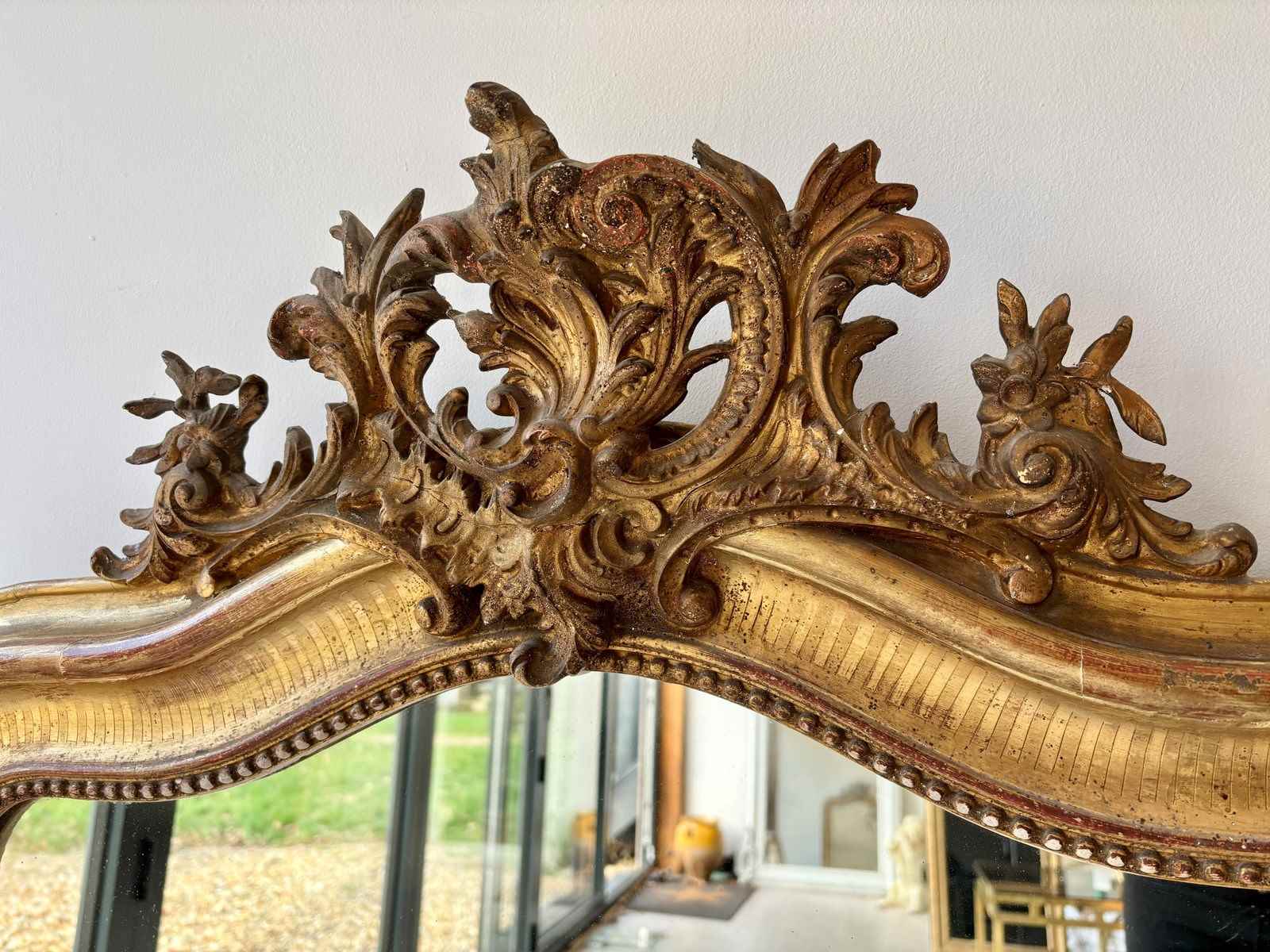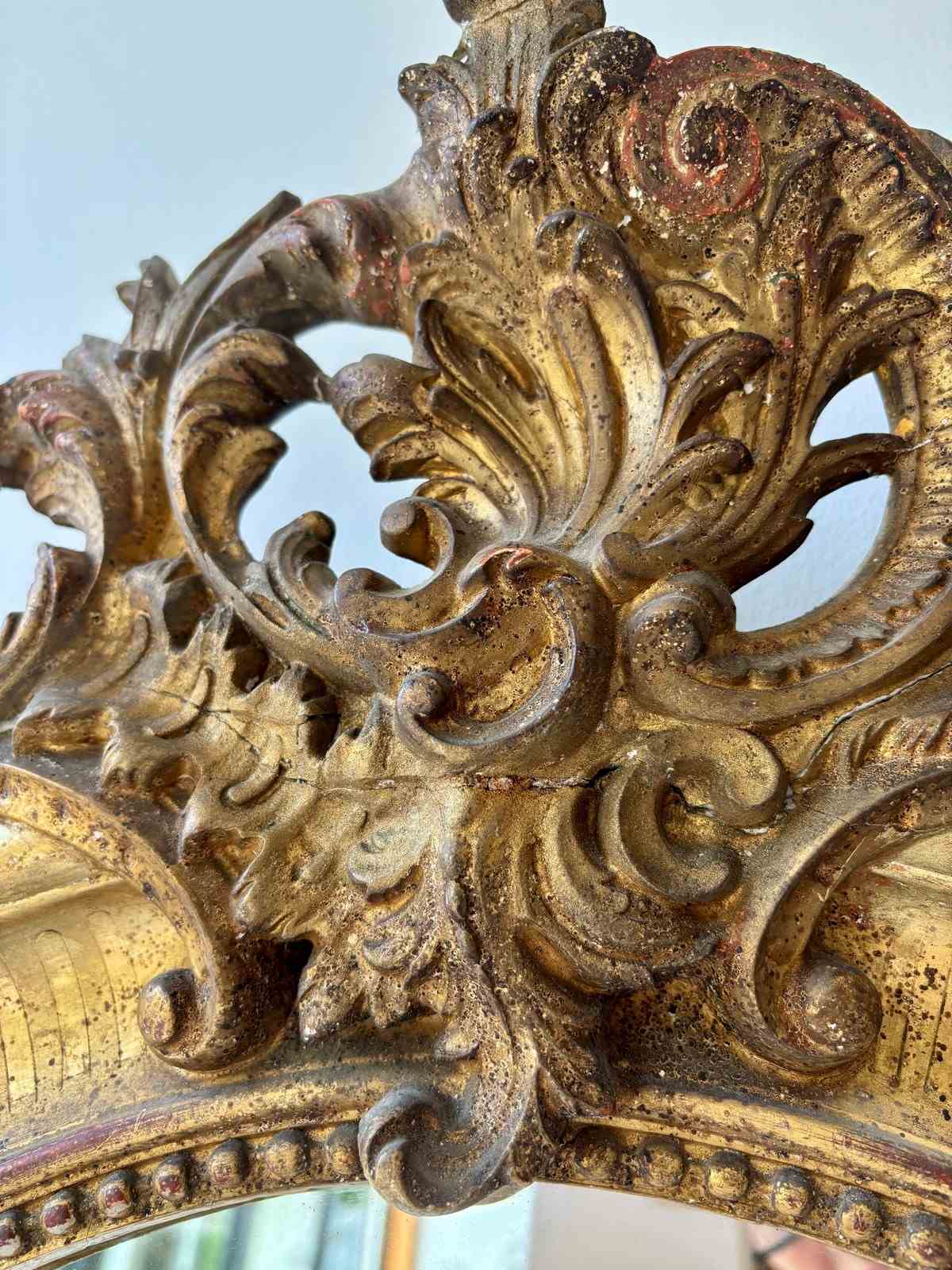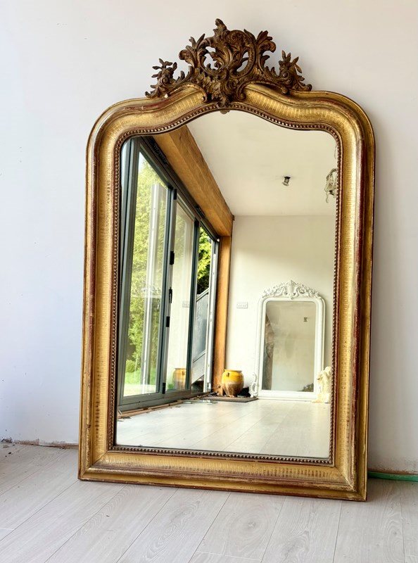 Antique French Gilt Crested Mirror