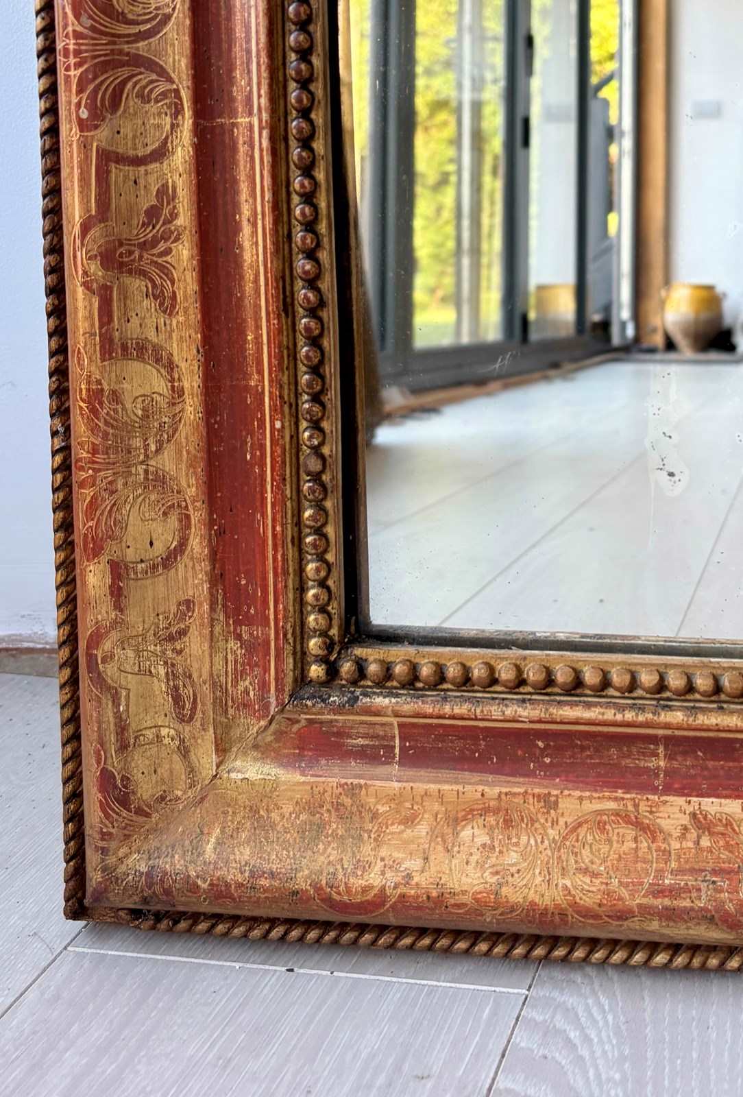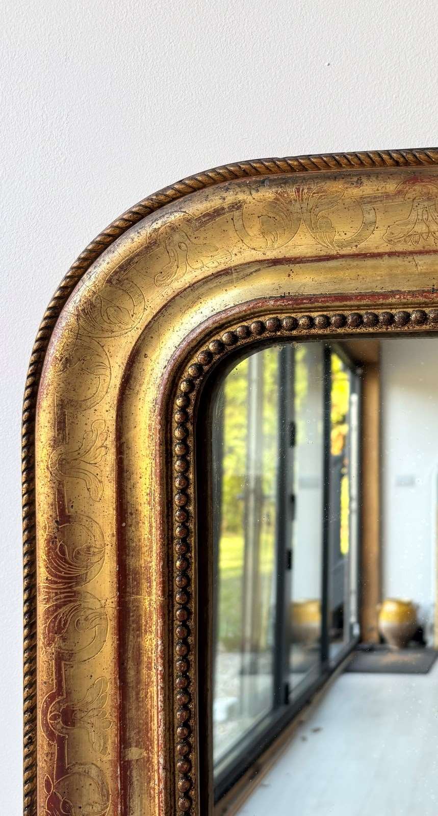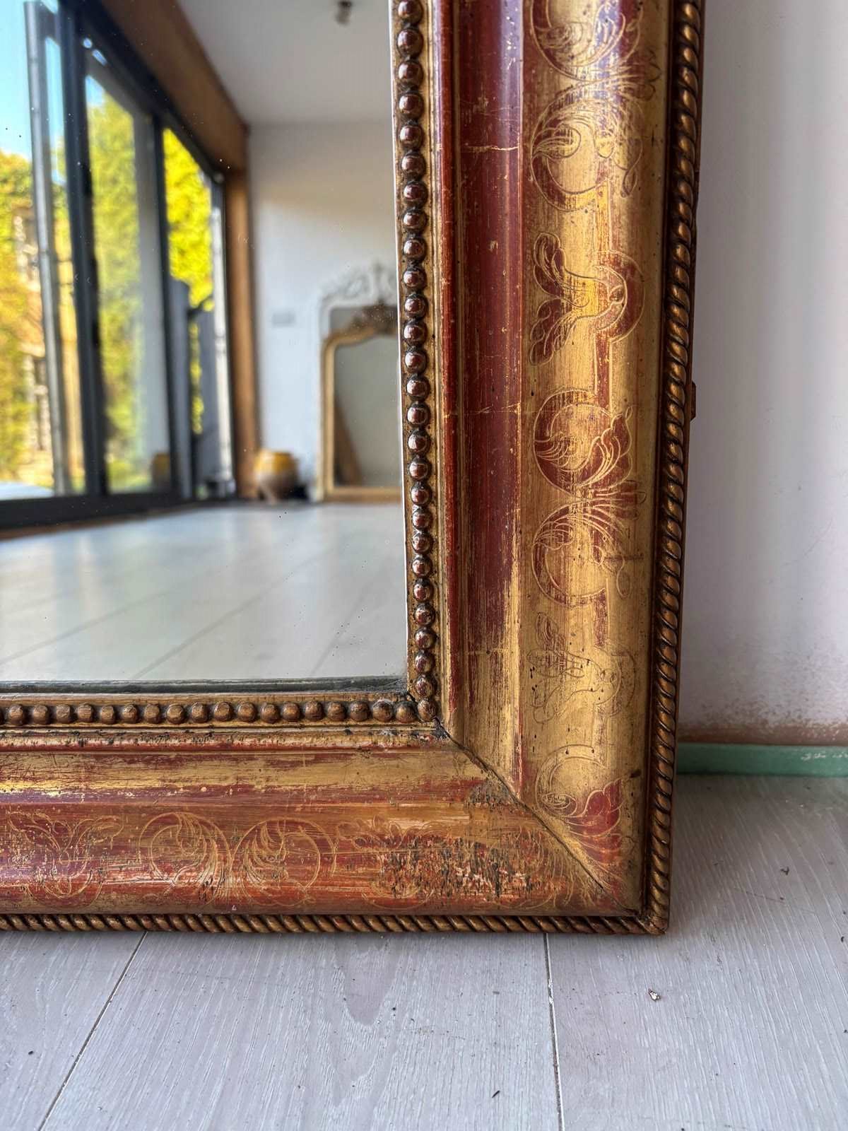 Beautiful red colouring to the frame on this Louis Philippe mirror c1880