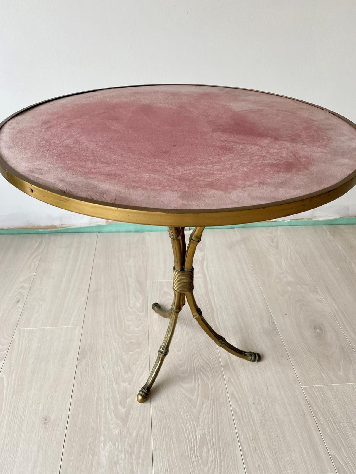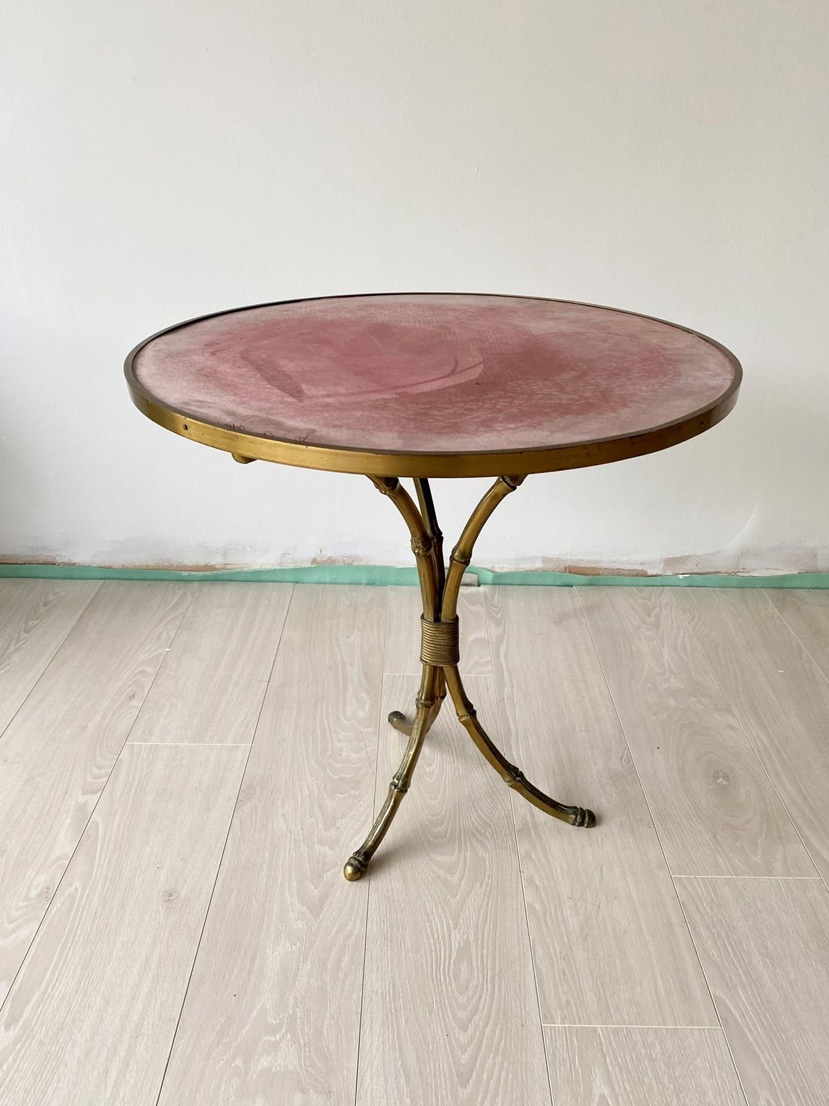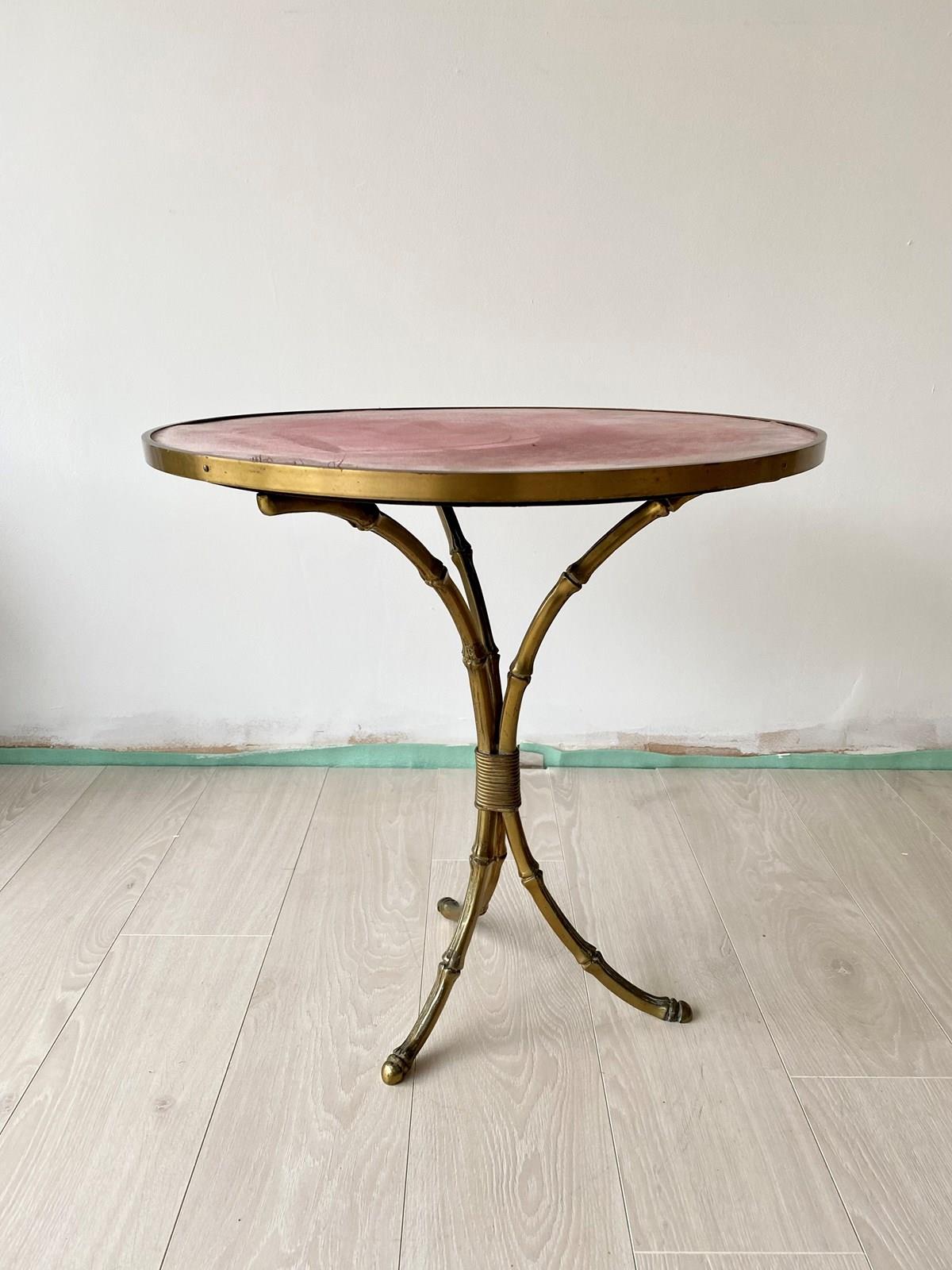 Faux Bamboo Gueridon Table With Brass Tripod Base
