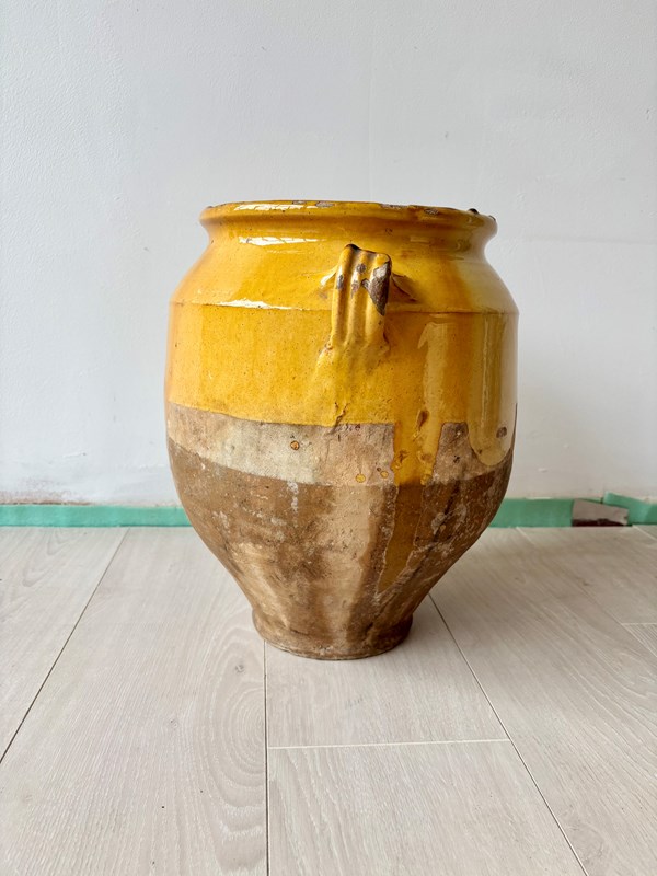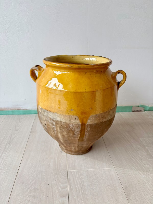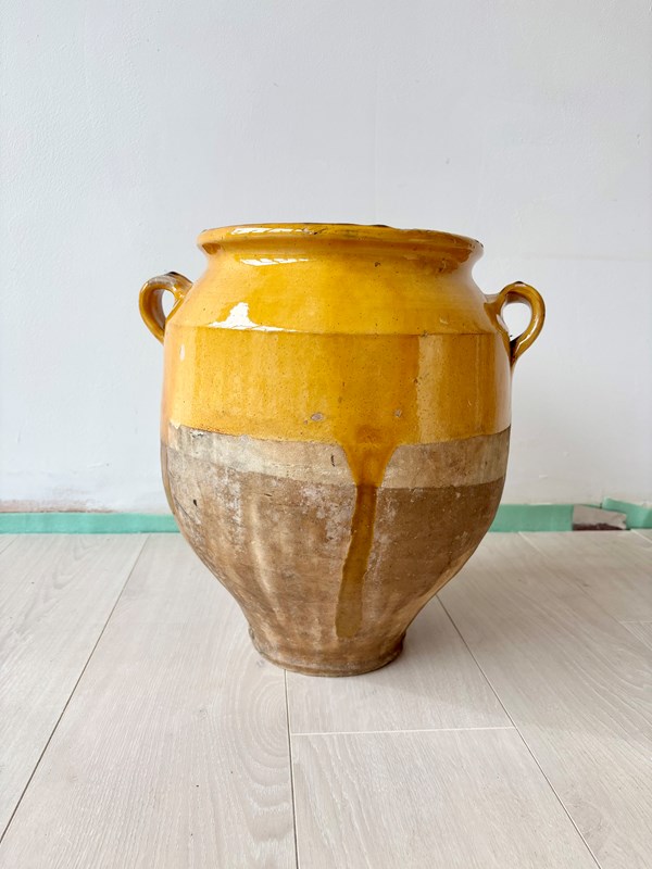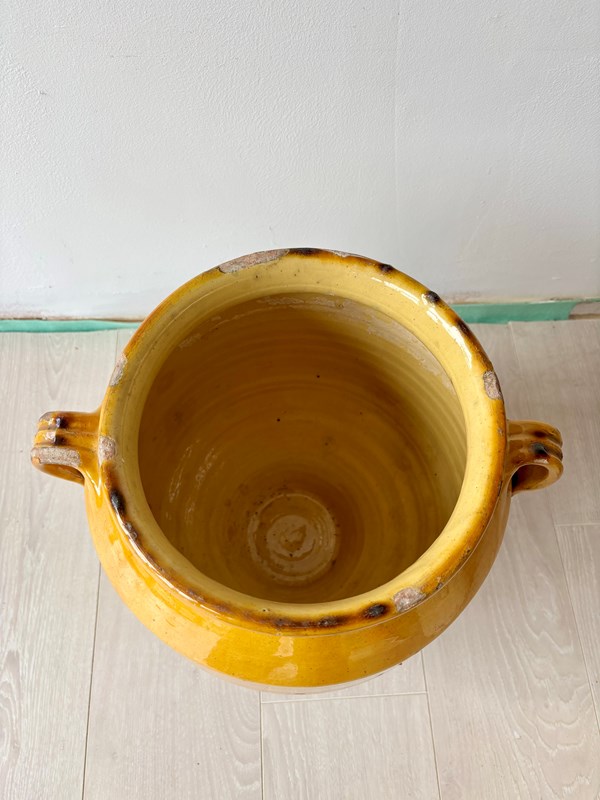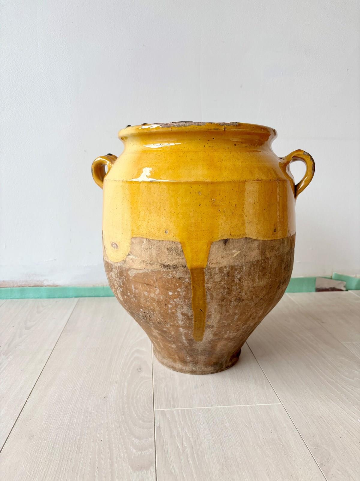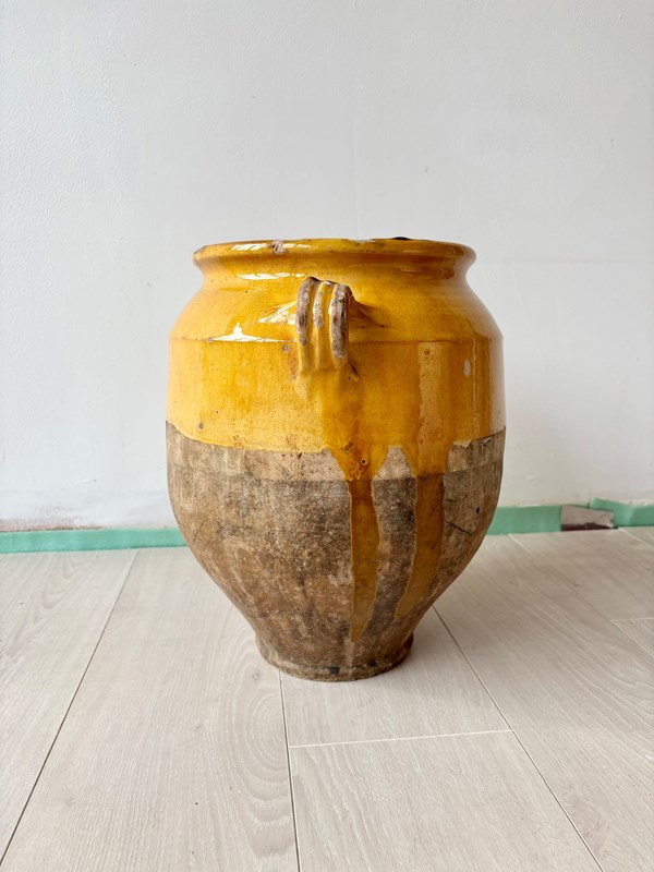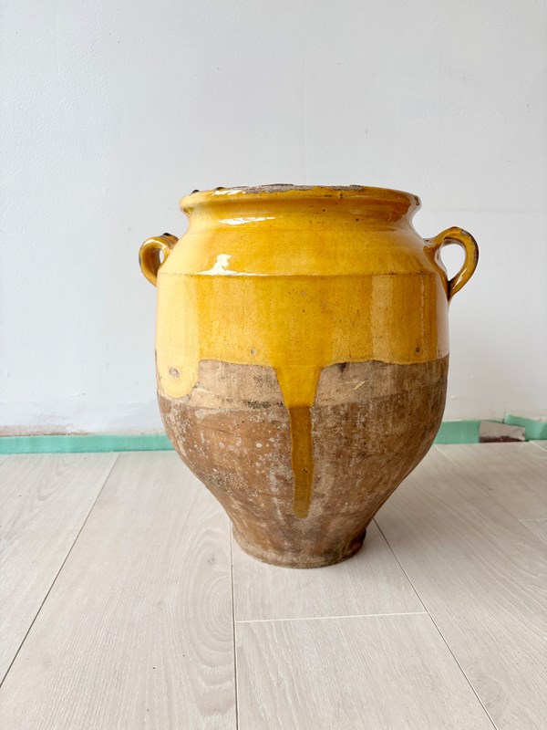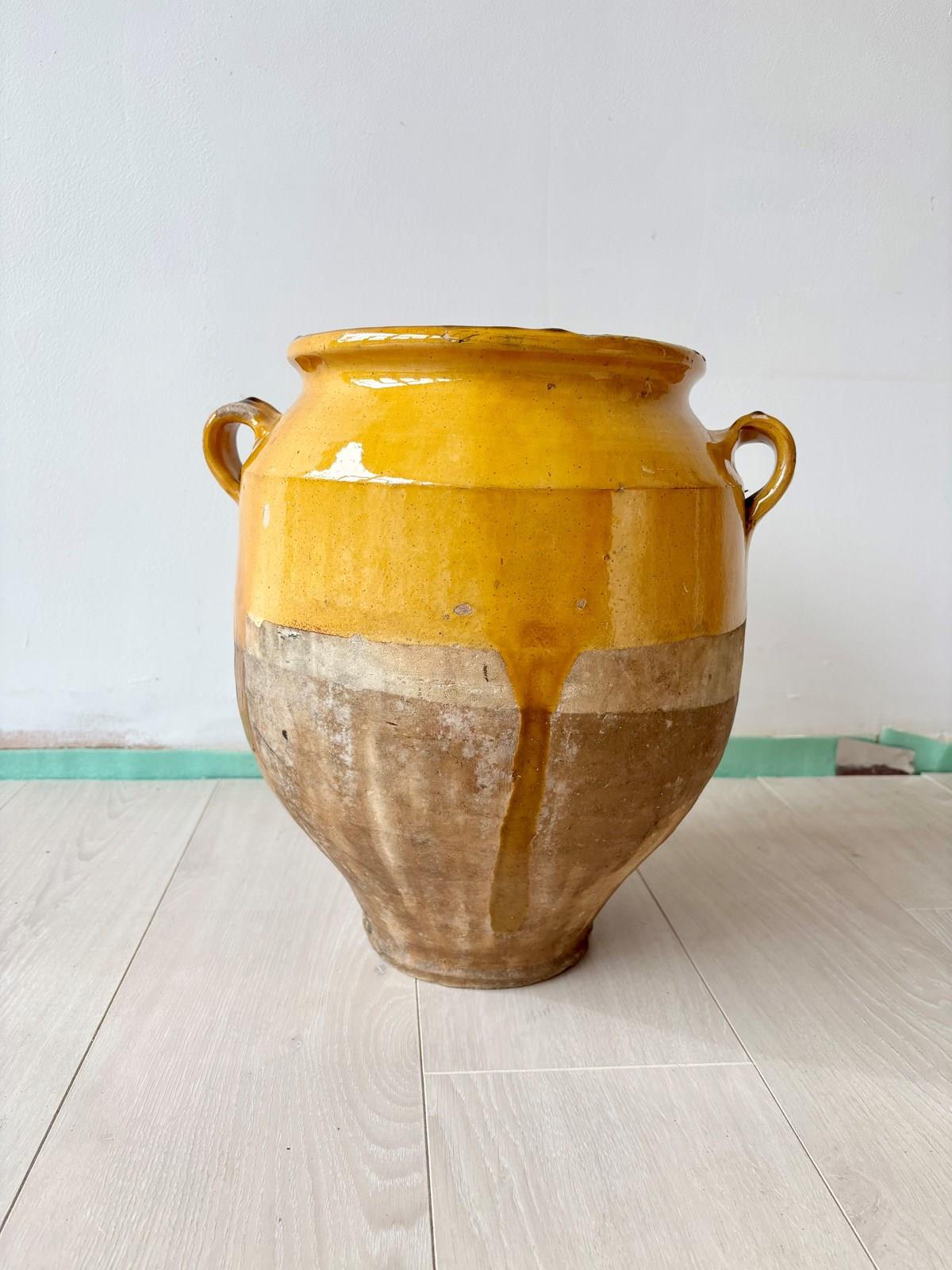 Part glazed earthenware pots have a beautifully rich ochre yellow glaze.