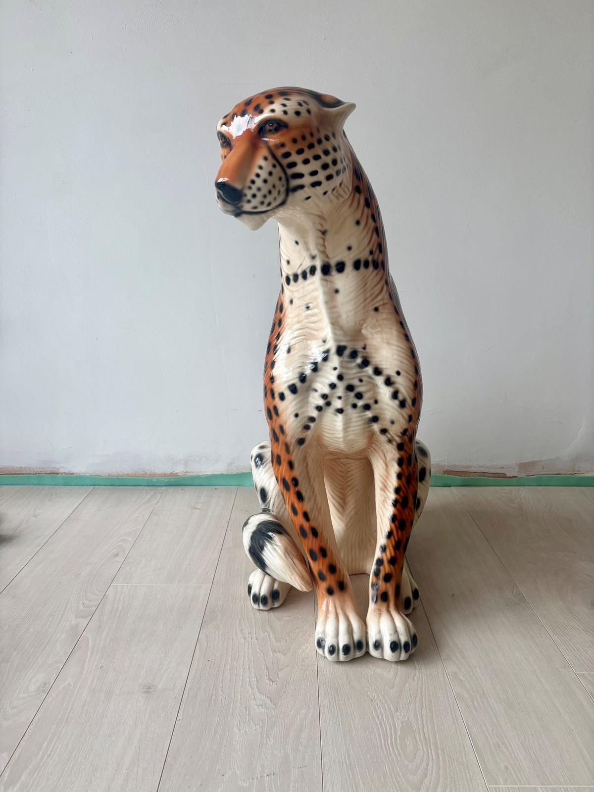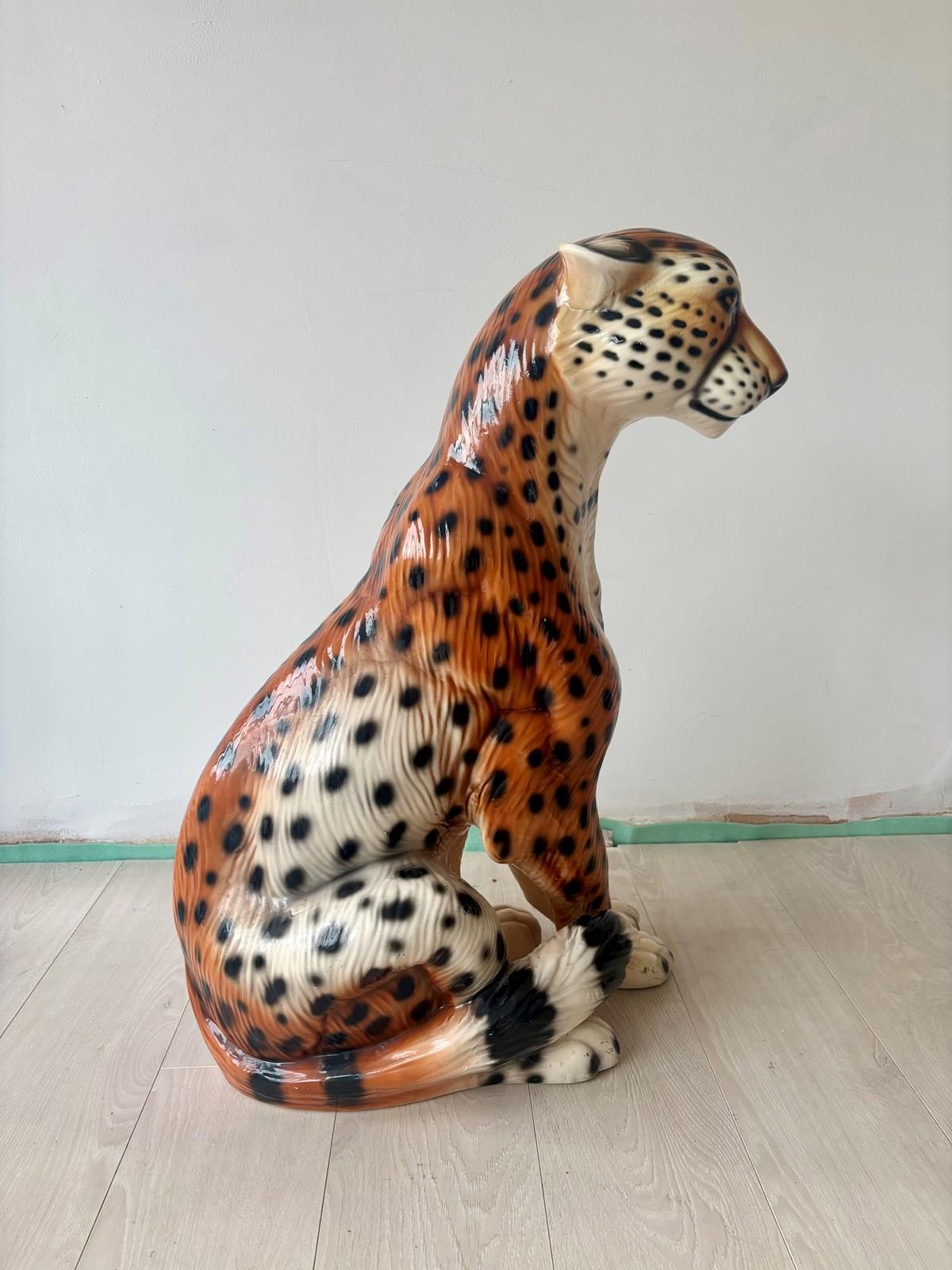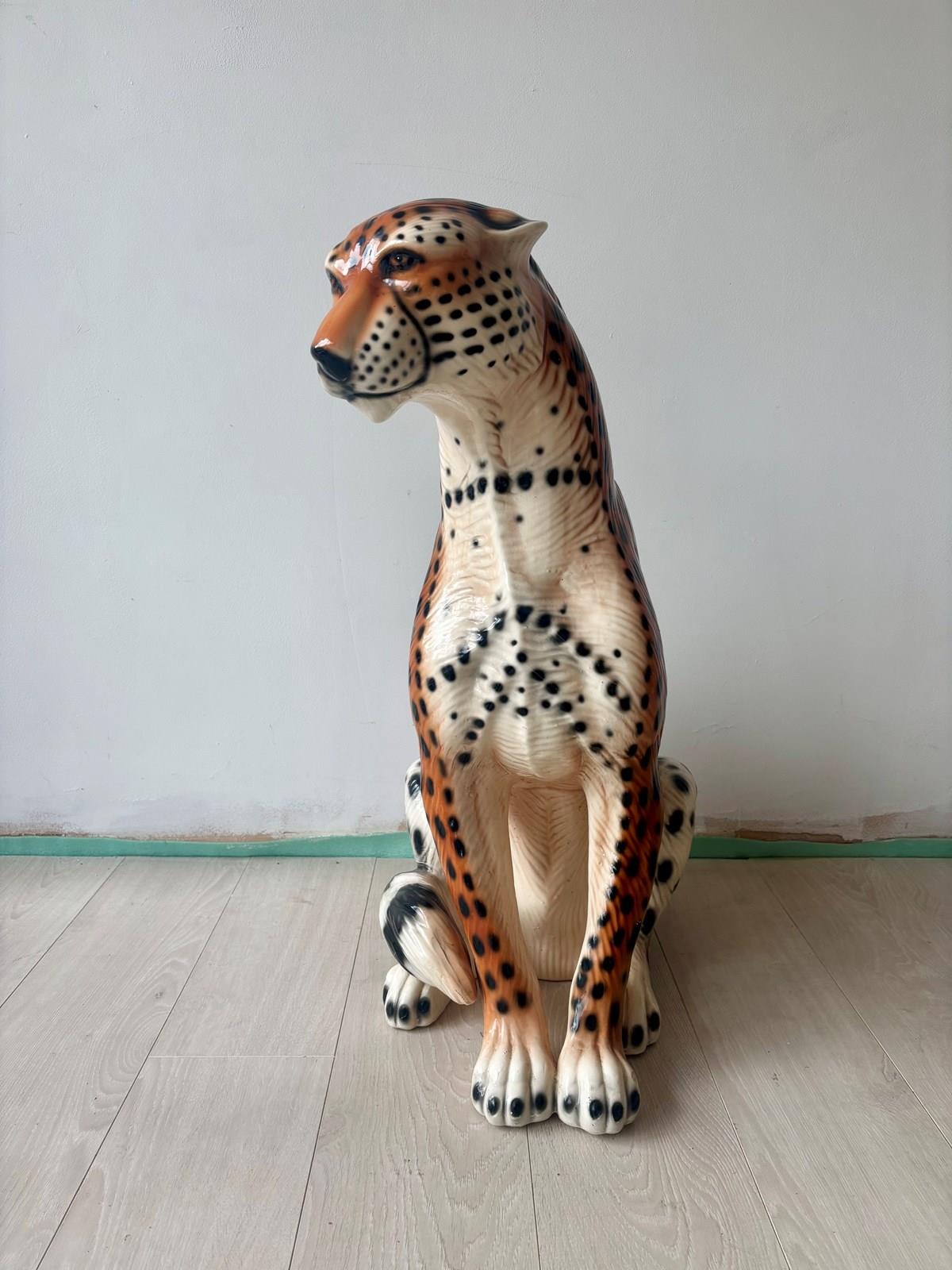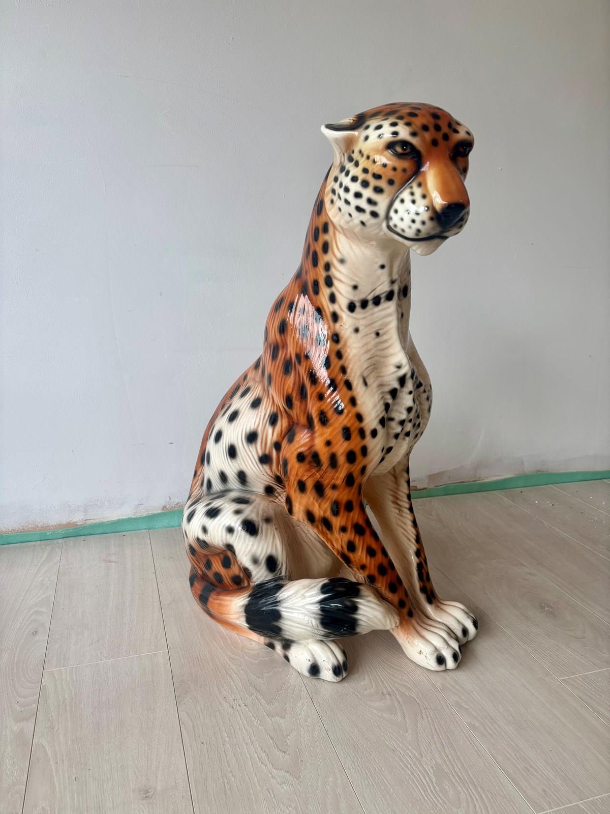Large Vintage Cheetah Leopard Statue