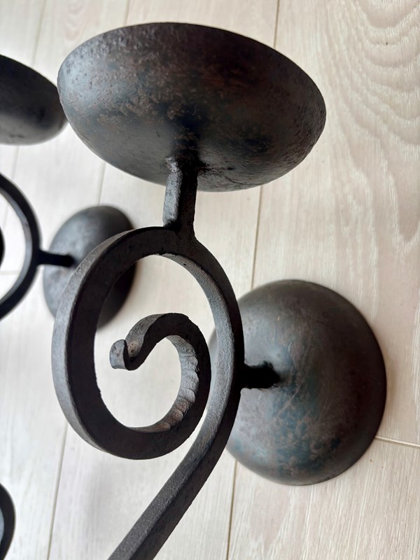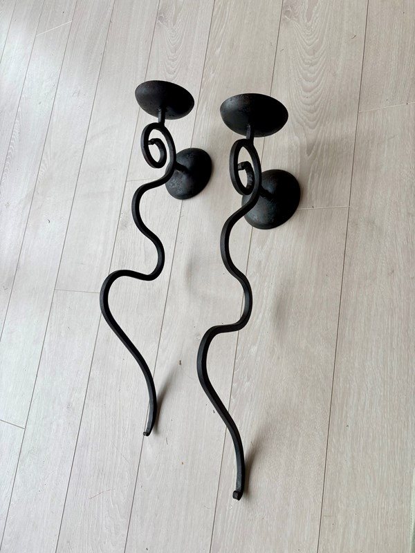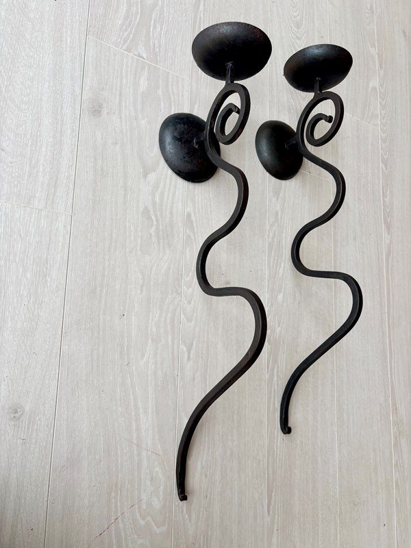 Fantastic shape and size (58cm) to this pair of wrought iron sconces