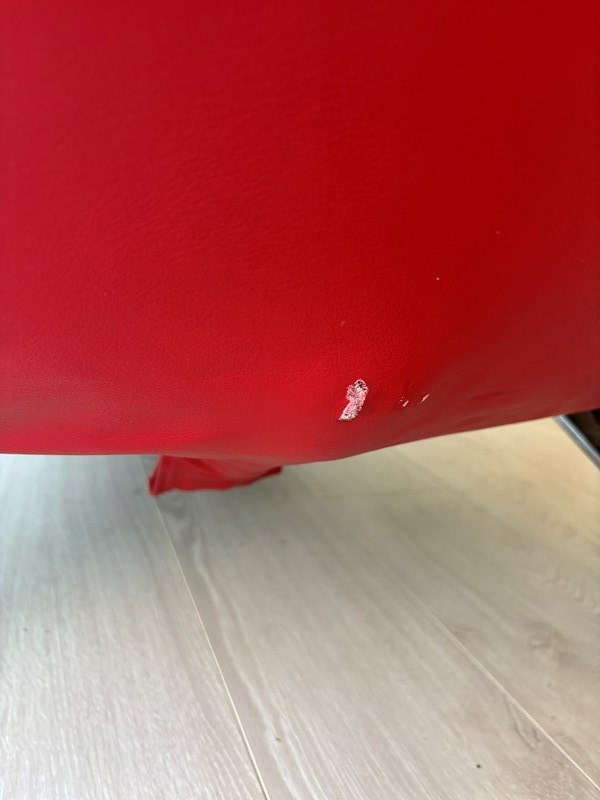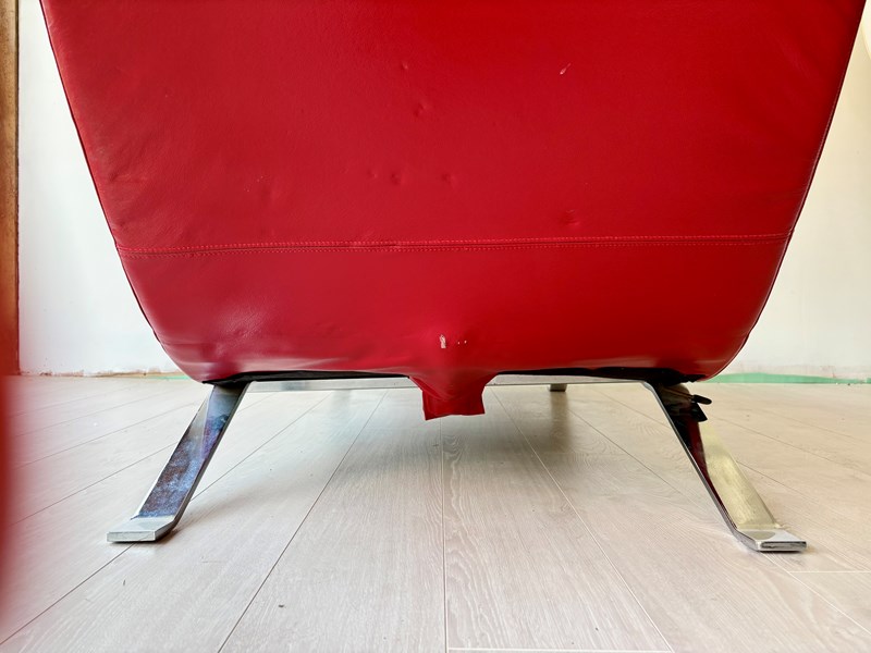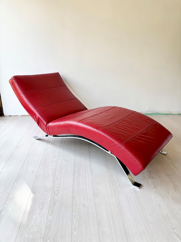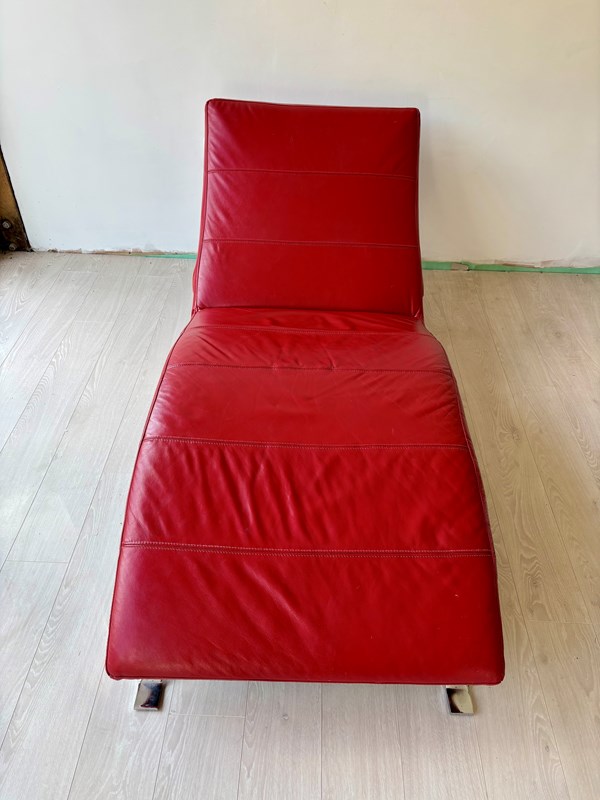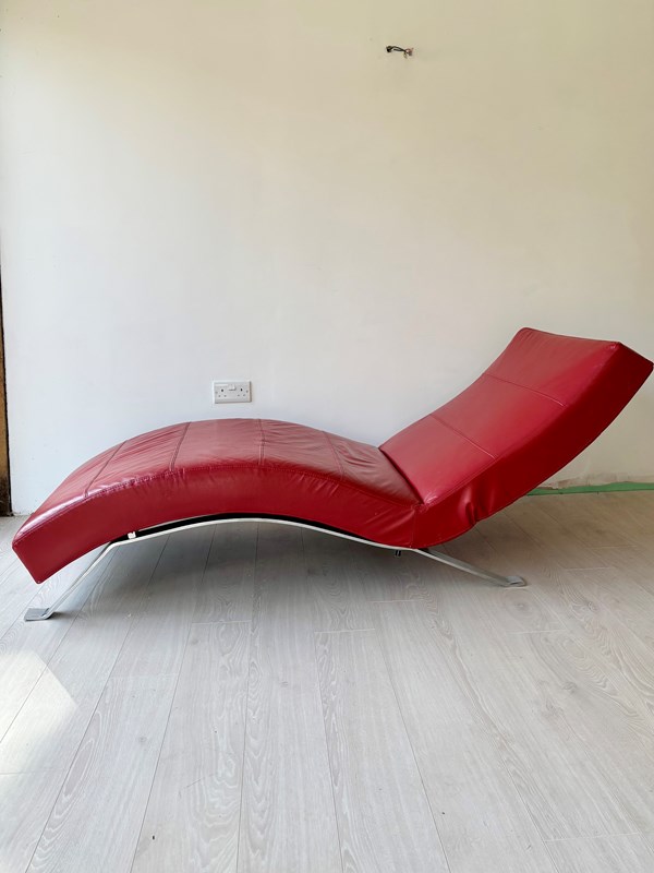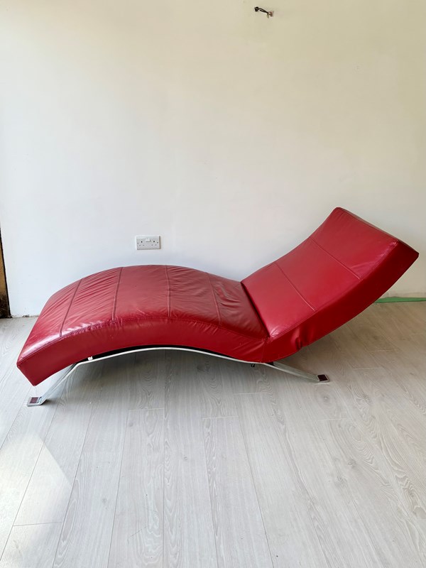 Super stylish and so very 80s this fantastic cherry red chaise with recliner paddle to the side