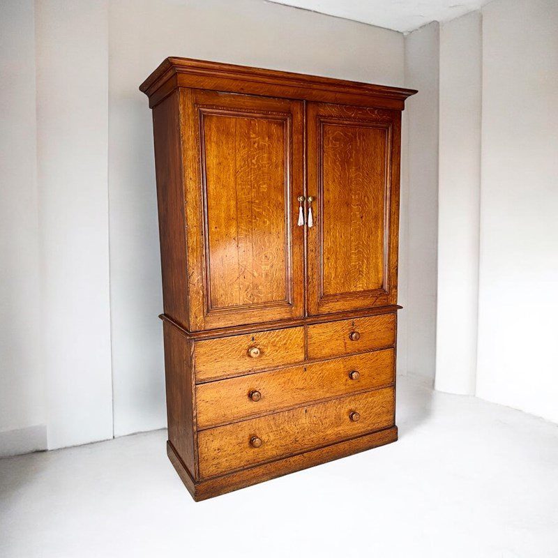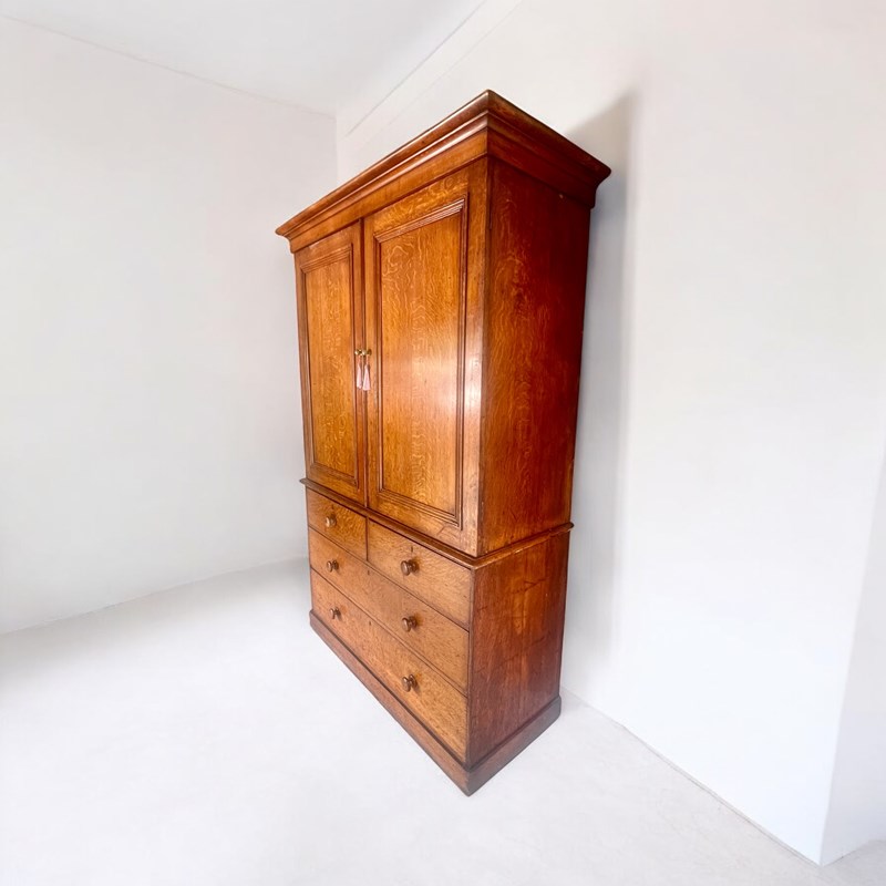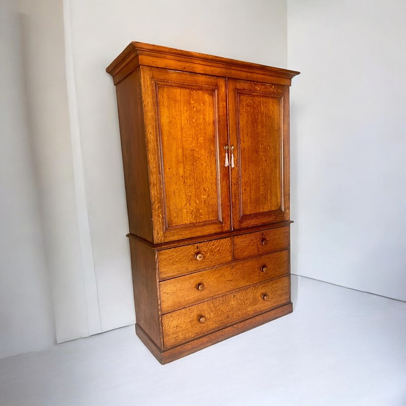 19Th Century Oak Wardrobe Linen Press Or Housekeeper's Cupboard
