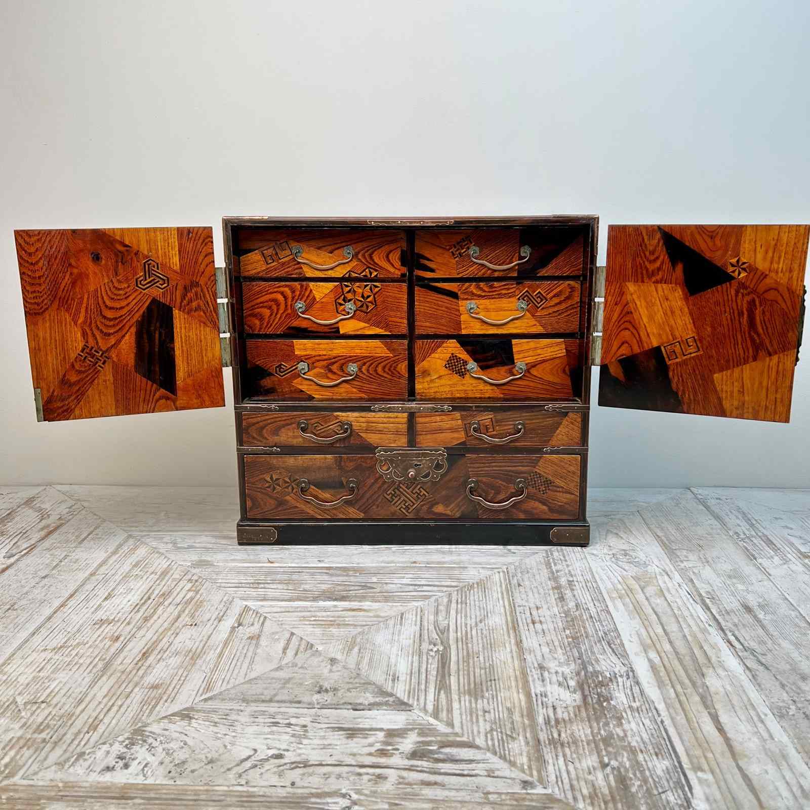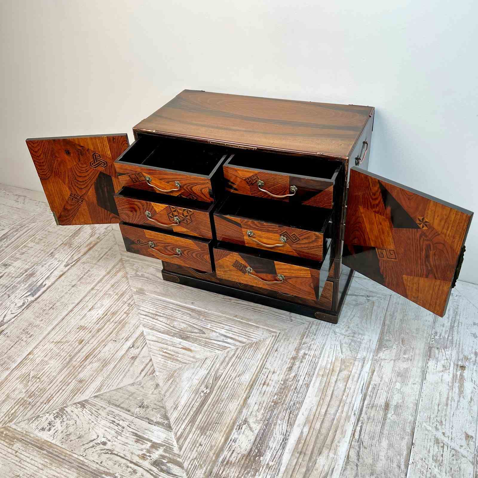 A Japanese Specimen Wood Tansu Table Cabinet, Circa 1900 Meiji Period