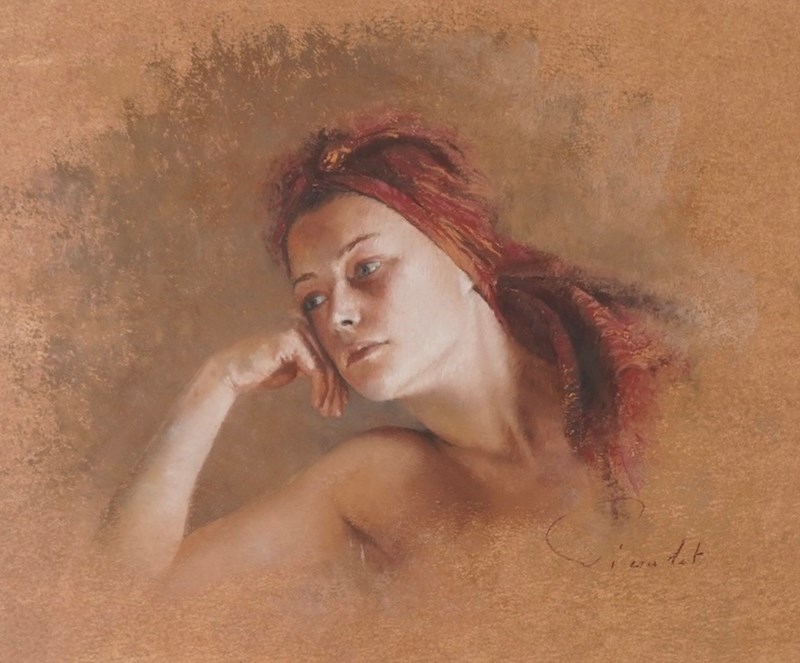 Please note that we have two other pastels available by the same artist showing in the last two images: 'Femme au Bandeau 2' and 'Rouge Anglais'