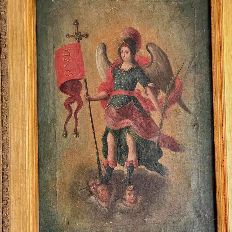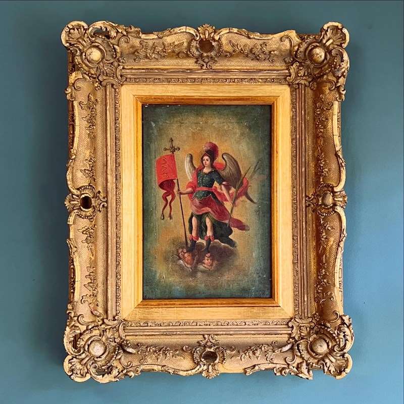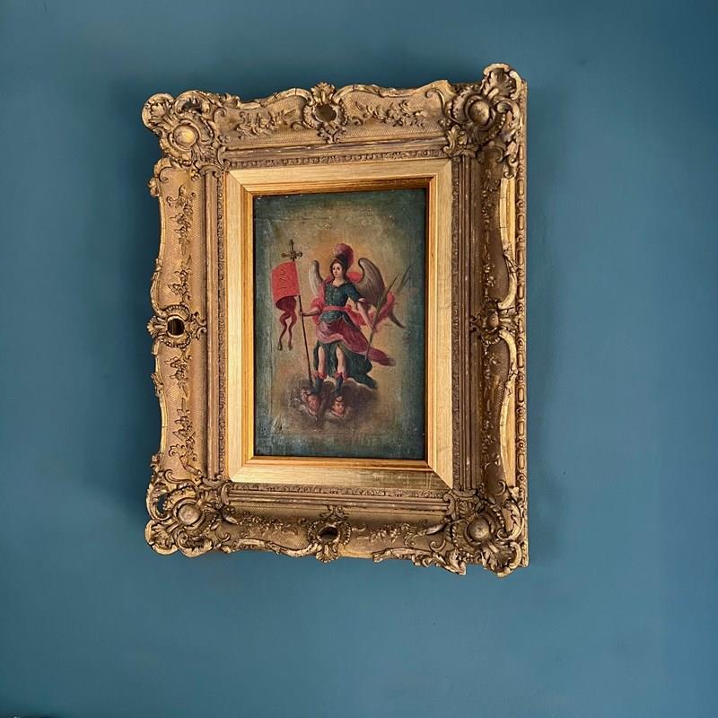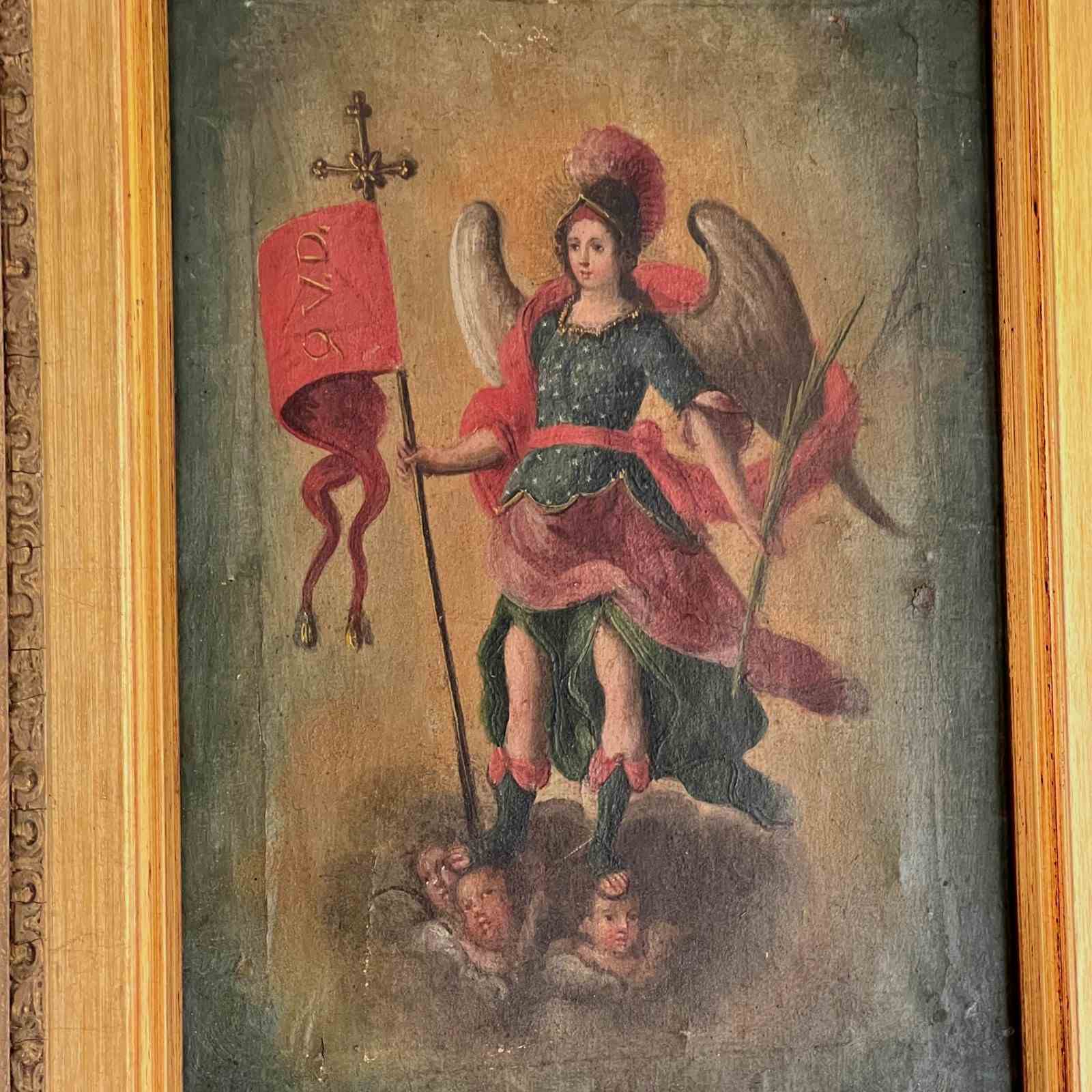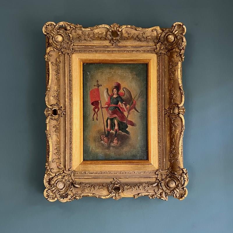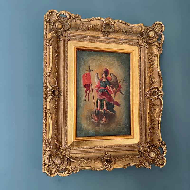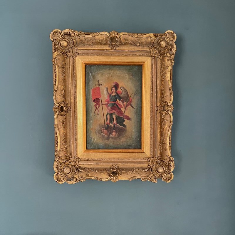 Antique C18th Oil Painting Of Archangel Michael In Gilt Frame