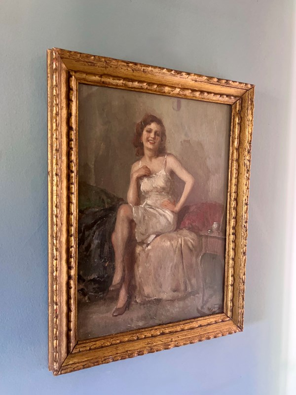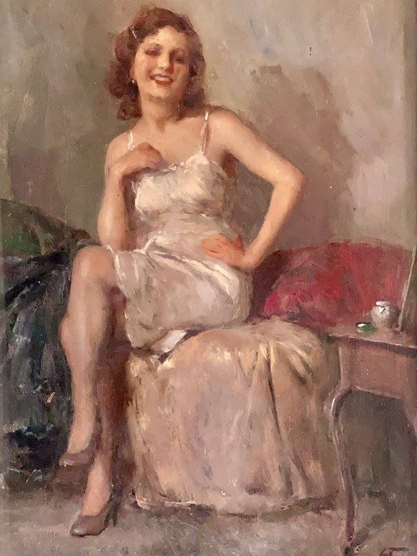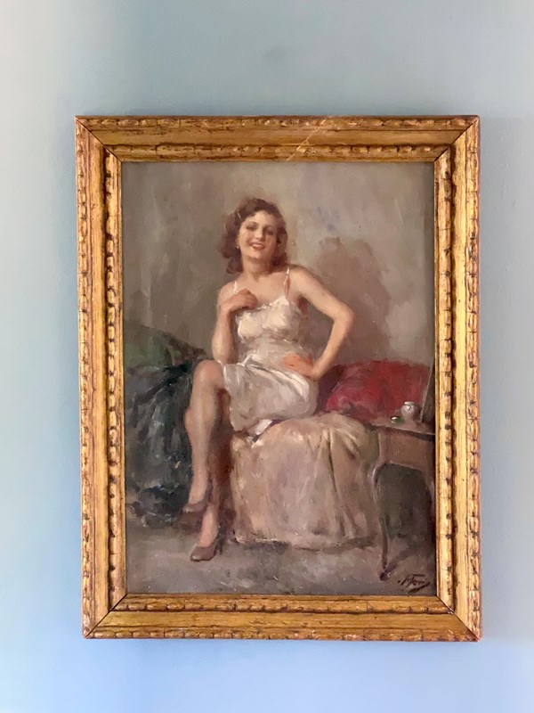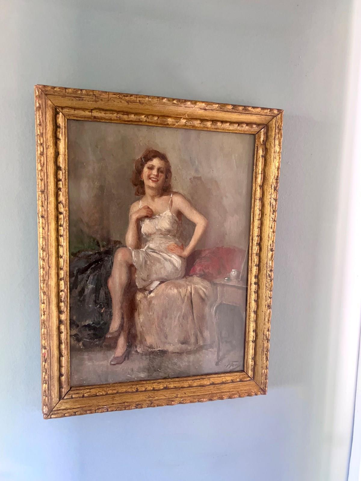 An original Italian oil painting: Portrait of an Elegant Seated Woman by Attilio Toro (1892–1982), housed in a suitable giltwood frame.