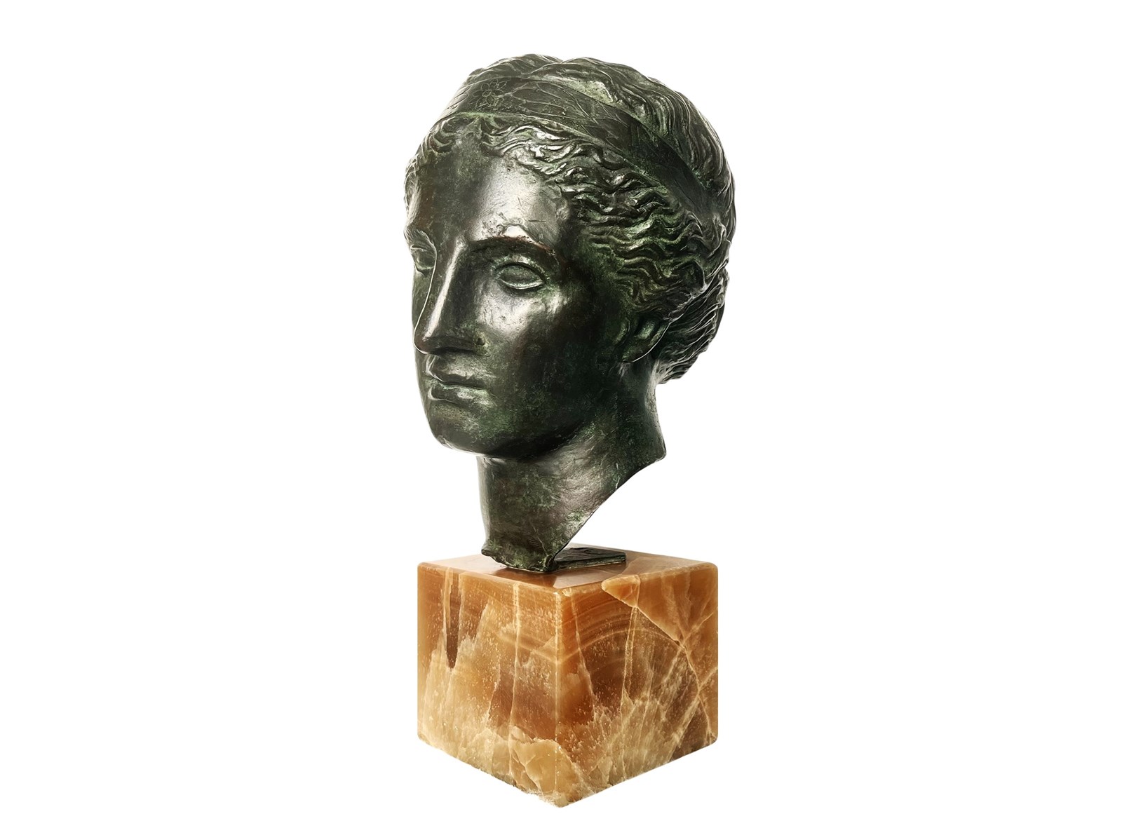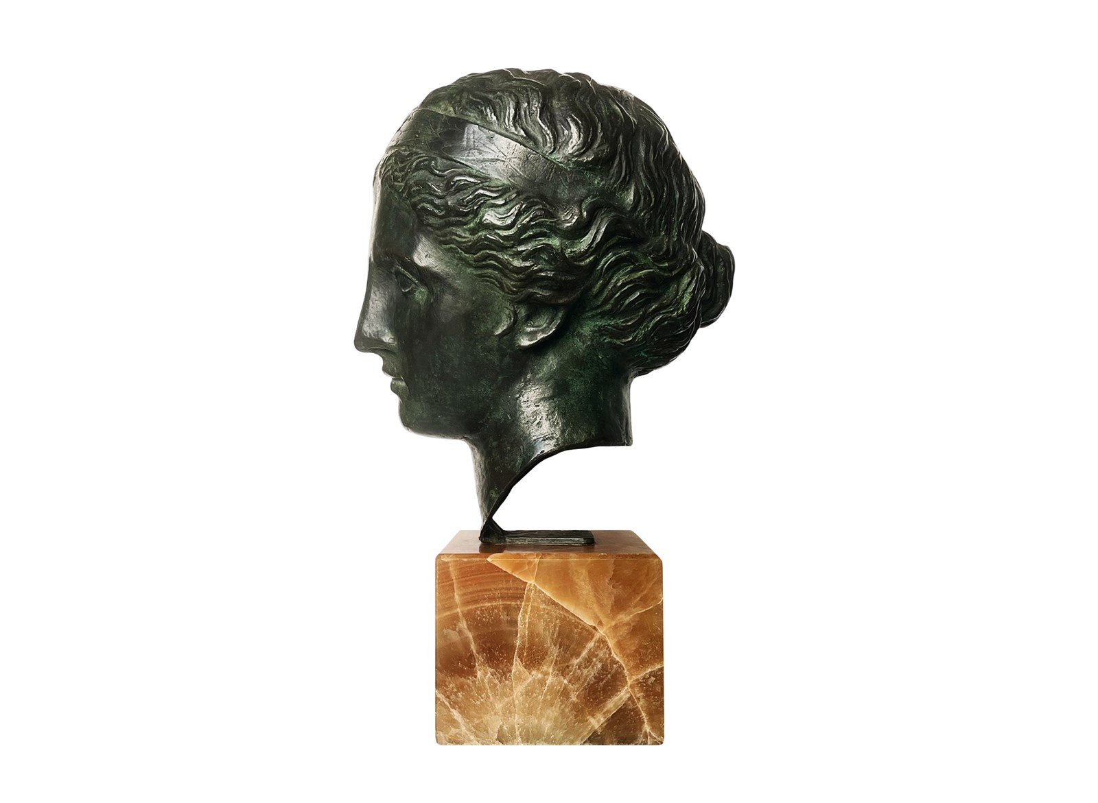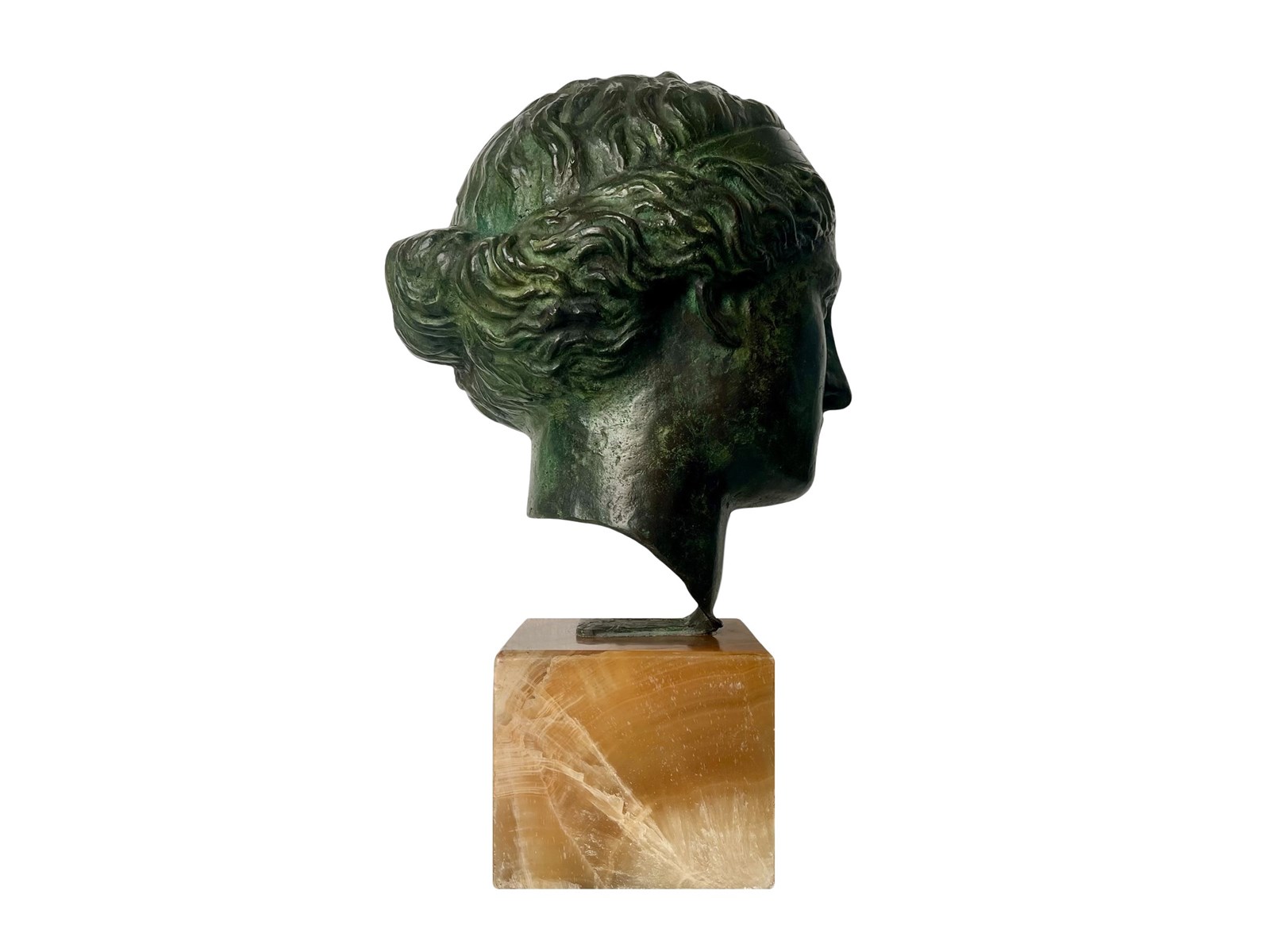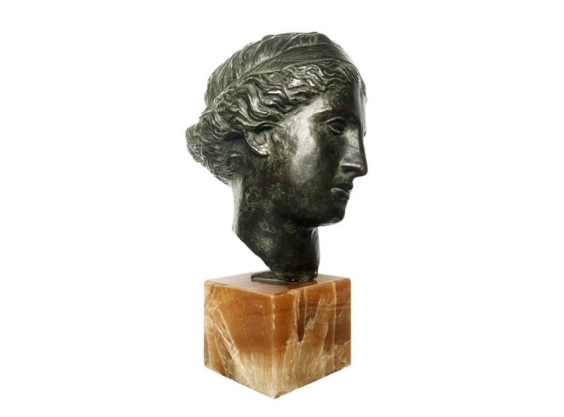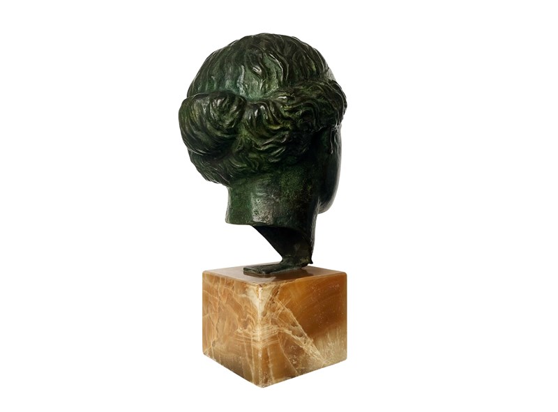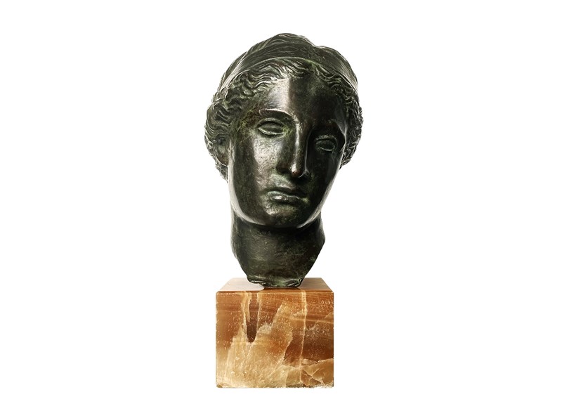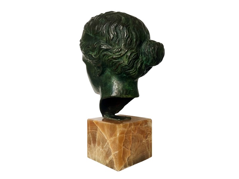This is an exquisite and extremely rare antique Italian sculpture that was discovered recently in Verona. Created with a great artistic quality and craftsmanship it represents the head of Venus, the Roman goddess of love, beauty and prosperity that has inspired artists through centuries. The head is mounted on a stunning block of marble which allows an easy display of this magnificent work of art. The patina on the bronze is truly outstanding in the shades of dark green. The sculpture measures about 43 x 20 x 28 cm or approximately 17 x 8 x 11 inches and it is in lovely antique condition with minor signs of ageing and exactly as I discovered it. For the full condition please refer to the images!