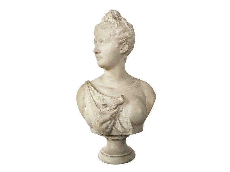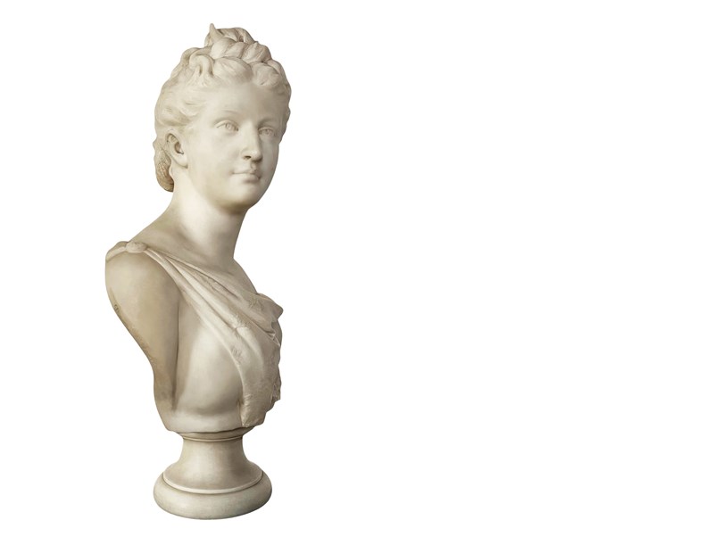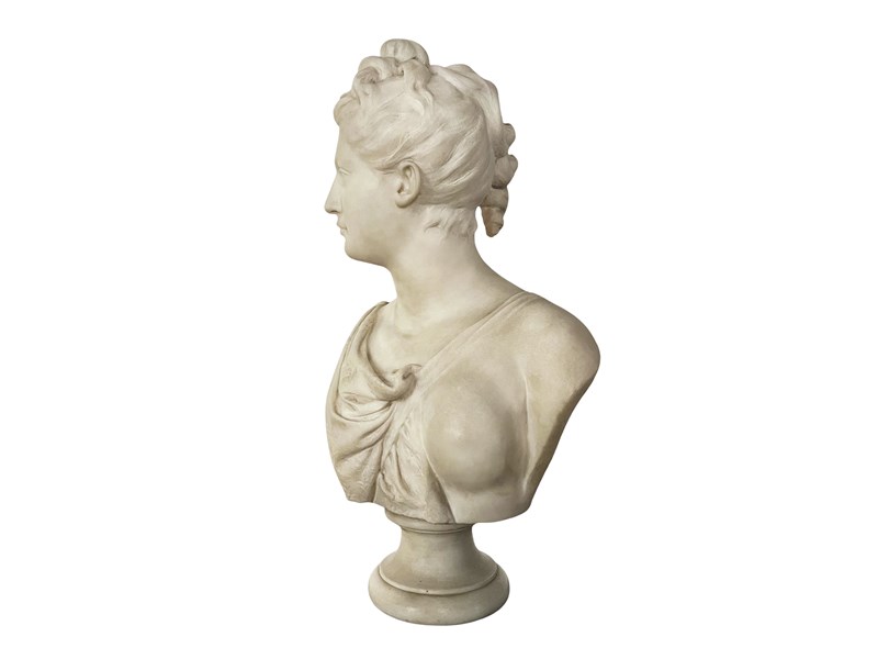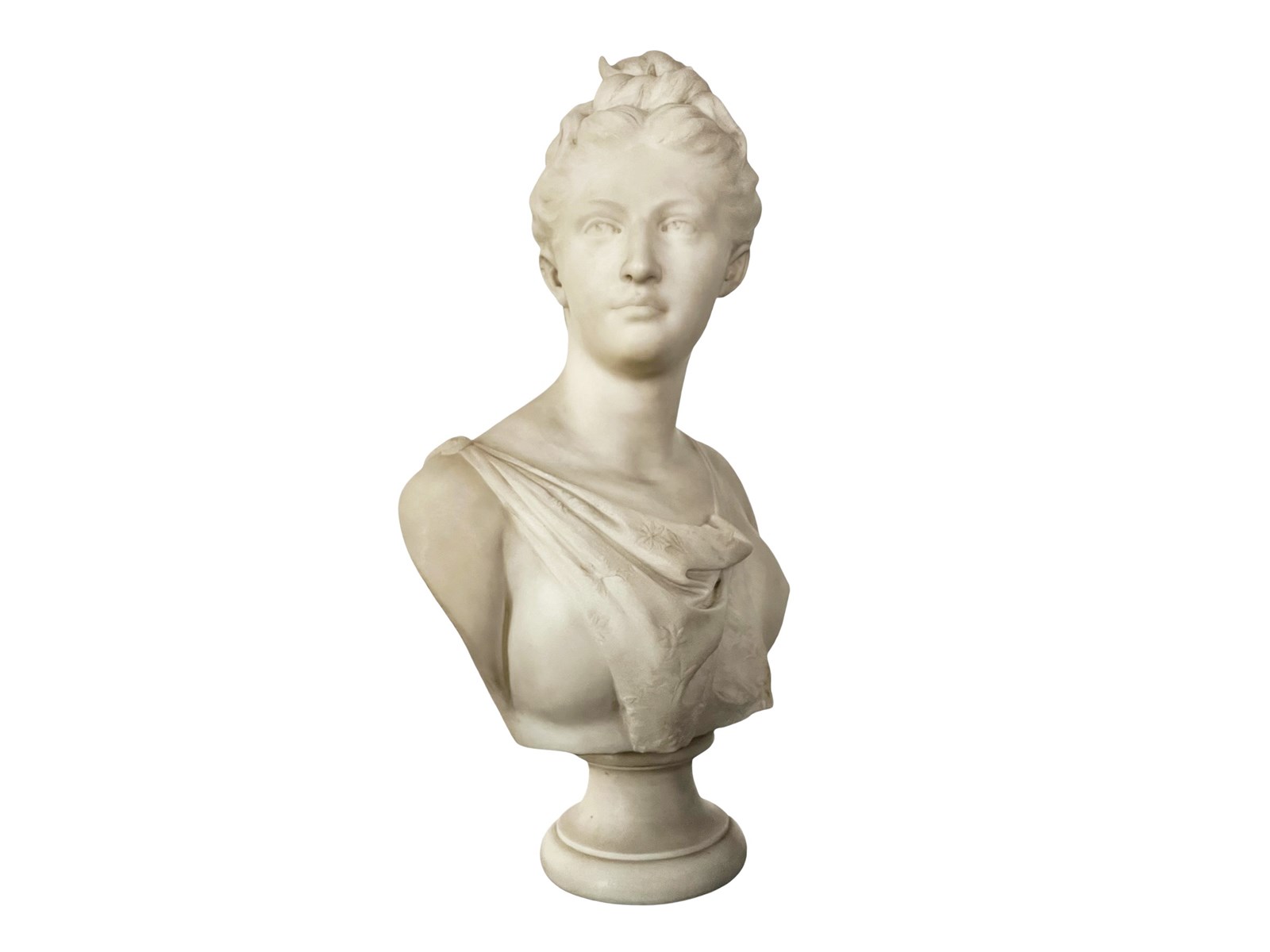 Exquisite French Bust Of Diana, Hand Carved Marble Sculpture, Signed, 1800'S