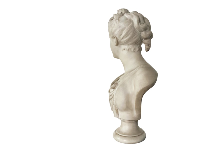 This is an absolutely exquisite antique French bust of Diana that dates from the 19th century. Created with exceptional talent this hand carved white marble sculpture is astonishing in its beauty as well as the craftsmanship that went into its creation. This breathtaking bust bears the signature of its maker and it was discovered in Nimes in the South of France. Such sculptural treasures could be displayed in indoors as well as in gardens, bringing a true classical elegance to any stylish and unique interior.