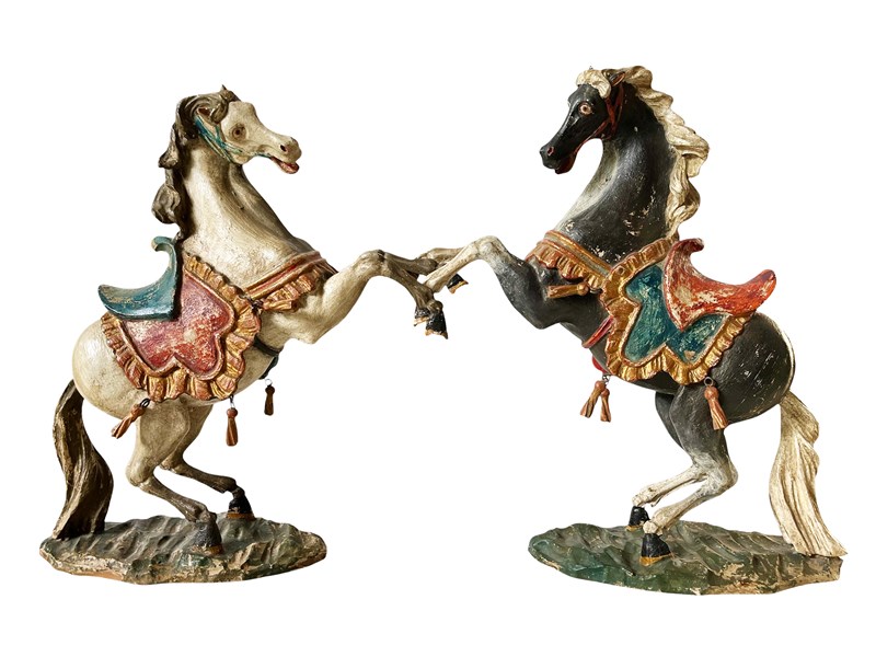In my listings I have another horse that was discovered in the same place in Germany. That one is white and both make a great pair if needed for a symetrical display as shown on the last two images.