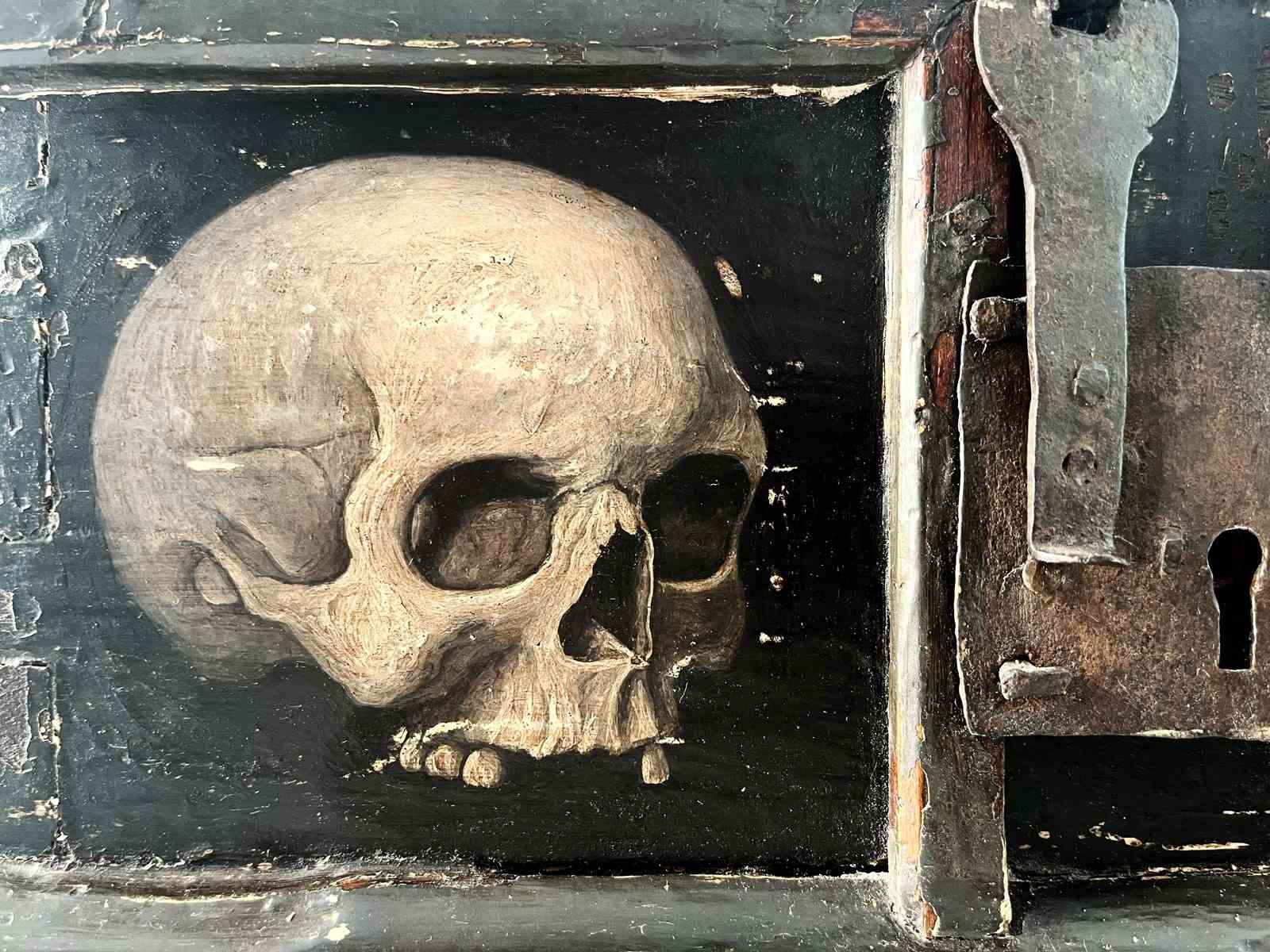 Fascinating And Extremely Rare Italian Memento Mori Chest, 1700'S