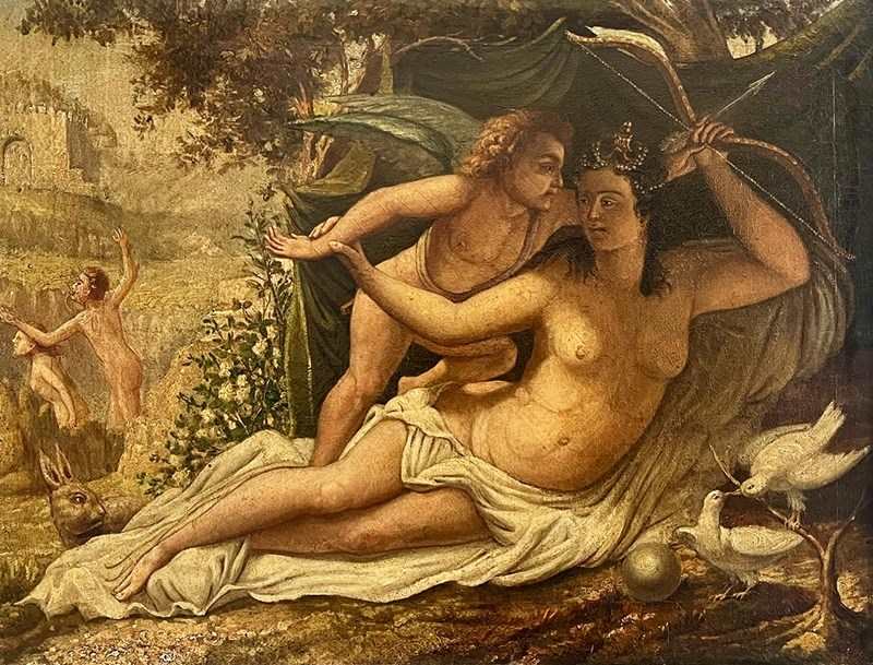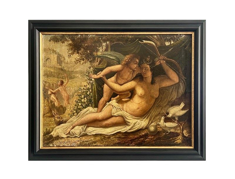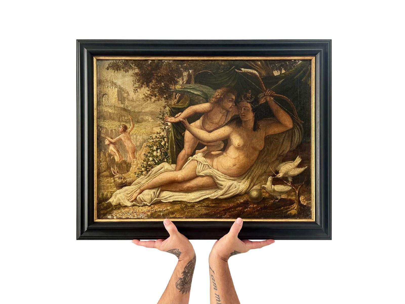 This is a stunning antique French painting that was discovered recently in Avignon in the South of France. Dating from the 19th century this fabulous and highly romantic oil on canvas depicts the story of Cupid and Psyche or Eros and Psyche in Greek mythology. Filled with gorgeous details this opulent work of art is marvellous in its fine artistic expression and quality. The canvas measures about 50 x 65 cm or 19.6 x 25.5 inches. It was recently framed [as it was discovered without it]. The frame measures 61 x 78 x 4.5 cm or about 24 x 30.7 x 1.7 inches. In lovely antique condition and exactly as I discovered it with minor signs of ageing. For the full condition please refer to the images!