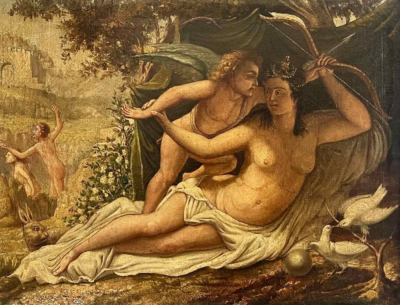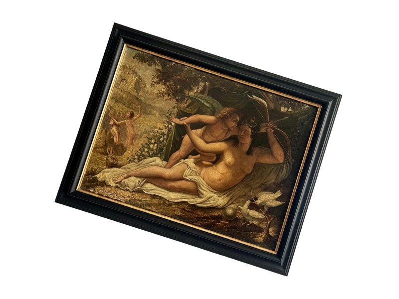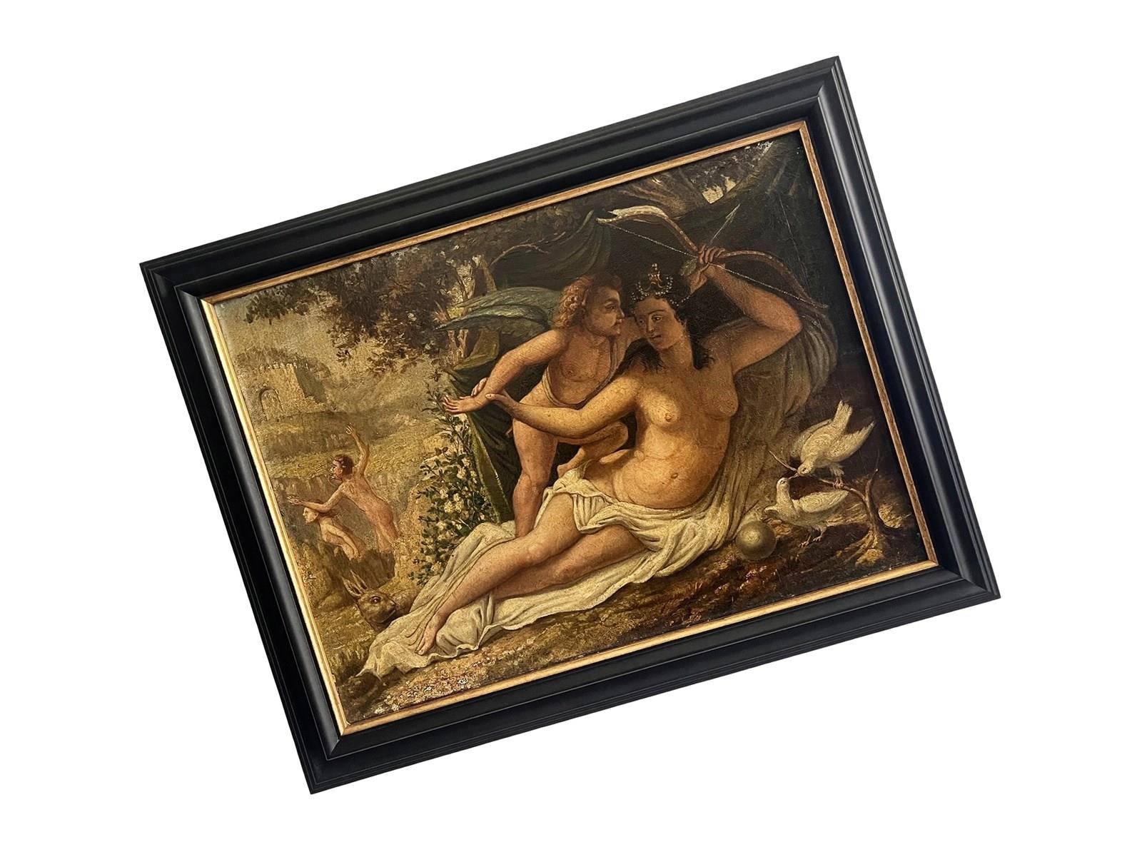 French Painting Of Cupid And Psyche, Oil On Canvas, 1800'S
