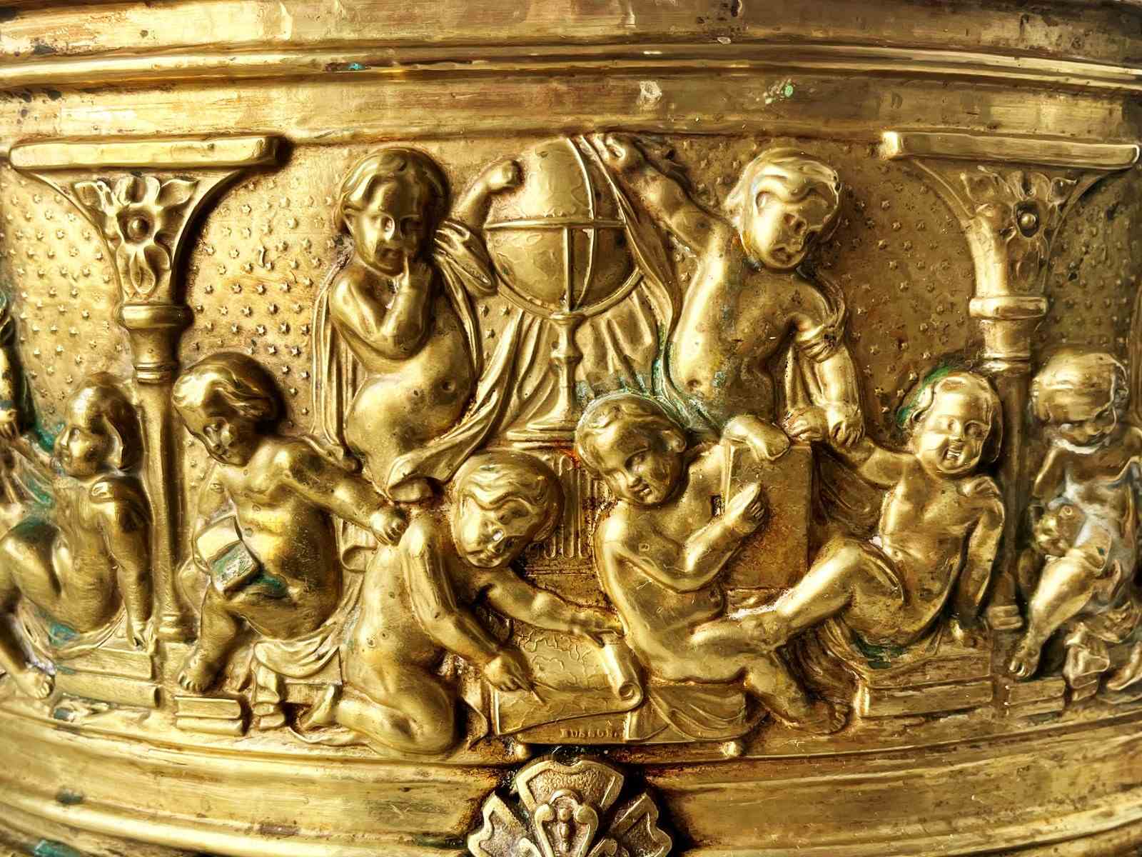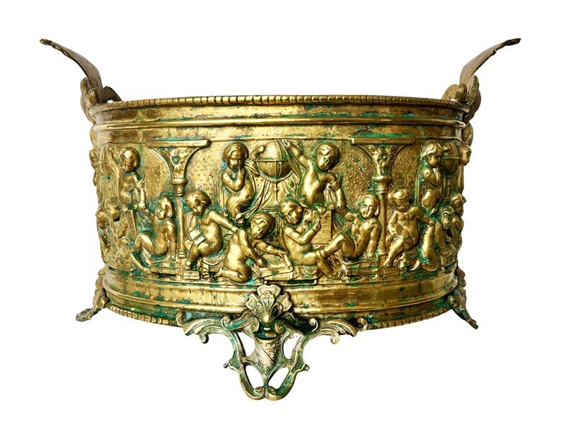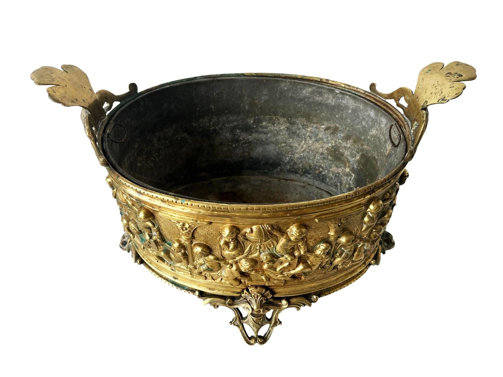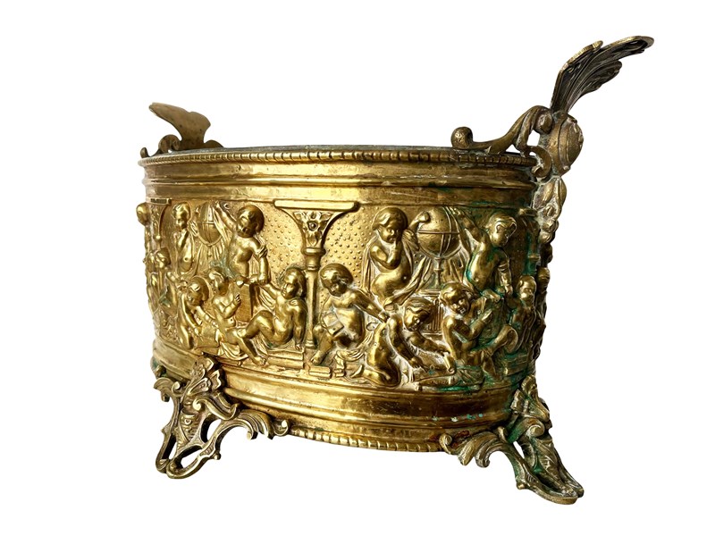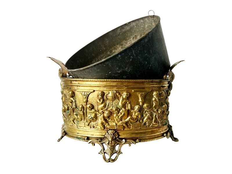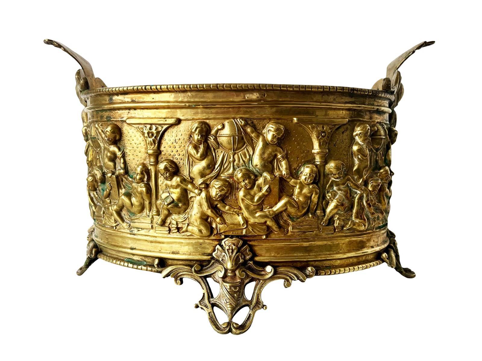 Opulent And Large Antique French Brass Jardiniere With Lovely Patina, 1800'S