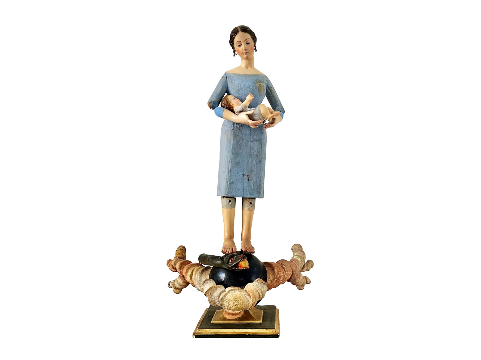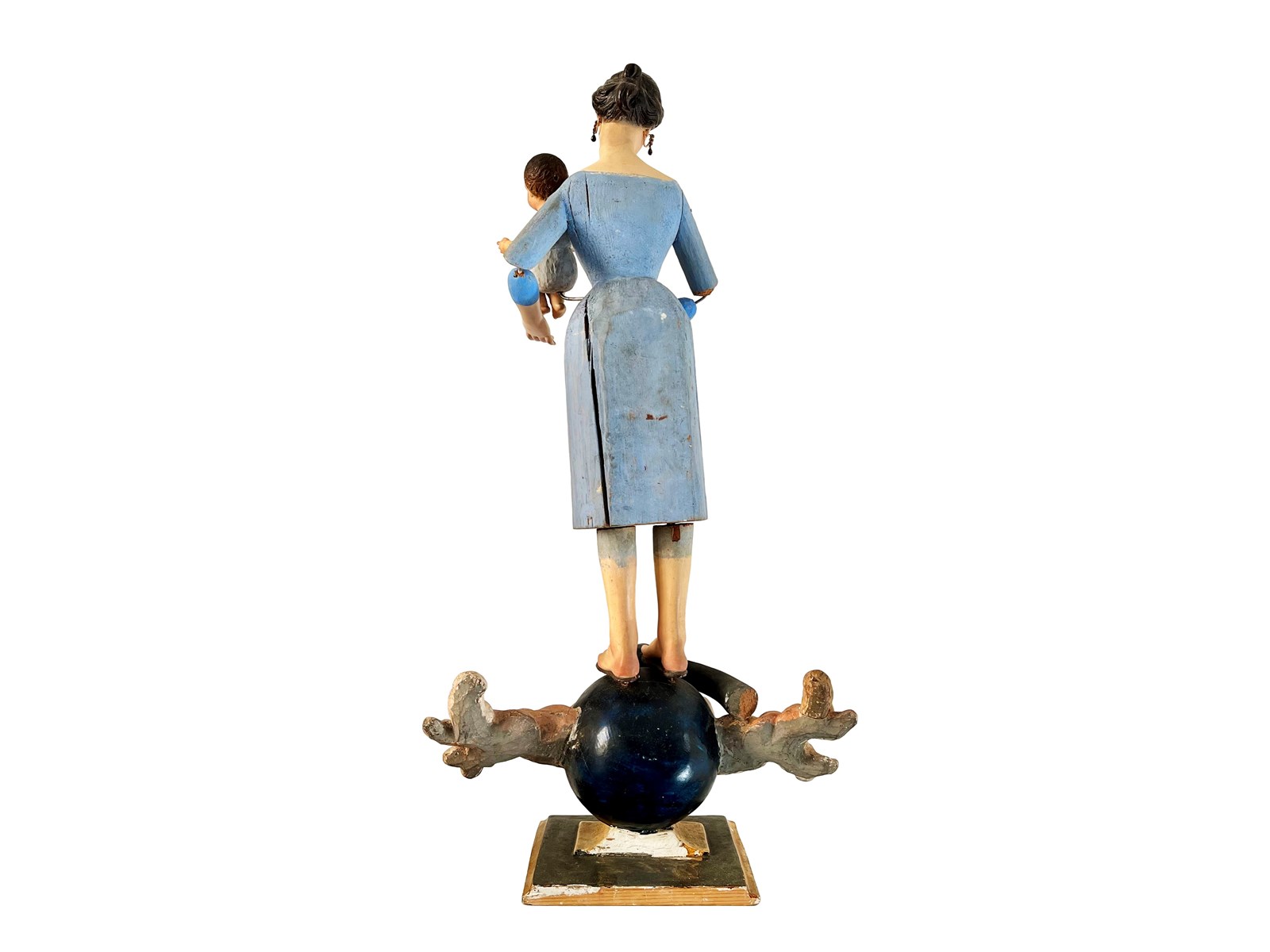 Spanish Madonna And Child Santo, Hand Carved Wood, 1800'S