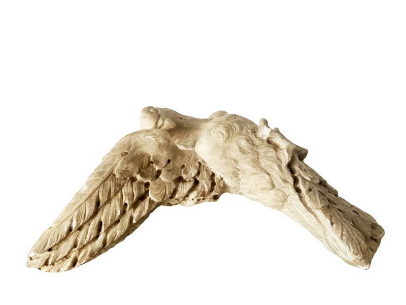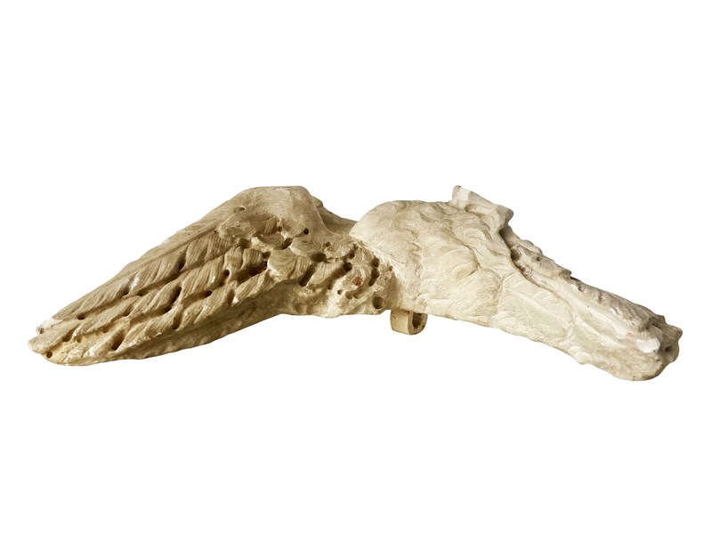 This is an absolutely stunning and extremely rare antique Italian dove known as "Colomba" or the Holy Spirit that is entirely hand carved from a white stone. Once part of an elaborate altar display from the 18th century this magnificent sculptural treasure is outstanding in its artistic quality, fine craftsmanship as well as its meaning. This is a large stone fragment with one wing missing which in my opinion only enhances its true ancient beauty and a remarkable presence today. It measures about 34 x 36 x 12 cm or 13.3 x 14.1 x 4.7 inches and it is exactly as I discovered it recently in Venice. The back contains a stone ring, that allows it to be positioned on a wall, if desired. It also looks extraordinary on a flat surface such as a table or a desk. As it is made of stone, it means that it could be displayed in an interior as well as the exterior, for example a garden, a conservatory or a balcony. This is a rare treasure of unique statuesque brilliance. For the full condition please refer to the images!