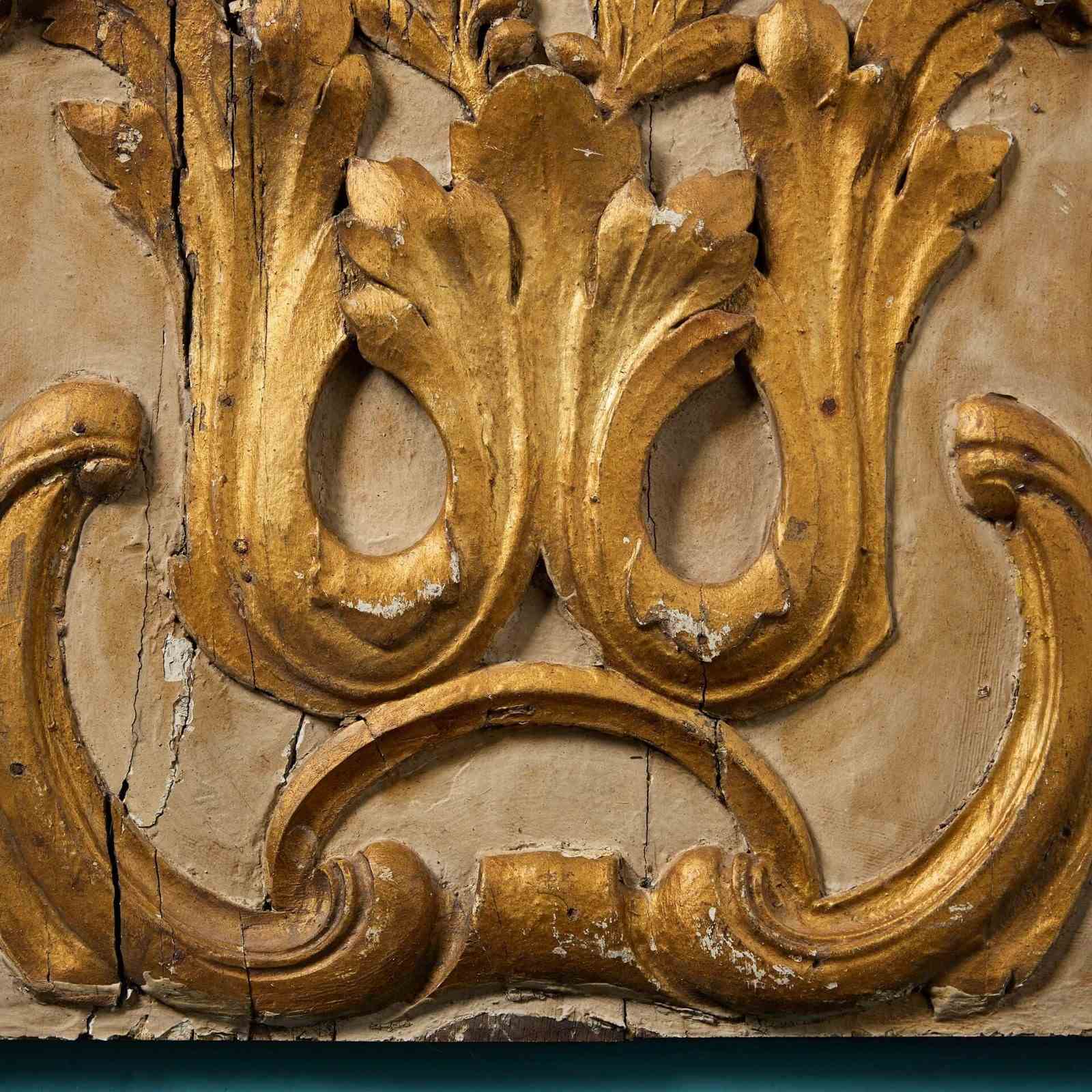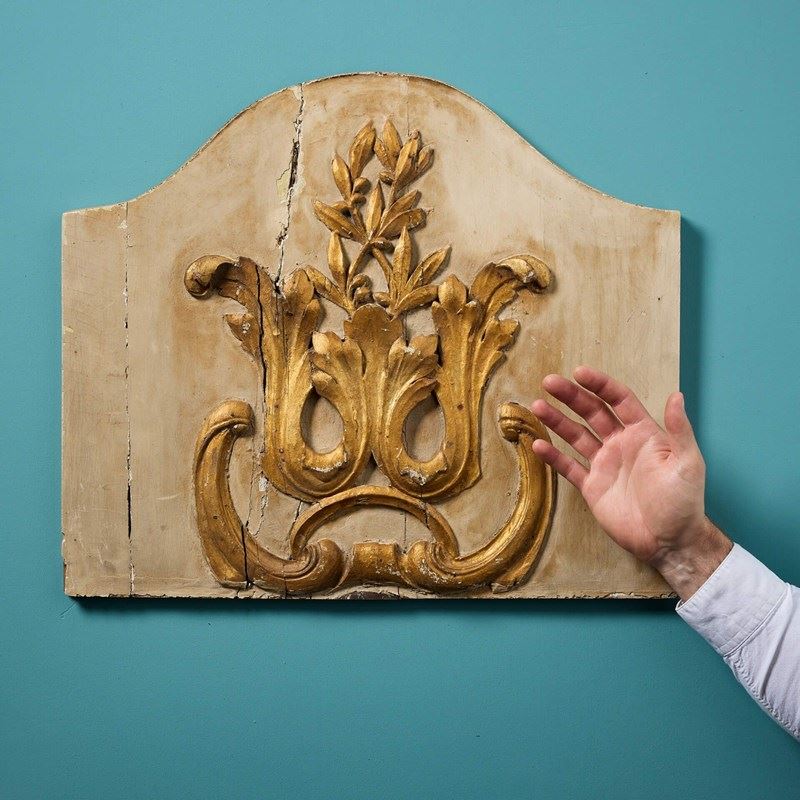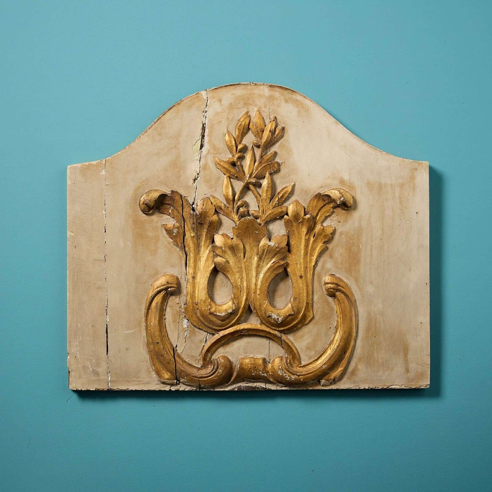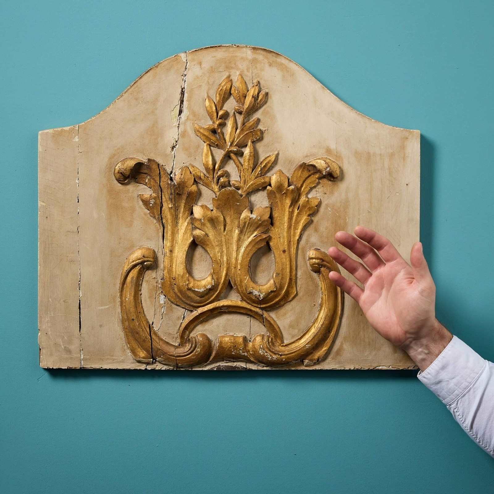 An 18th century French gilded wall hanging plaque, dating back to around 1750. This ornately shaped panel would have originally formed part of a panelled interior and has been adapted into a wall hanging decoration.