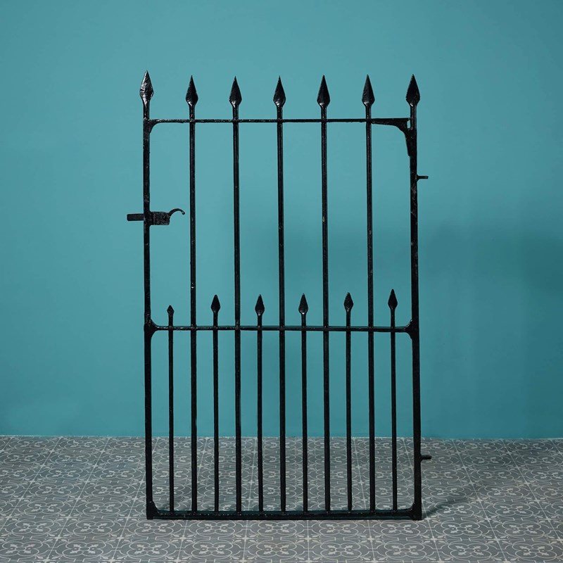 A handsome 19th century English wrought iron side gate beautifully handcrafted with decorative spikes across the top and centre.
