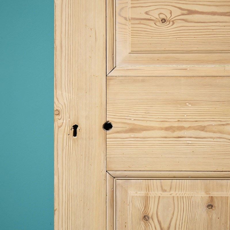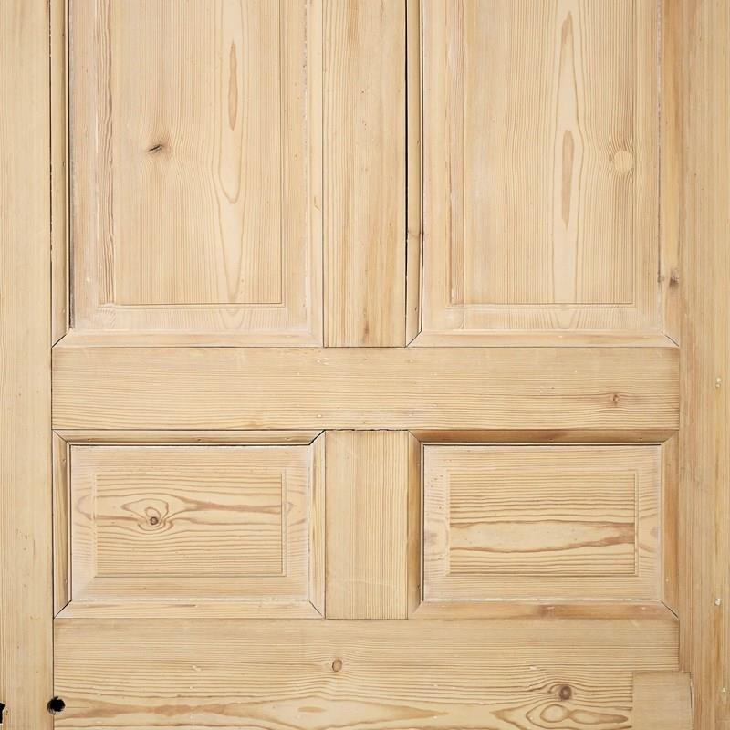 Good structural condition. Some old repairs. Stripped and sanded finish. Raised and fielded on one side only.