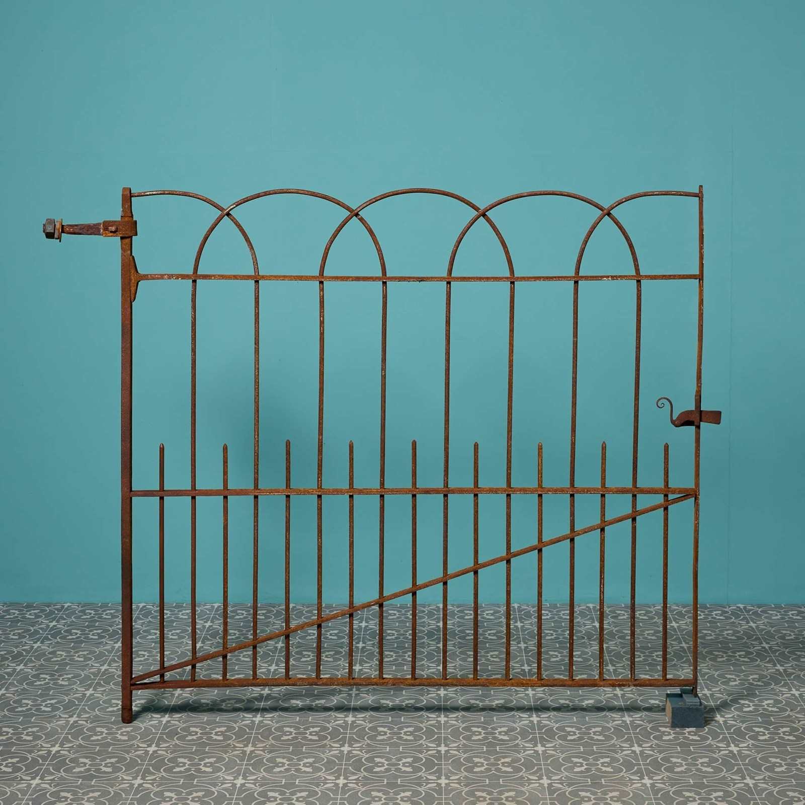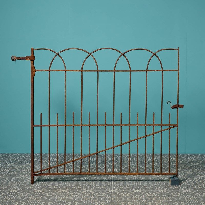 A mid-19th century wrought iron garden side gate, circa 1870, made in a simple repeating arch design. Fitted with an original collar hinge and an original working latch, this antique pedestrian gate is certain to bring character to any garden, blending into any scheme with its uncomplicated and understated design.