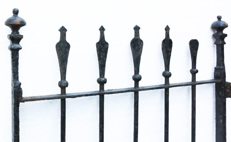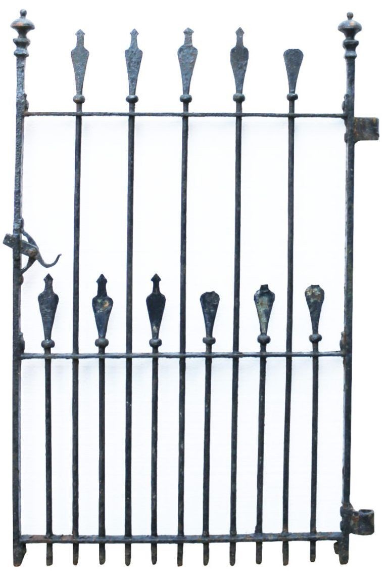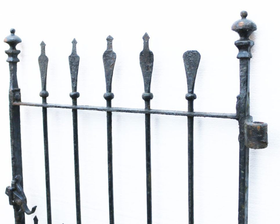 An unusual Victorian wrought iron pedestrian gate with silhouette finials.