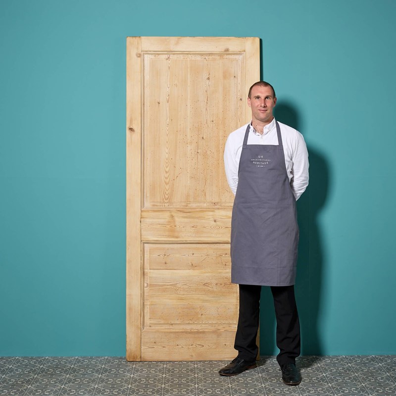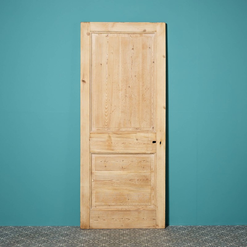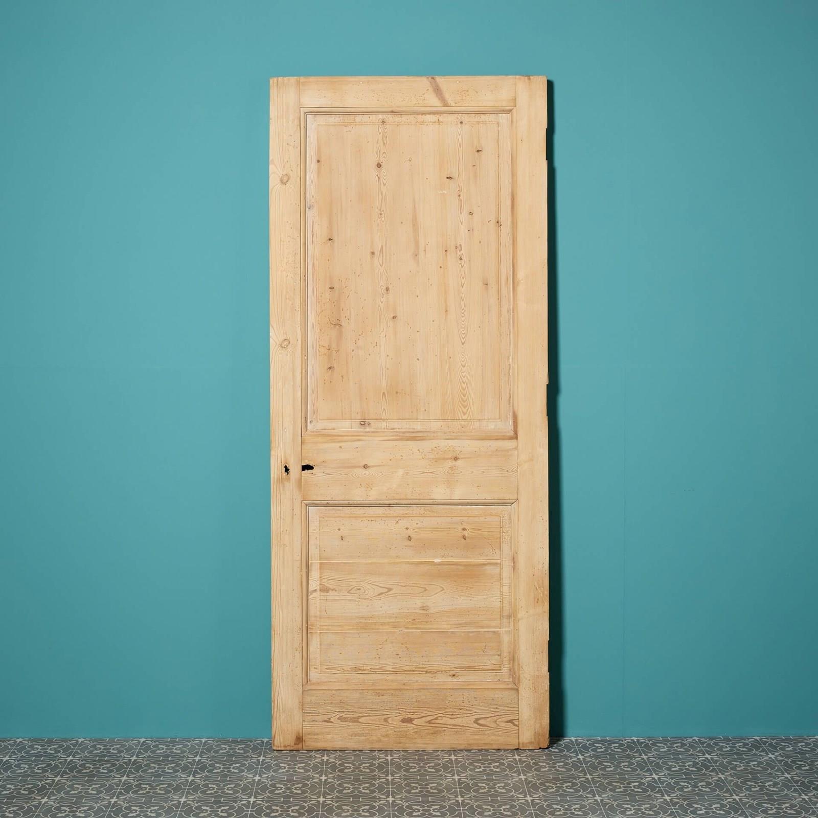 A smart antique 2-panel English pine door for internal use dating from the early 20th century. Made in pine, this Victorian style door features raised and fielded panels to both sides. It is stripped and sanded, ready for finishing in a desired stain, paint or wax.