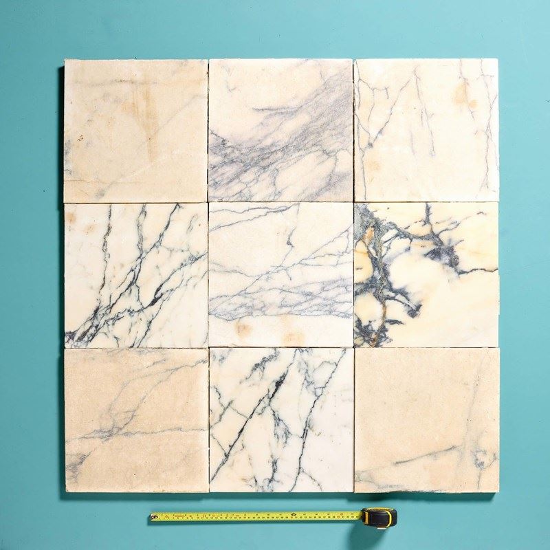 Dating from circa 1880, these reclaimed floor tiles are of a Italianate style, made in smooth Breccia marble, and detailed with defined veining.