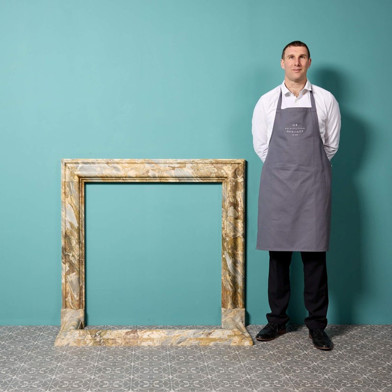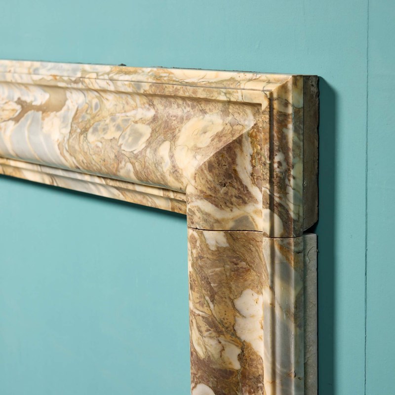 A bolection style antique breche marble fire surround, sourced from a £13 million house in Hampstead, London.