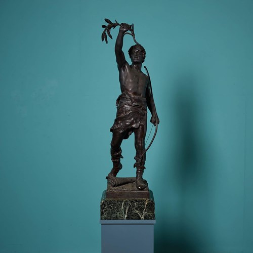 Stood on a stepped large rectangular base, this impressive patinated bronze gives a striking lustrous finish to this striking piece.