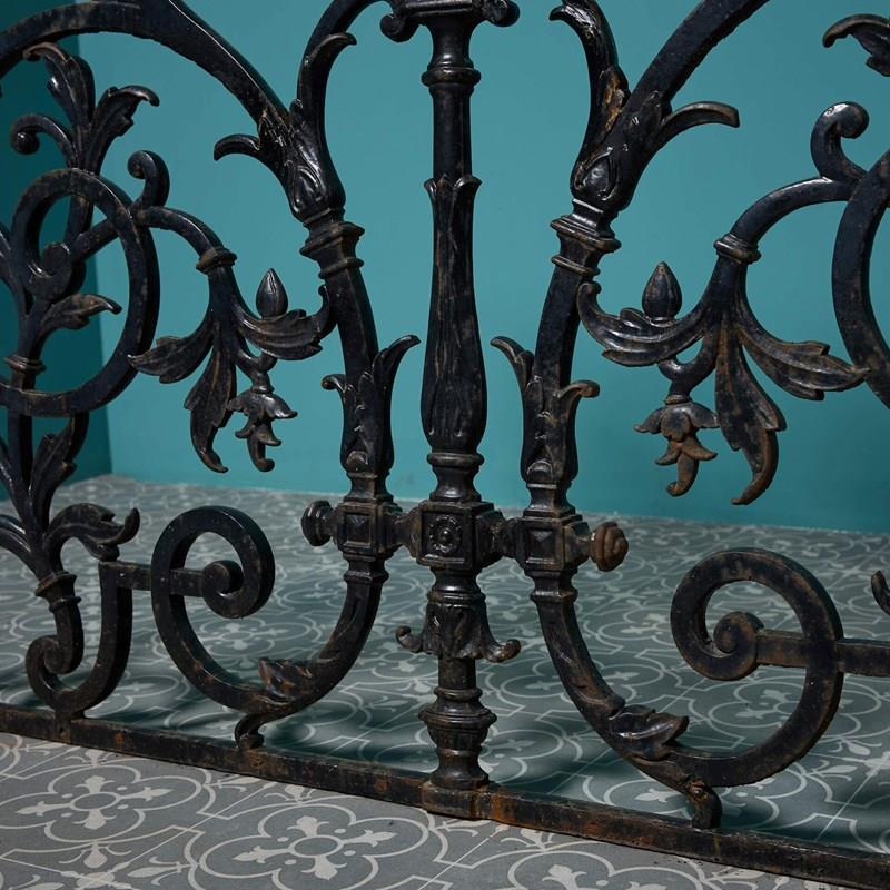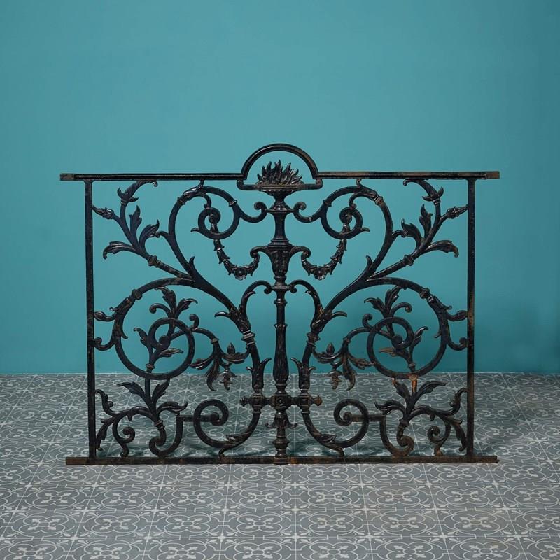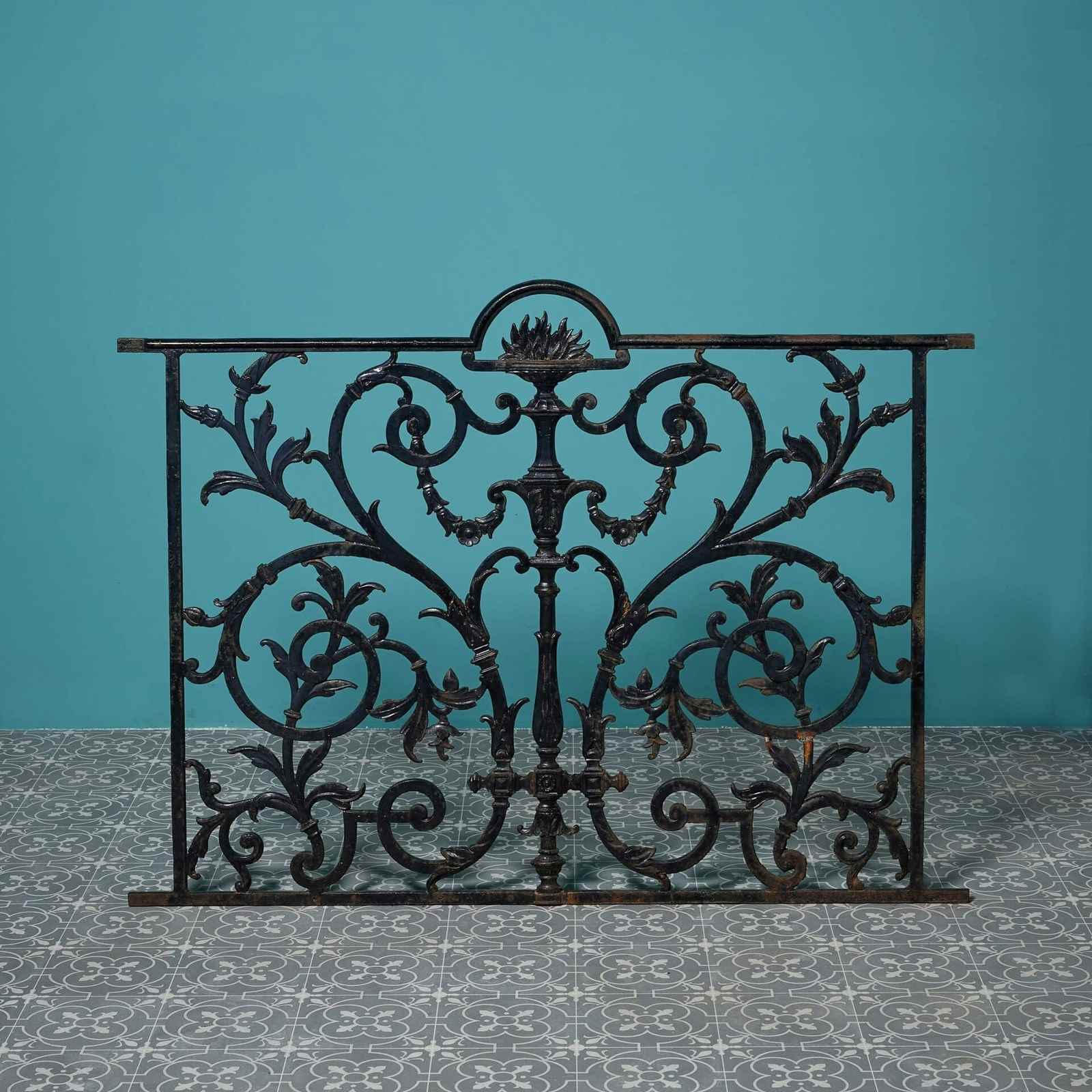 This 19th century iron panel is ornately cast with an abundance of scrolling foliage. Having stood the test of time for more than 135 years, this antique cast iron railing panel is a piece of reclaimed history for your property, looking beautiful as part of a traditional English garden scheme or a heritage feature of a modern home.