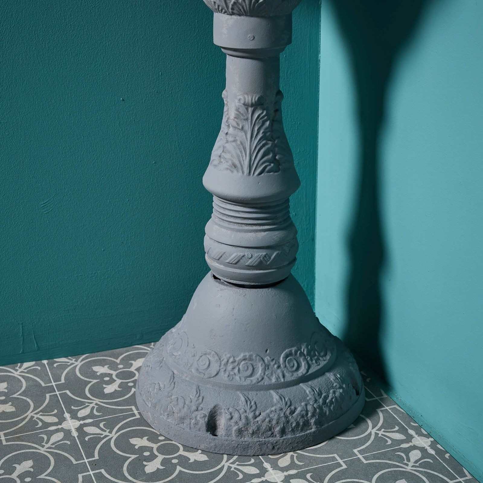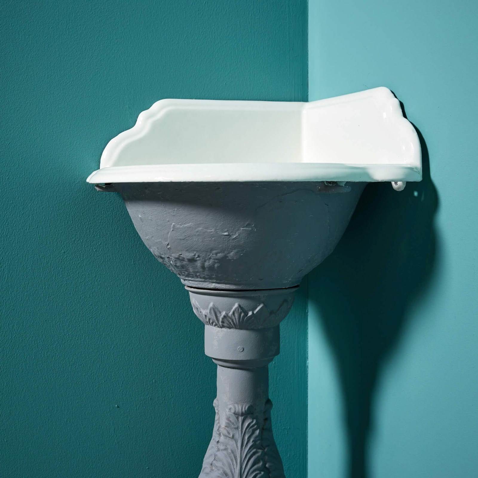 An antique cast iron pedestal corner basin, dating from circa 1870. This unusual sink will make a unique feature of a period bathroom, certain to make a statement in any setting.