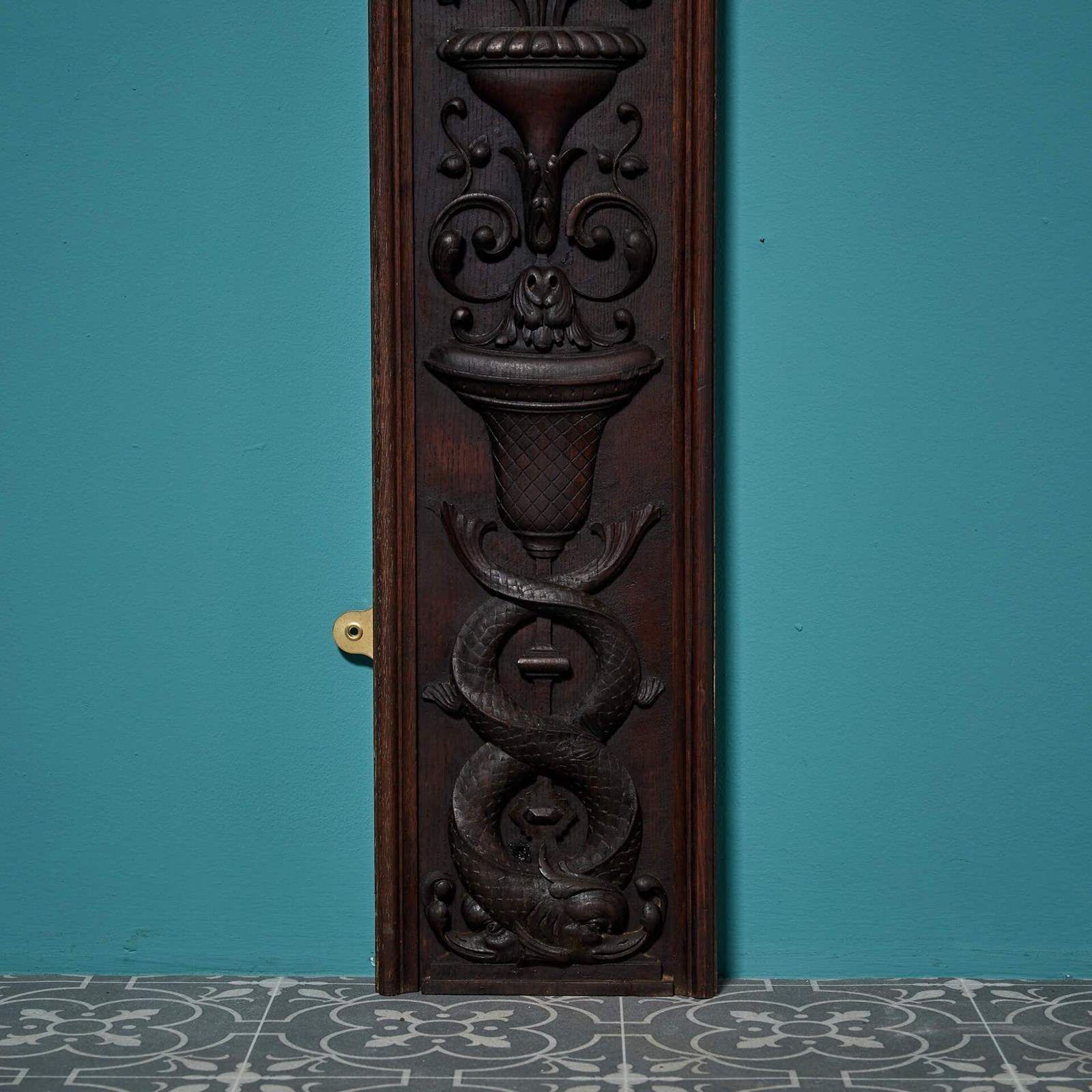 From the base, intertwined fish cover towering symmetrical urns with a scrolling floral design. Finishing in each corner with vessels brimming with fruit. From the centre, vines weave over plaques, masterfully depicting ancient growth in this highly unusual and unique piece.