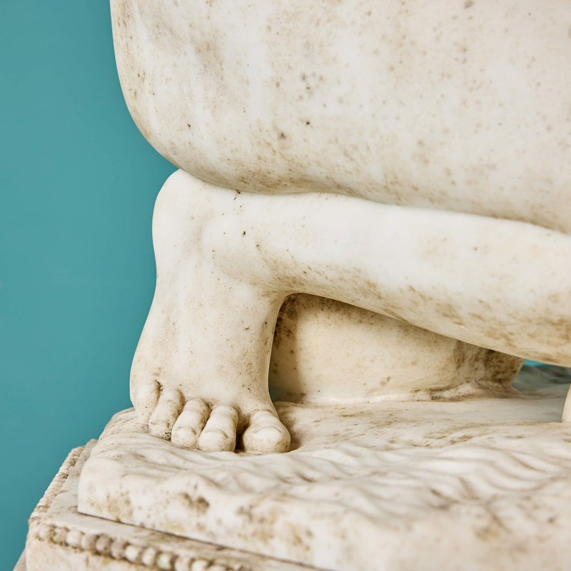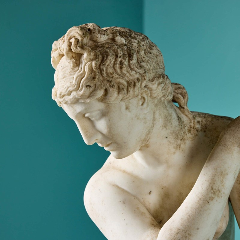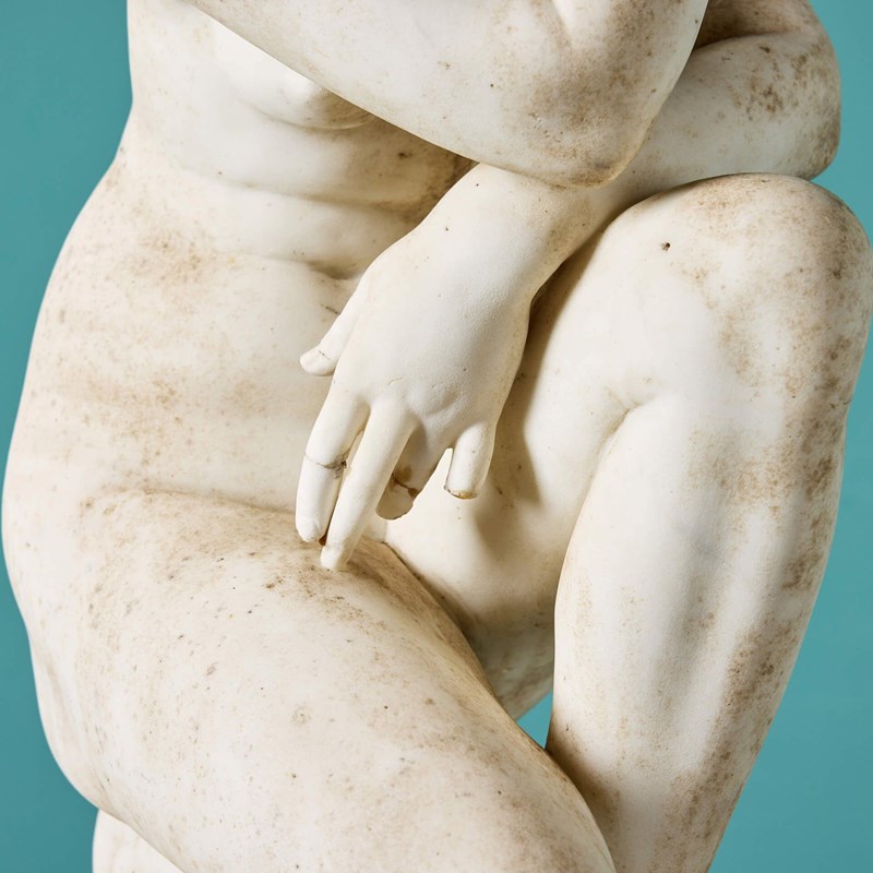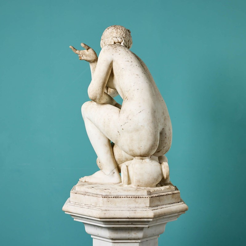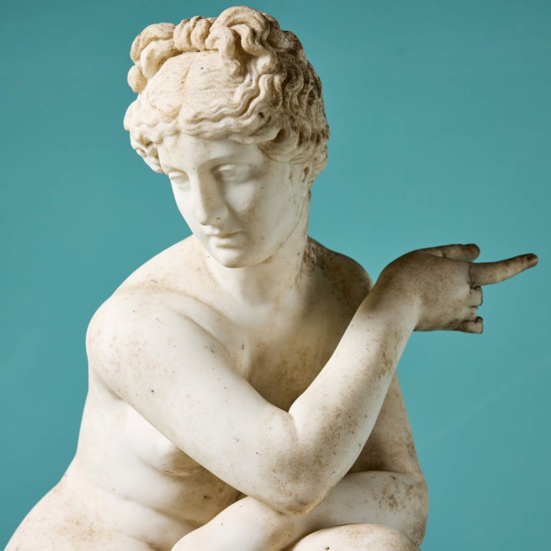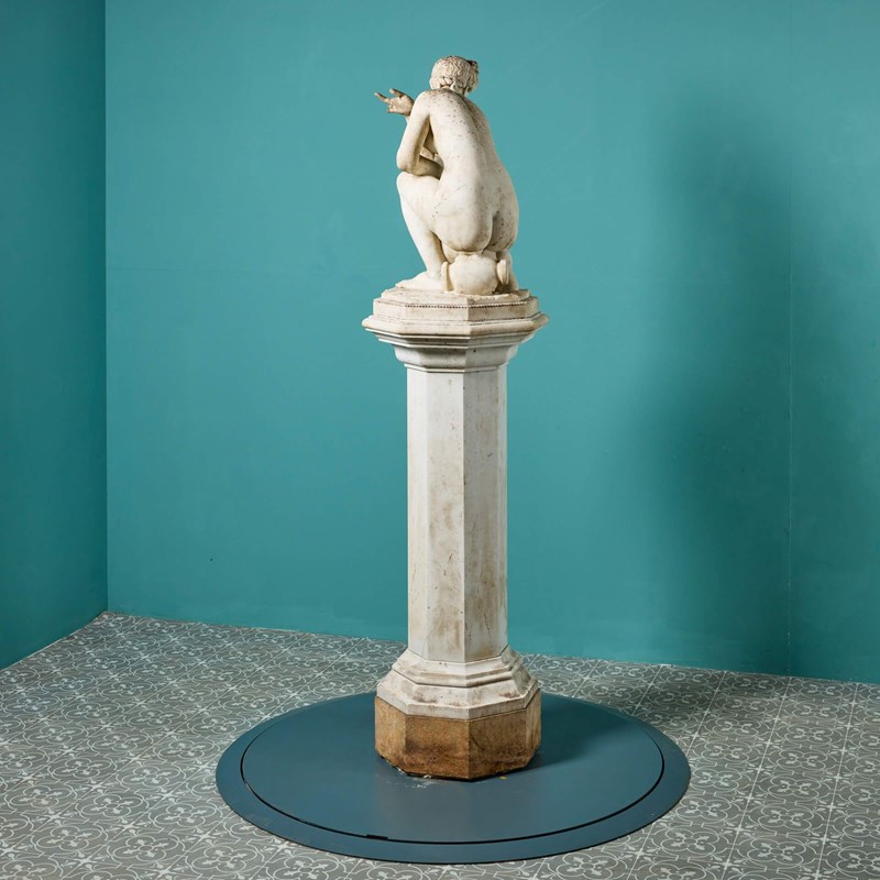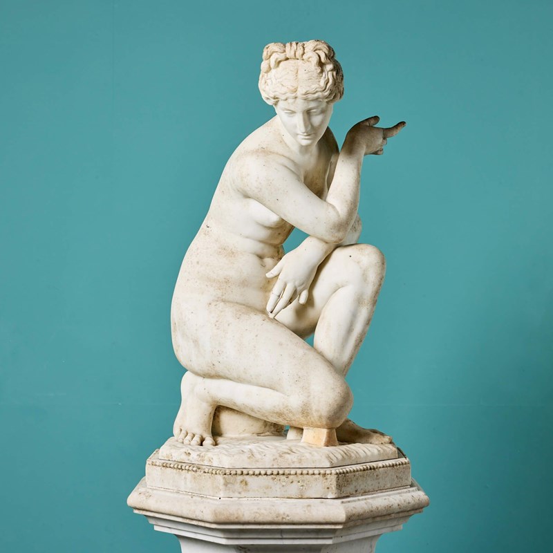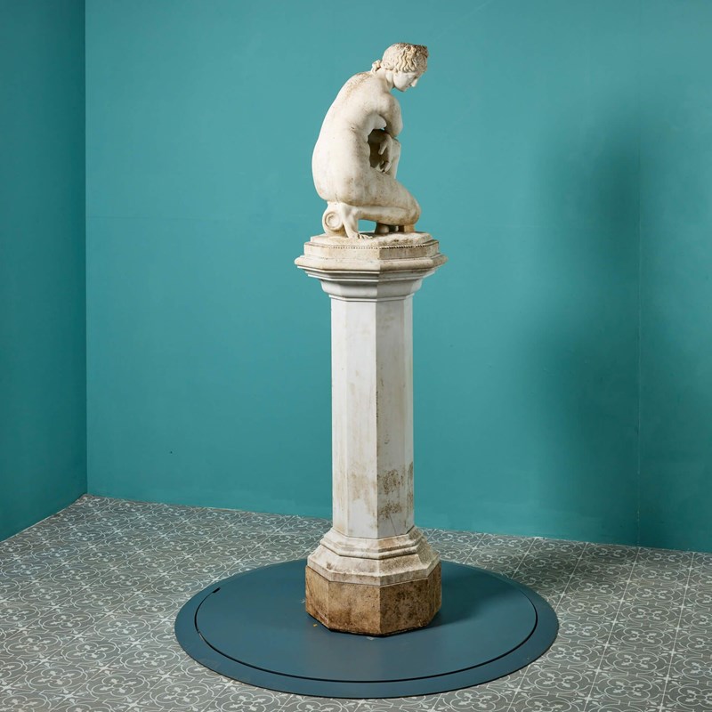 Antique Italian Statuary Marble Sculpture Of The Crouching Aphrodite On Pedestal