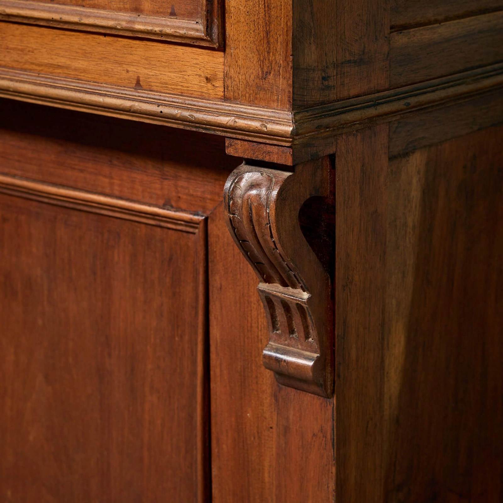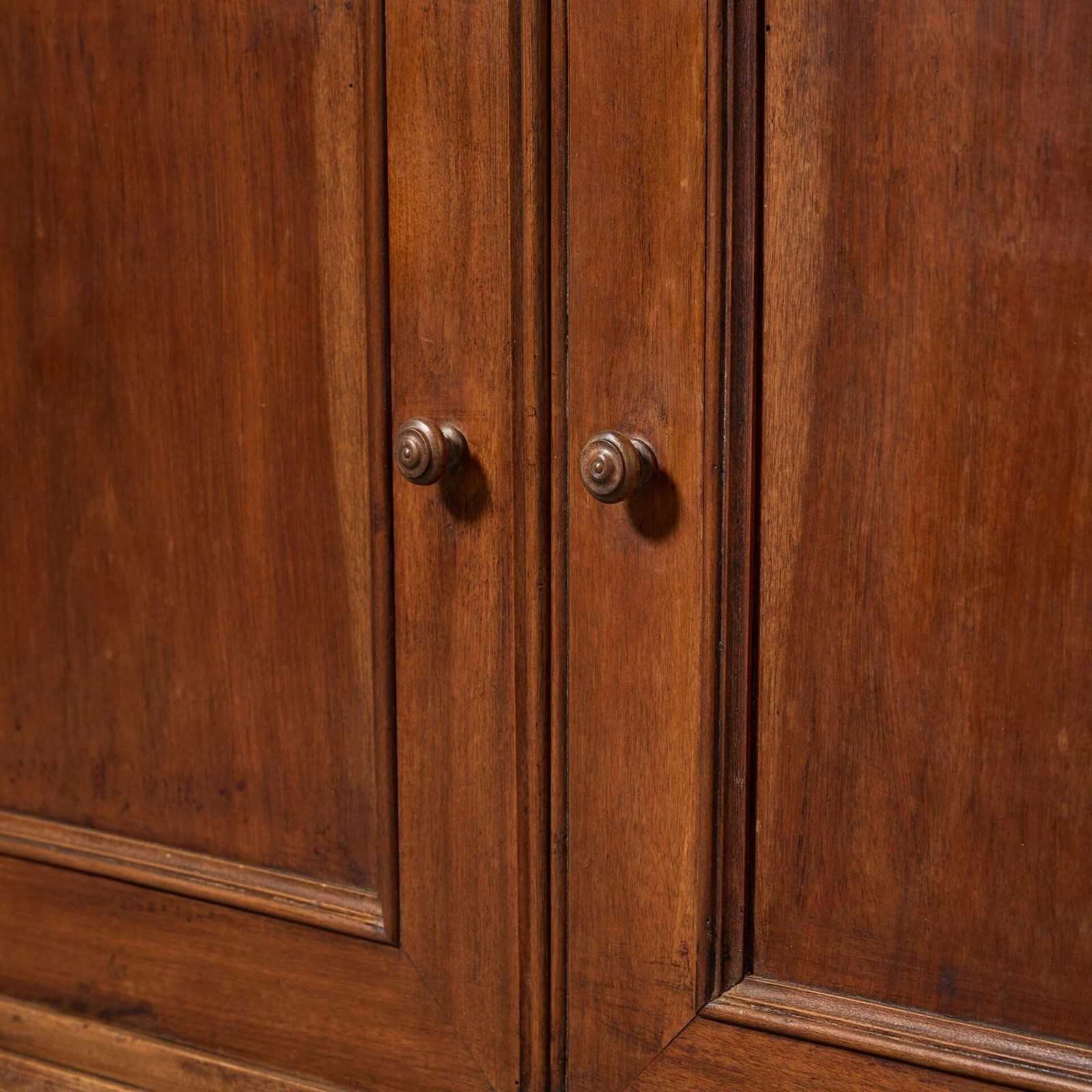 This sophisticated design continues with a two door, two drawer mahogany cabinet. It has a distinctly French look, detailed with stop chamfer panelling and dovetail drawers.