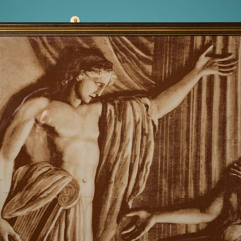Antique Neoclassical Silk Screen Framed Print Of Greek God