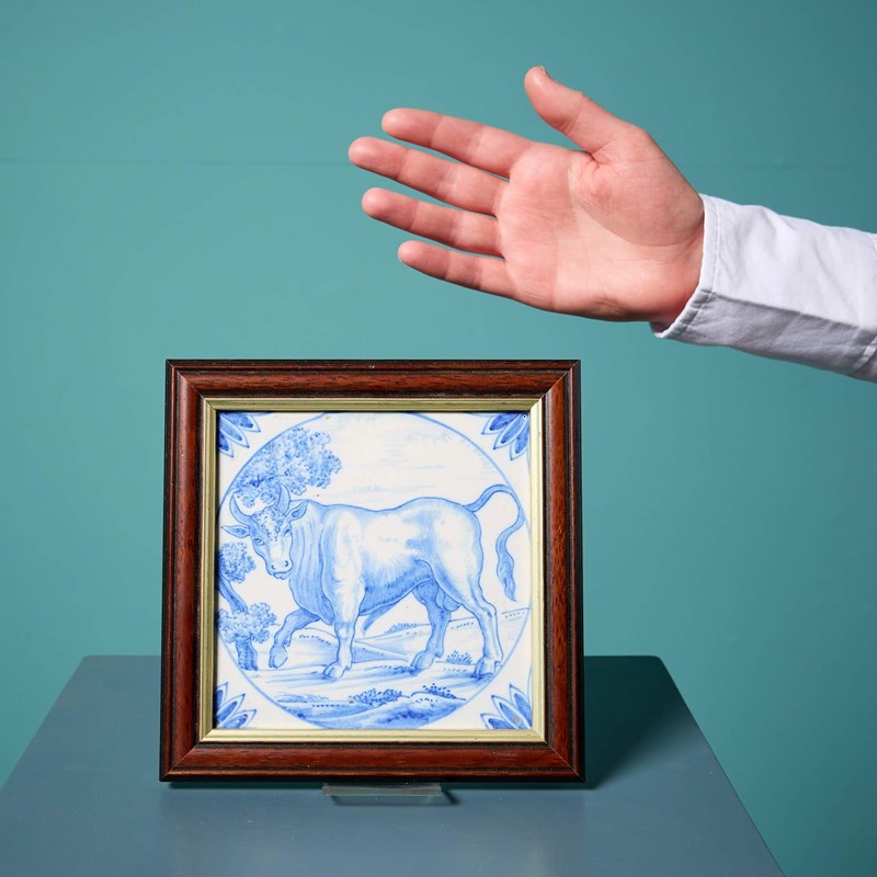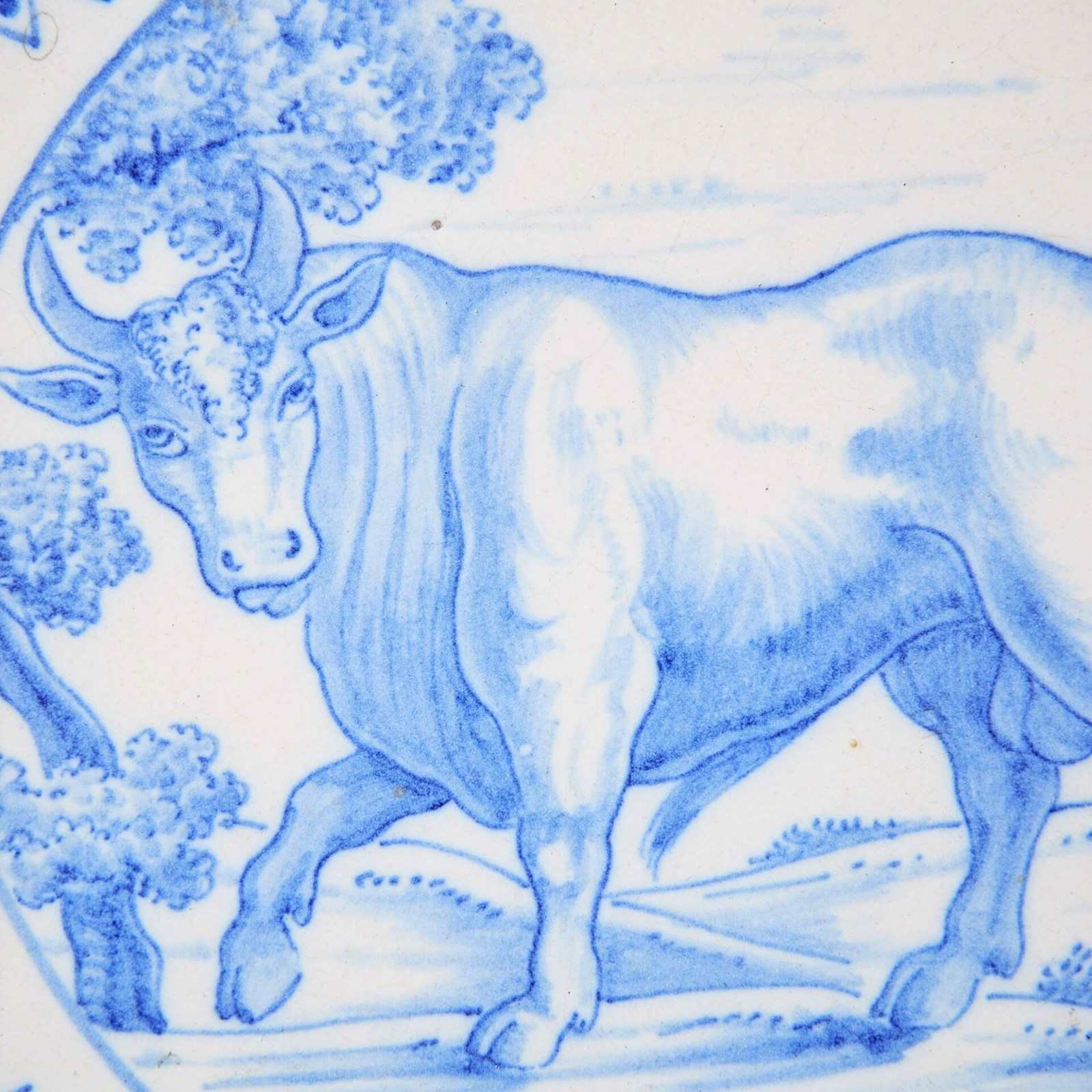 Antique Ravesteijn Blue & White Delft Bull Tile