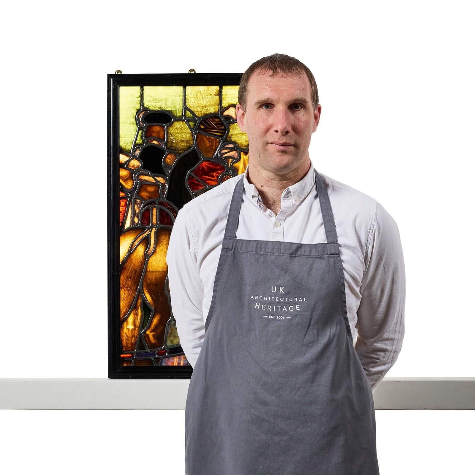 The stained glass is an impressive abstract Tudor style and the talented craftsmanship of its maker.