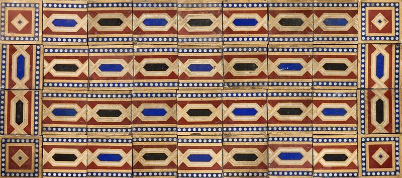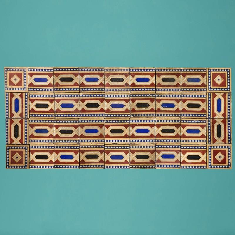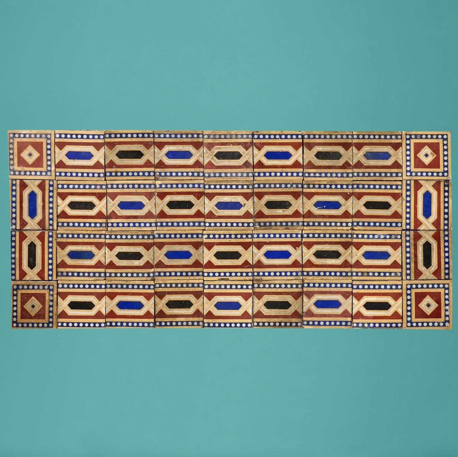 While we have arranged these antique tiles as pictured, they are not fixed and can be re-arranged in a desired pattern or shape to suit your interior project.