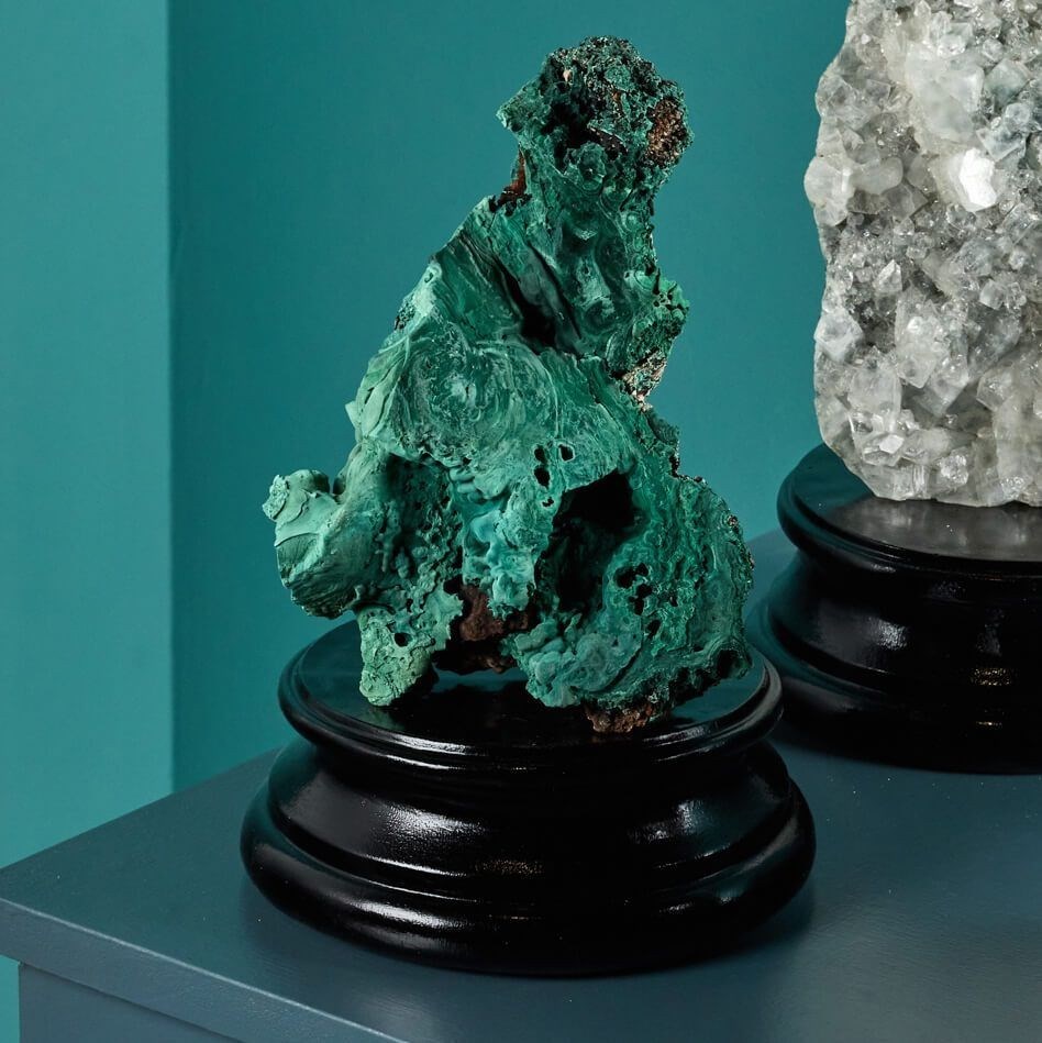 Malachite was one of the first ores used to produce copper metal. While rich in colour, appearance and habit is considered important for these specimens.