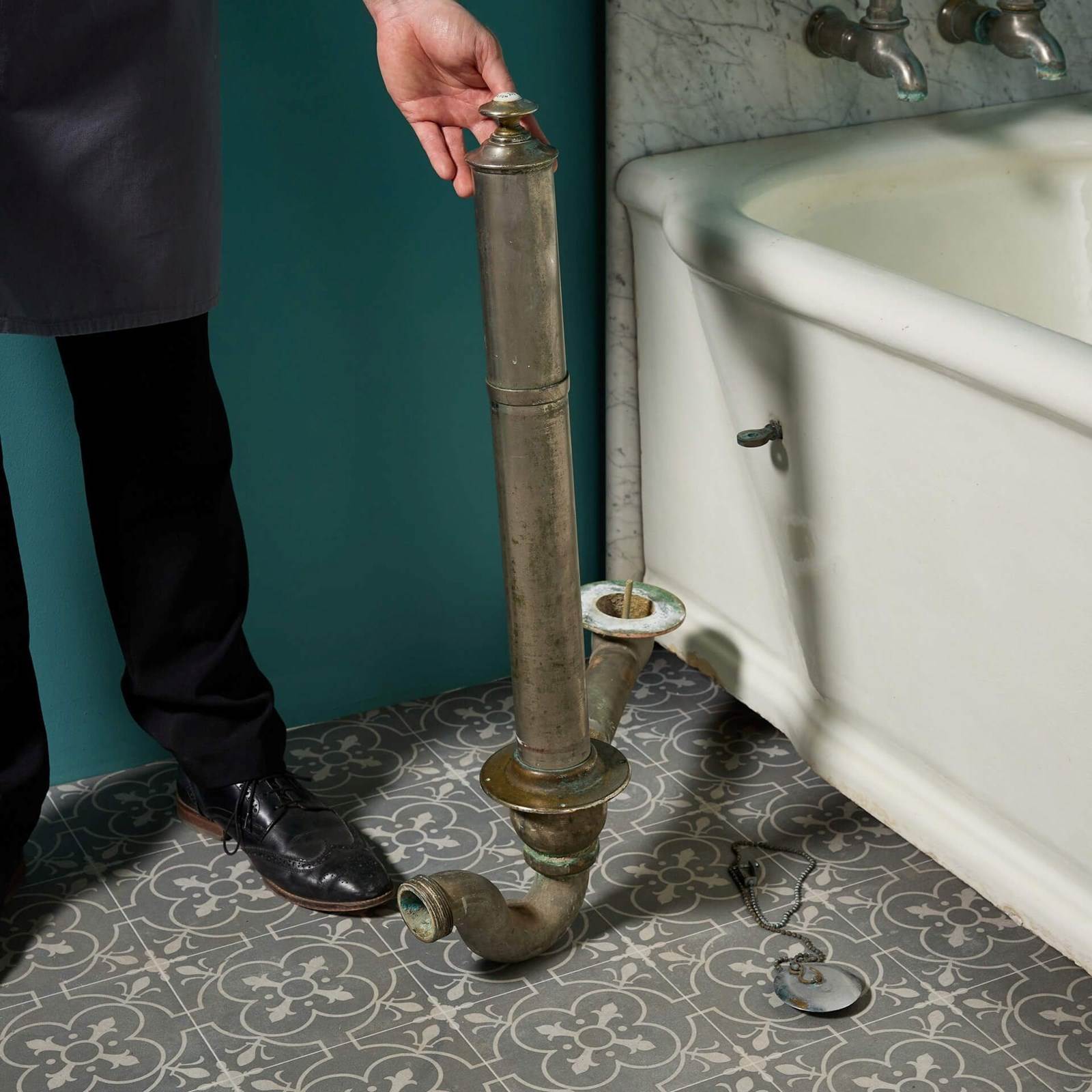 It includes an original plunger waste as pictured, which would be situated along the side of the bath.